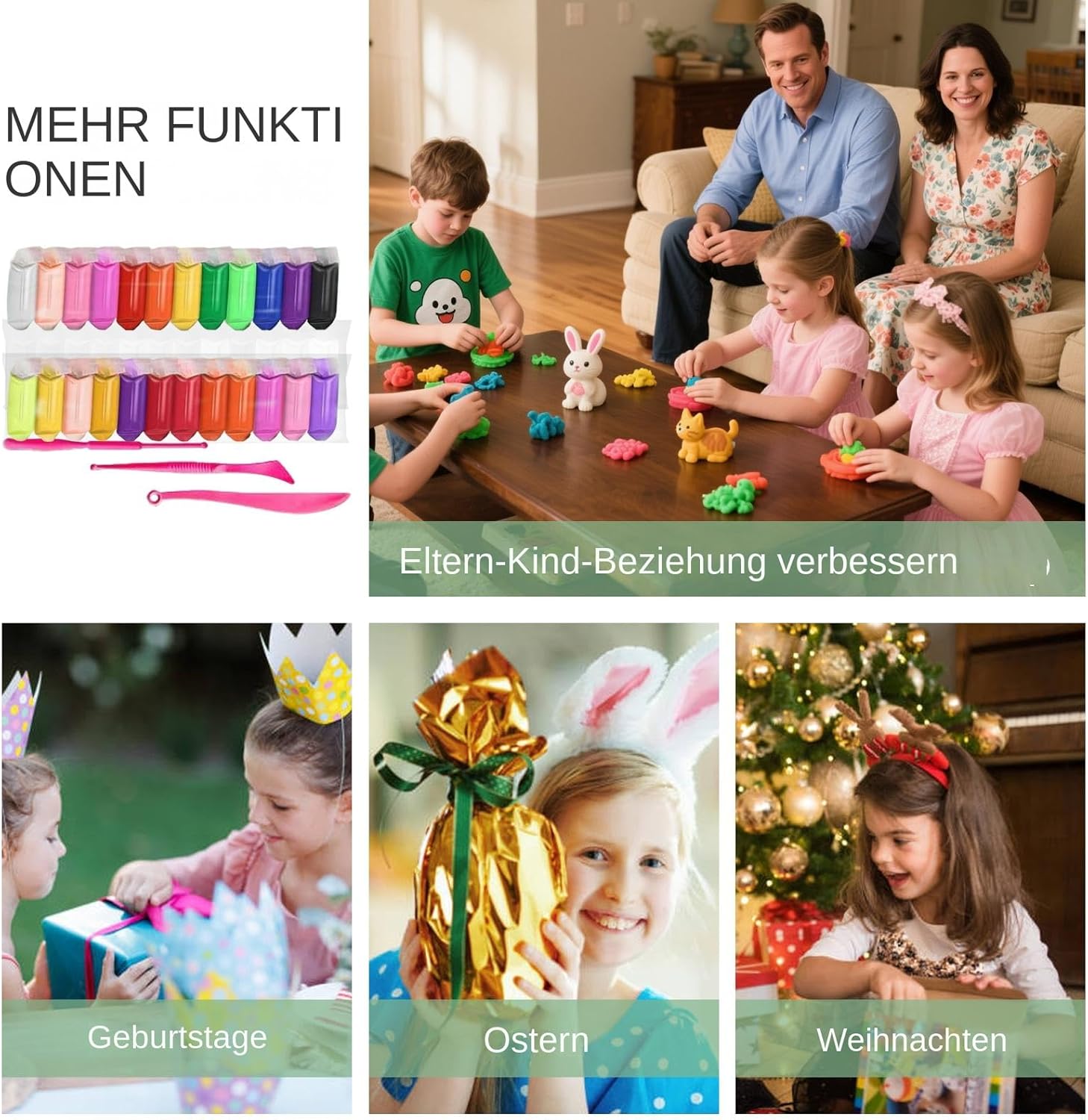 Scopri i colori: il set di argilla da modellare consente affascinanti sfumature di colore e disegni creativi a strati. Ideale per promuovere la percezione del colore e le abilità di miscelazione nei bambini attraverso opzioni di combinazione flessibili per progetti artistici illimitati. Qualità durevole: argilla permanentemente morbida e flessibile con elevata stabilità dimensionale, consente progetti creativi senza affaticamento o fragilità del materiale. Abilità e creatività della mano: sviluppa movimenti precisi della mano e immaginazione spaziale. La pasta da modellare funge da strumento efficace per aumentare la destrezza e lo sviluppo creativo. Design creativo della stanza: contiene argilla con tracce stellari ed elementi meteoriti per scenari dettagliati - La struttura a particelle fini supporta il design realistico della superficie promuovendo al tempo stesso la creatività tematica Separazione dei colori garantita: i singoli scomparti isolati prevengono la contaminazione dei colori nei progetti di gruppo creativi - Gli strumenti di base integrati supportano flussi di lavoro fluidi nella vita quotidiana dell'asilo