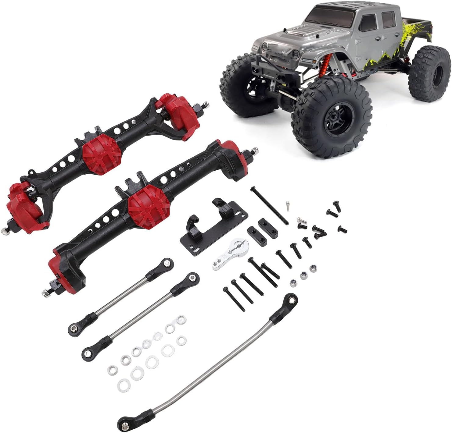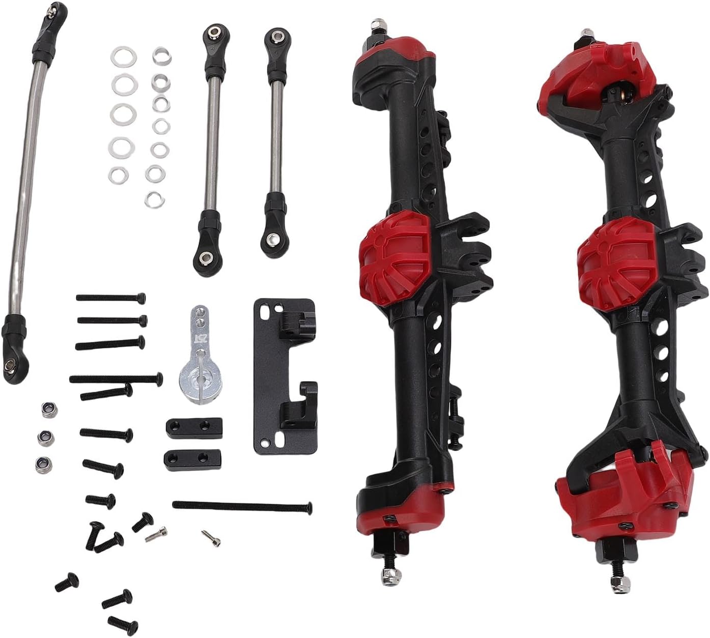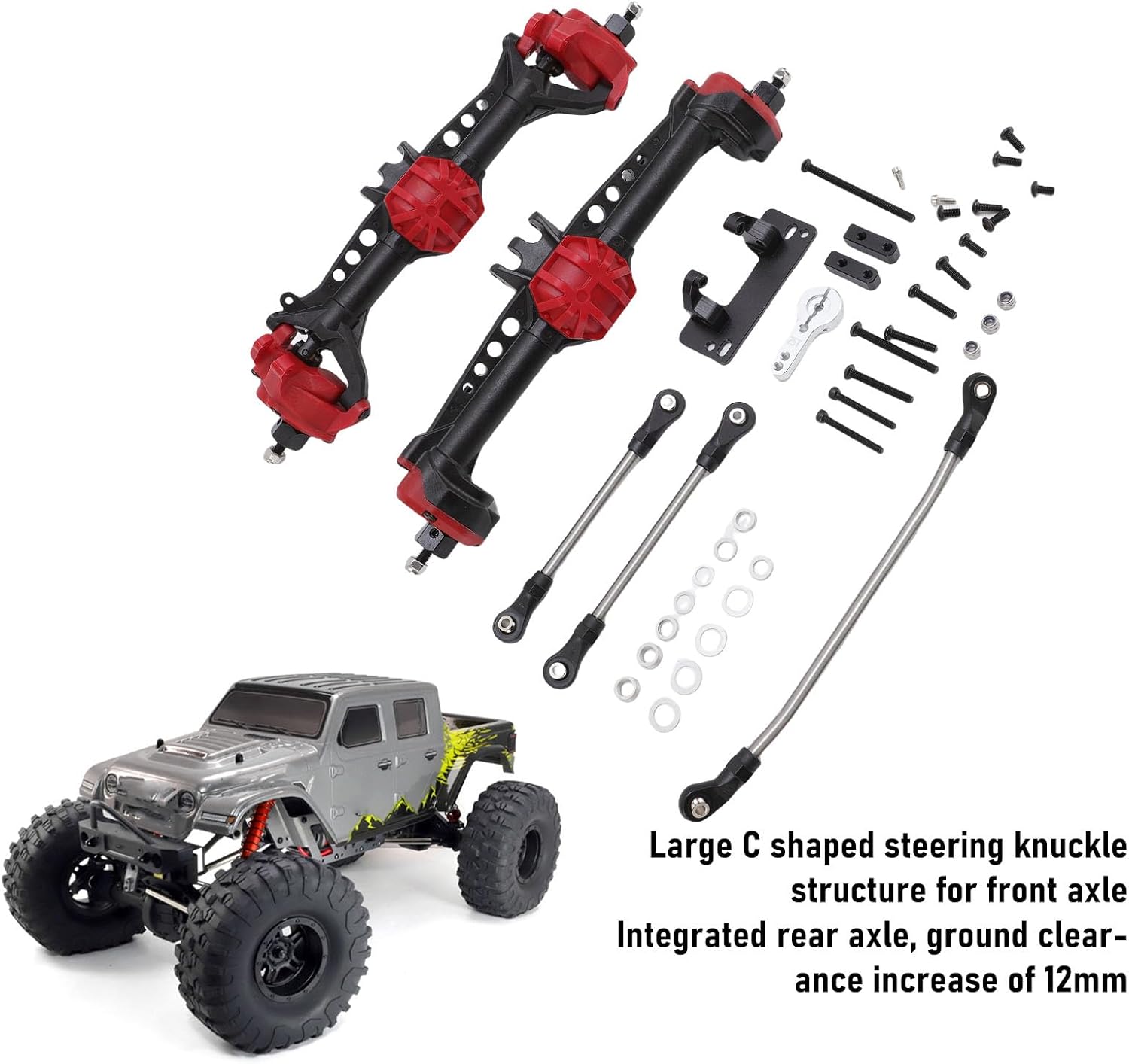 Finitura superficiale della trama opaca: la trama opaca fine migliora il fascino visivo fornendo al contempo prestazioni di presa migliorate durante le operazioni di strisciatura dinamica. Kit di aggiornamento completo incluso: contiene ingranaggi, cuscinetti, supporti per servi e staffe di collegamento con il servomotore specificato per facile installazione e utilizzo immediato. Design ottimizzato per le nocche dello sterzo: presenta grandi nocche a forma di C con angolo di 18,5 ° intervallo e inclinazione di Kingpin a 7,5 ° per una migliore stabilità dell'arrampicata e una risposta di sterzo precisa. Costruzione in nylon ad alta resistenza: il materiale in nylon stampato a iniezione offre una durata eccellente e leggera per le prestazioni del terreno complesso nel crawling RC. Aumentata autorizzazione al suolo: la progettazione integrata dell'assale posteriore migliora la rigidità strutturale aggiungendo al contempo il gioco del terreno di 12 mm per una migliore capacità di gioco degli ostacoli.