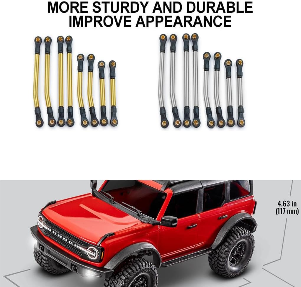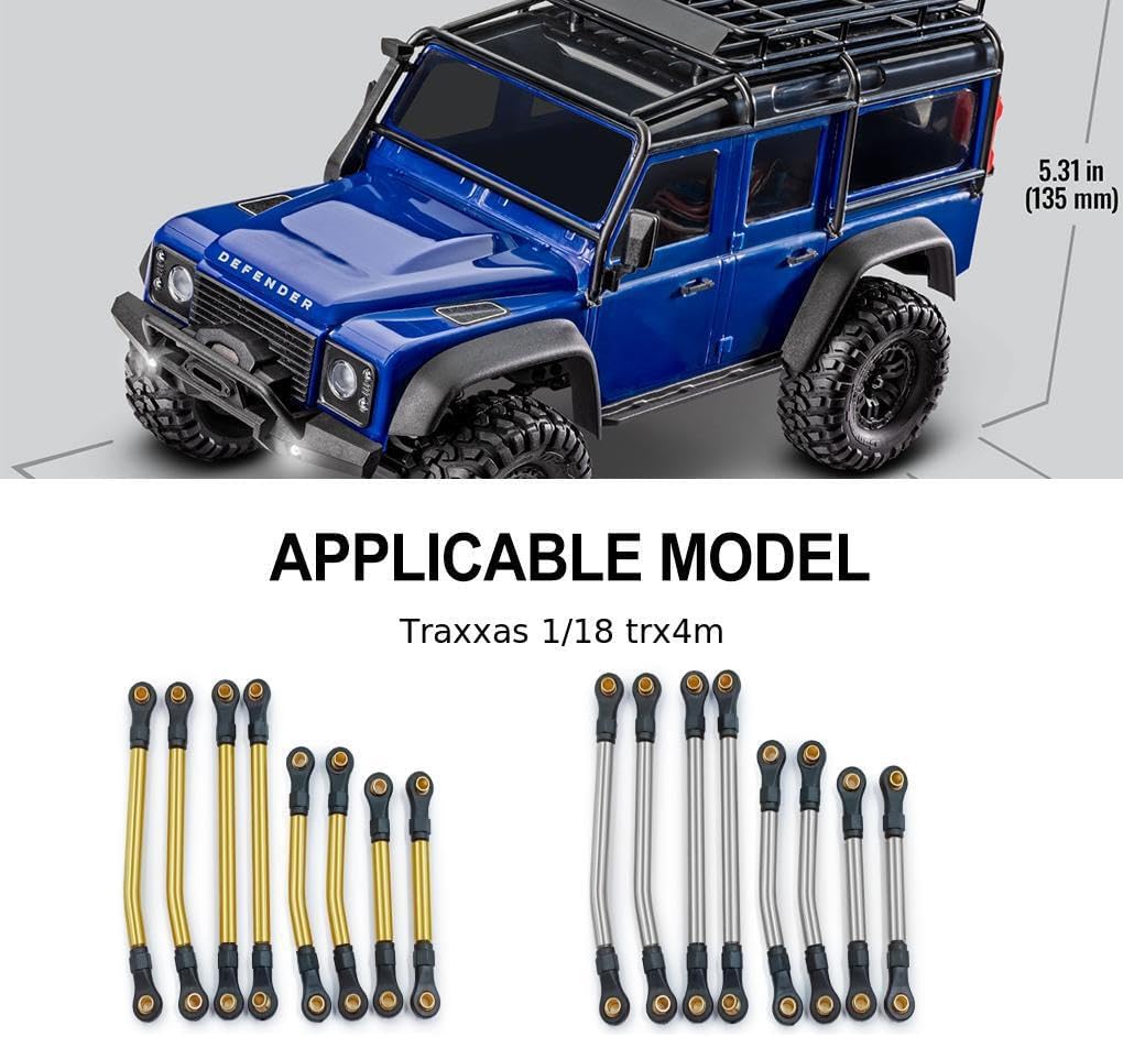 【Compatibilità】: accessorio per auto RC in ottone adatto per modelli 1/18 trx4m, con altissima compatibilità 【Caratteristiche】: Con questo set di collegamenti dell'asta, ottieni un sistema di collegamento delle sospensioni più durevole e più resistente 【Cosa ottieni】: inclusi 8 pezzi * Collegamenti del telaio 【Qualità】: accessorio di qualità che può aiutarti a migliorare la tua esperienza in auto 【Parti di aggiornamento】: ridurrà notevolmente le vibrazioni e migliorerà la stabilità quando l'auto RC funziona