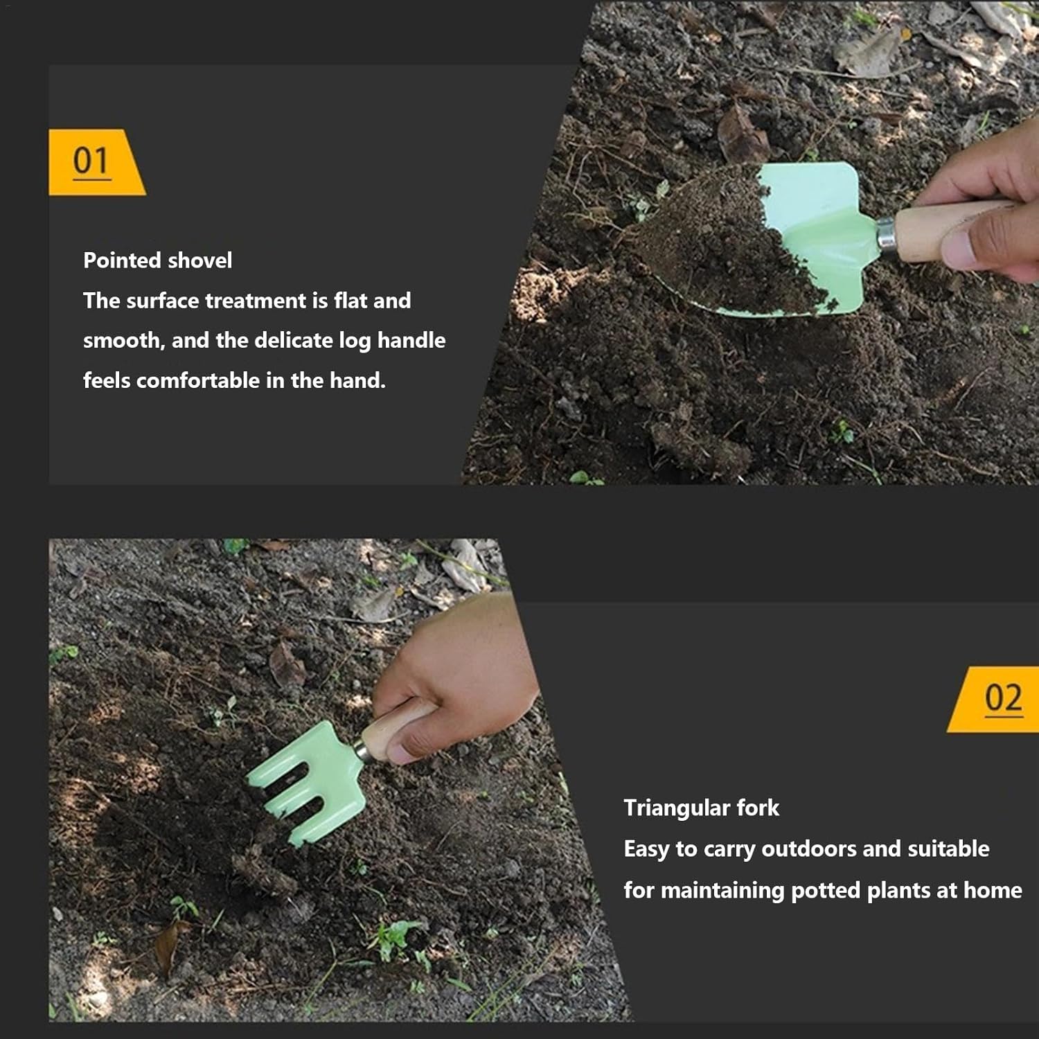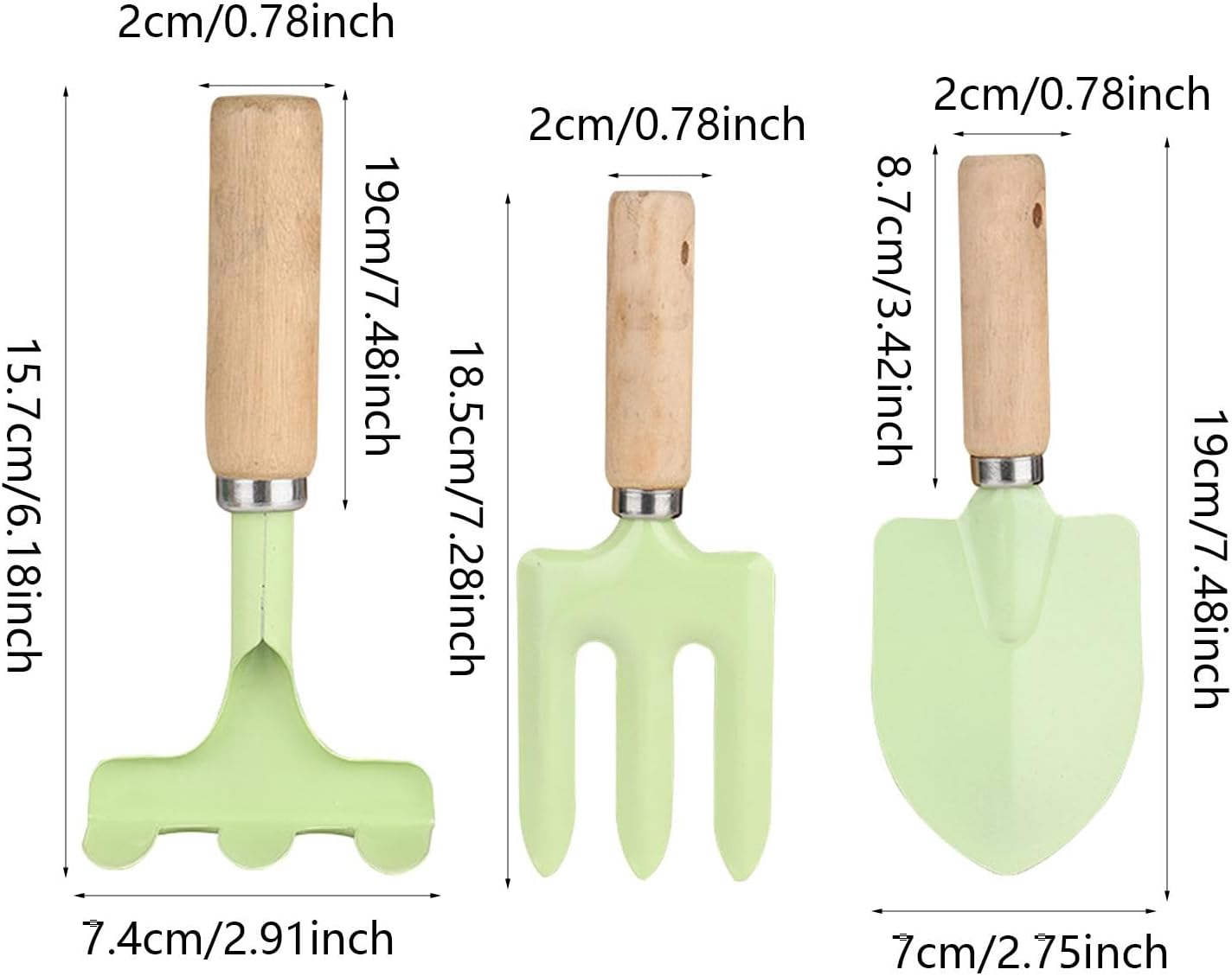Forte e robusto: per i giovani pollici verdi in erba, il nostro kit da giardiniere per bambini è realizzato in acciaio inossidabile ispessito che può resistere a un uso intensivo e a lavaggi ripetuti senza arrugginire. Grazie alla precisa forgiatura dell'acciaio e al rivestimento in vernice spray sulla testa della pala, non si romperà se esposta a lungo alla luce solare. Prestazioni migliorate: il design rotondo del manico in legno del set da giardino per bambini garantisce una sensazione confortevole alla mano e impedisce lo scivolamento. Il design ergonomico e razionale consente una flessione adeguata per carichi maggiori e riduce l'affaticamento. Misure di sicurezza migliorate: il kit Kid Gardener è dotato di un affidabile meccanismo di fissaggio a doppio strato che garantisce che la testa della pala rimanga sicura e consenta un giardinaggio sicuro ed efficiente. Puoi stare tranquillo sapendo che tuo figlio è protetto mentre ti godi il lavoro dell'amore. Giardinaggio sicuro: la testa della pala ha angoli arrotondati, rendendo lo scavo e il trapianto un gioco da ragazzi. Le superfici sono inoltre piatte, lisce e delicate, il che elimina il rischio di graffi. Con il nostro kit asilo i bambini potranno prendersi cura del proprio giardino in modo semplice e sicuro. Ampiamente usato: gli attrezzi da giardinaggio per bambini sono perfetti per il giardinaggio e il trapianto di piante a casa, soddisfacendo le diverse esigenze. Sono ideali per una varietà di piante e terreni e possono essere utilizzati per piantare in vaso. Godetevi la flessibilità di questi strumenti versatili.