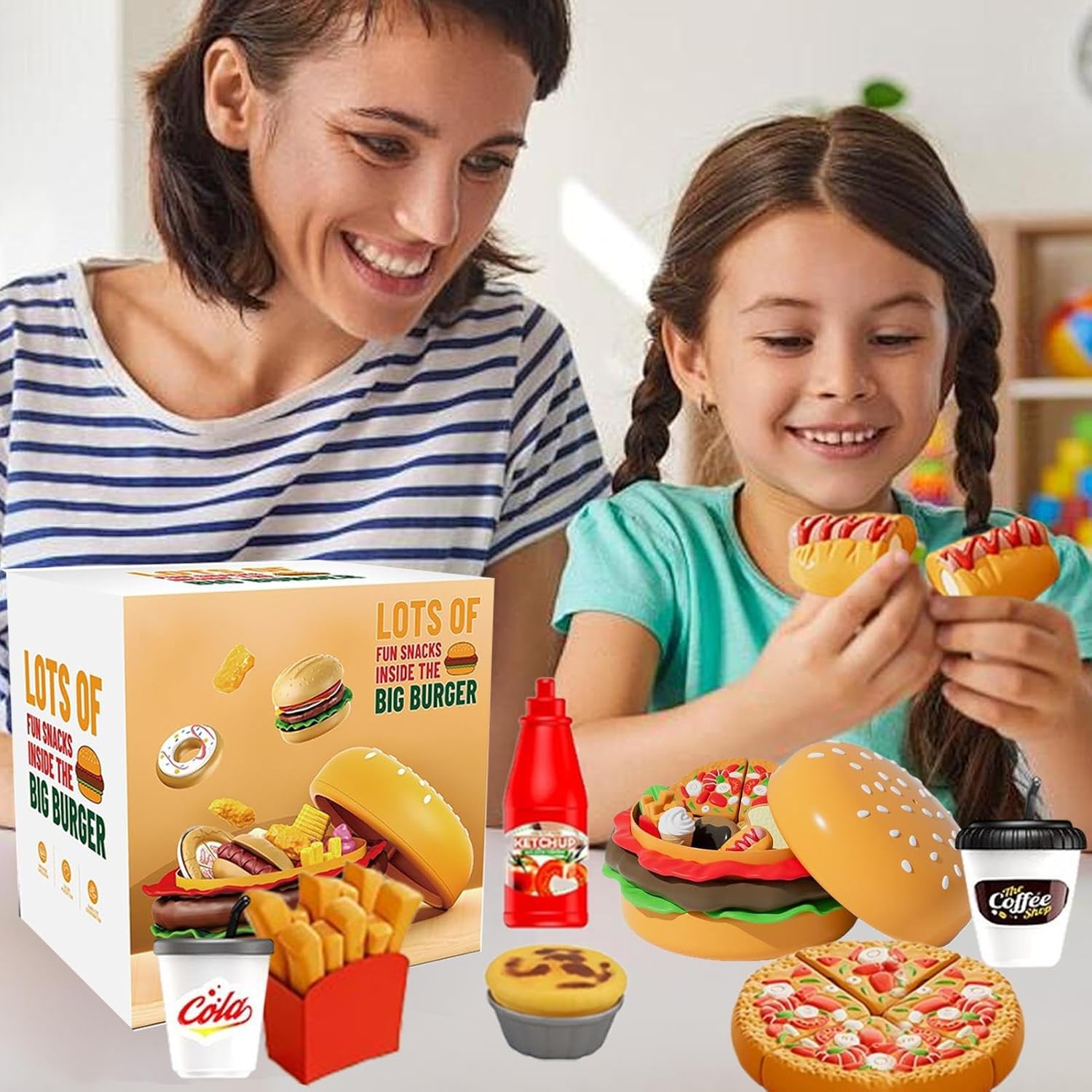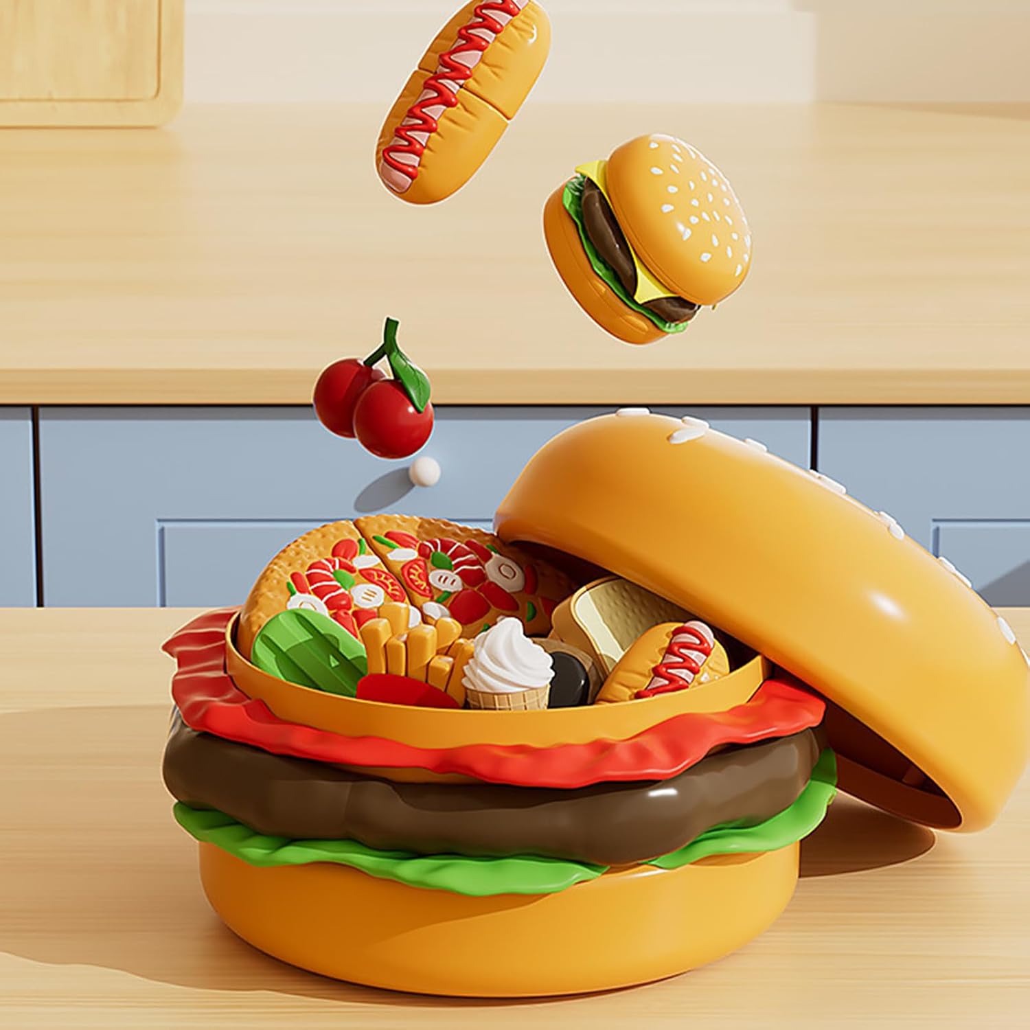 Organizzazione intuitiva: il caratteristico contenitore per hamburger favorisce lo sviluppo positivo del bambino attraverso un gioco stimolante l'immaginazione, semplifica i sistemi di smistamento e offre un'eccellente mobilità per i set da cucina da gioco Set di gioco di ruolo essenziale: accessori alimentari realistici con colori freschi che stimolano la creatività e mantengono i bambini impegnati in scenari di gioco interattivi Motoria e pensiero: allena le abilità motorie e promuove il pensiero logico con alimenti interattivi in cucina a misura di bambino. Esperienza di gioco comune: rafforza i legami familiari con giochi di ruolo multiplayer, promuove un intenso gioco interattivo e migliora l'interazione sociale tra i bambini nella cucina dei bambini Design stabile: la lavorazione accurata del cibo in ABS consente un'esperienza di gioco attiva, resistente all'abrasione grazie agli appassionati cuochi nella cucina dei giochi di casa