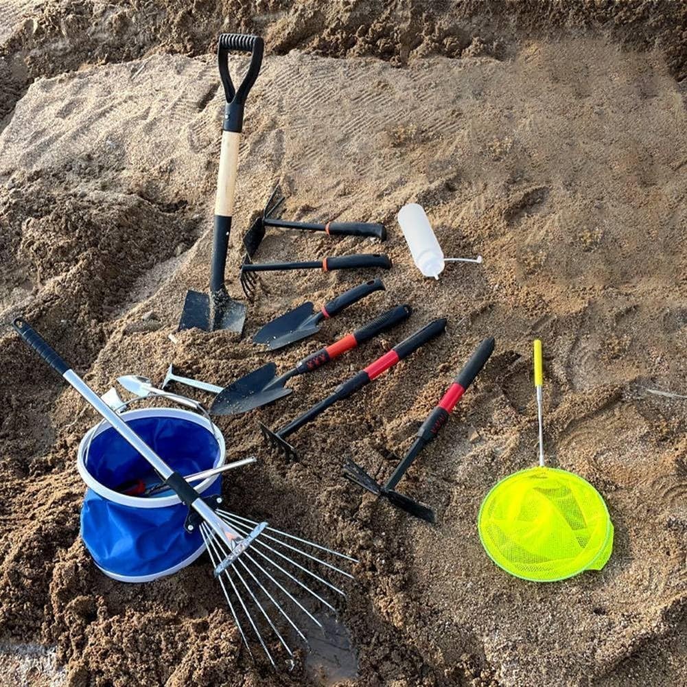 Set di attrezzi da spiaggia tutto in uno: questo set indispensabile viene fornito con un secchio pieghevole, guanti e tre pale progettate specificamente per scavare vongole e lumache sulle coste sabbiose. Zappa a doppio lato per versatilità: con un lato per scavare ostriche e l'altro per contenere conchiglie, questa zappa semplifica la tua esperienza di pesca al mollusco. Facile raccolta delle conchiglie con il rastrello: raccogli rapidamente le conchiglie con il rastrello incluso, rendendo la tua uscita in spiaggia più produttiva e divertente. Raccoglitore facile da usare: la clip a bocca dritta consente di raccogliere facilmente varie creature marine come granchi e stelle marine senza problemi. 0