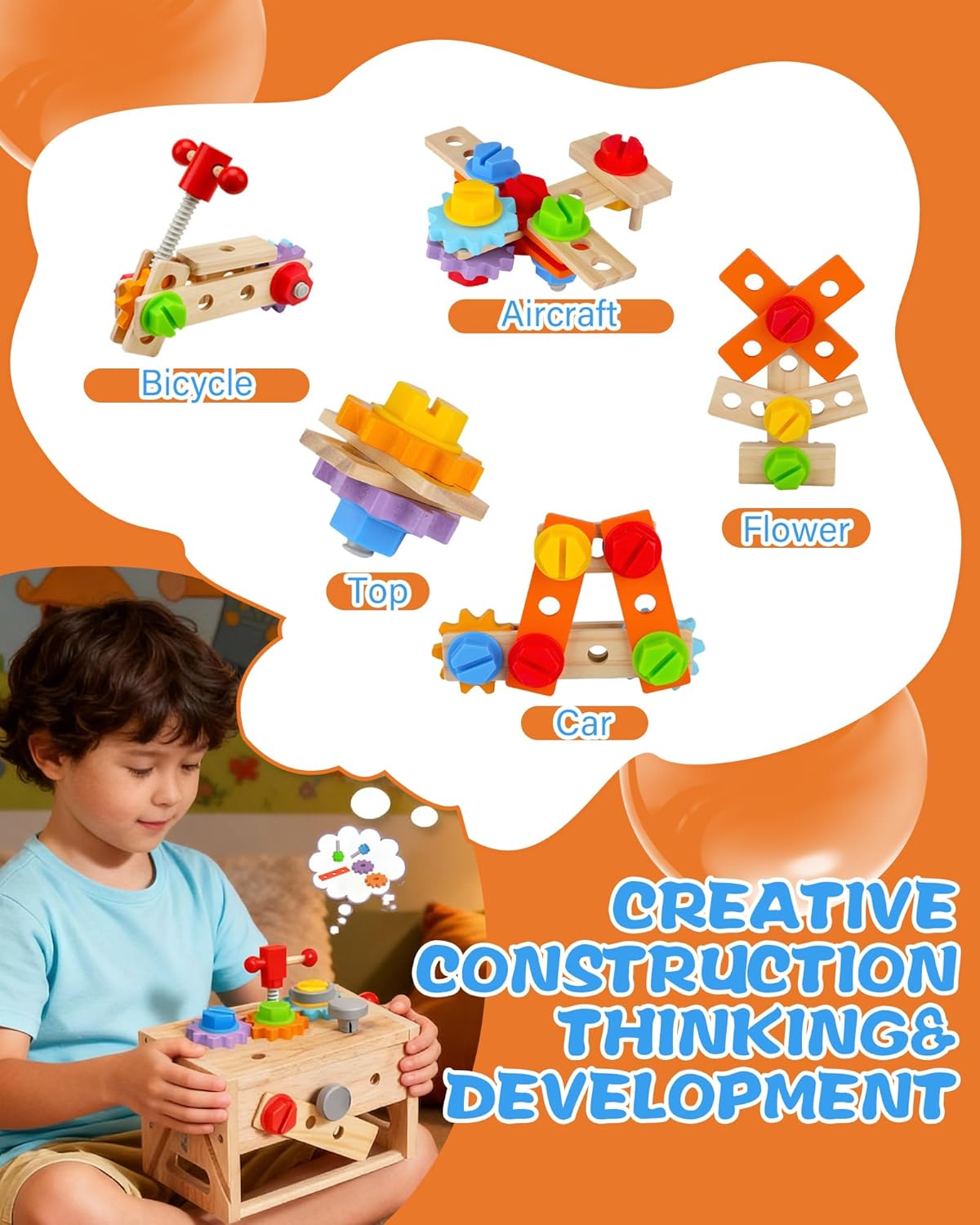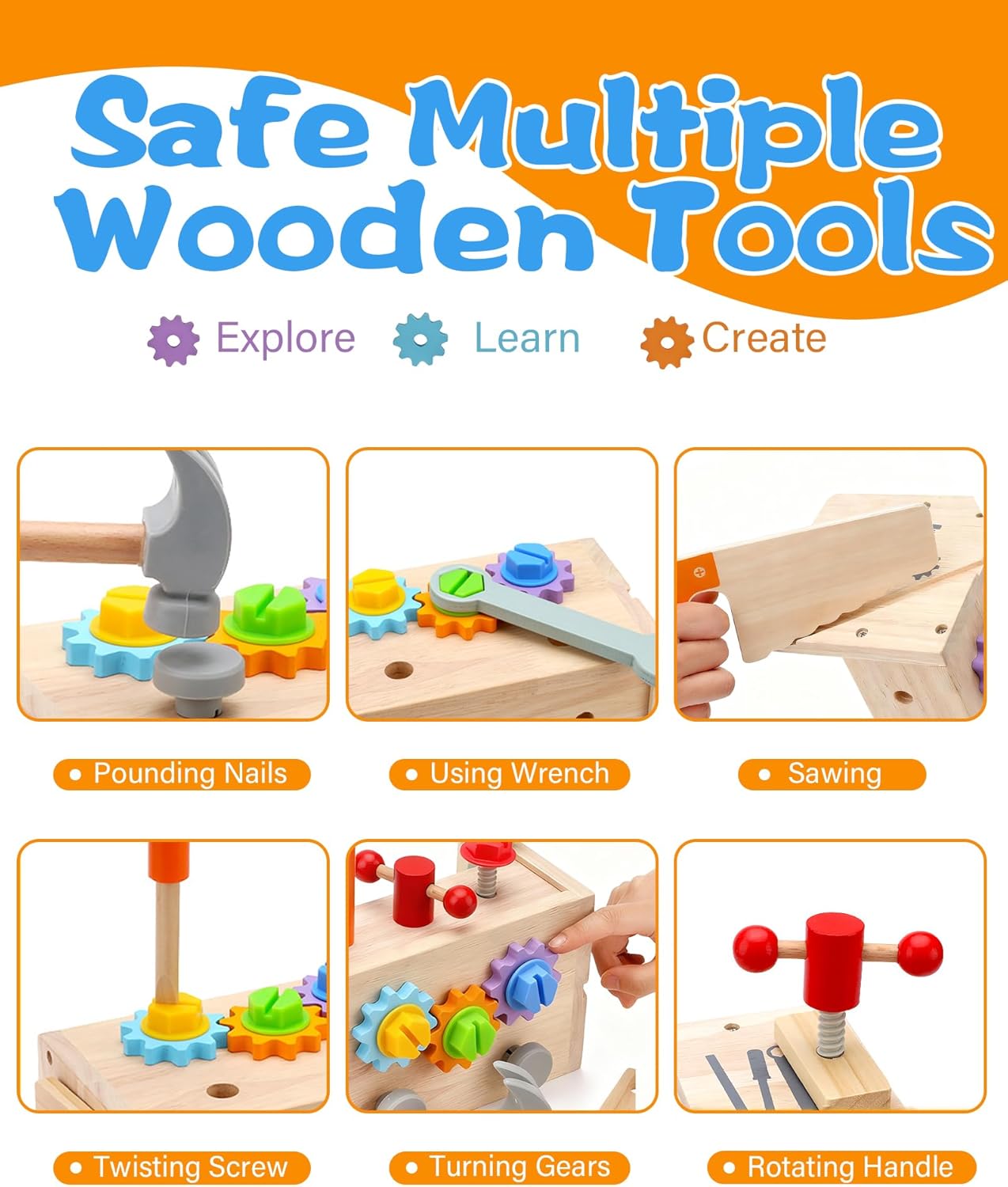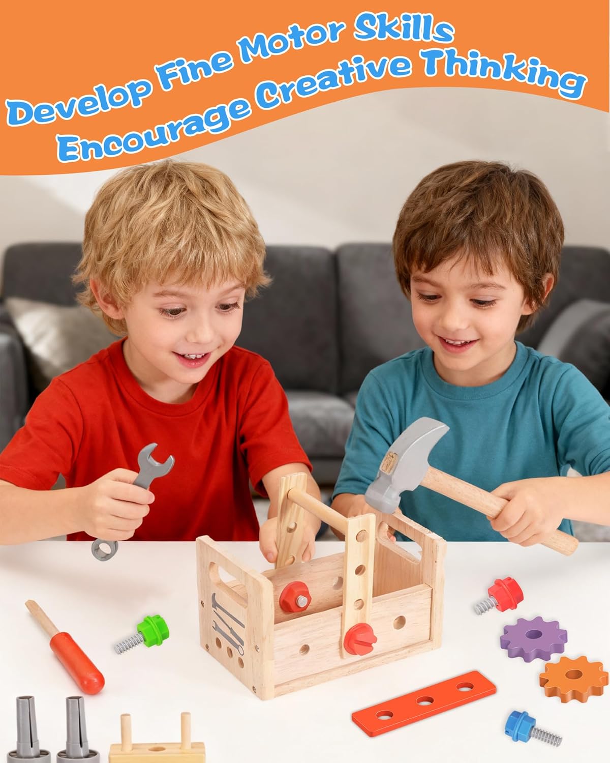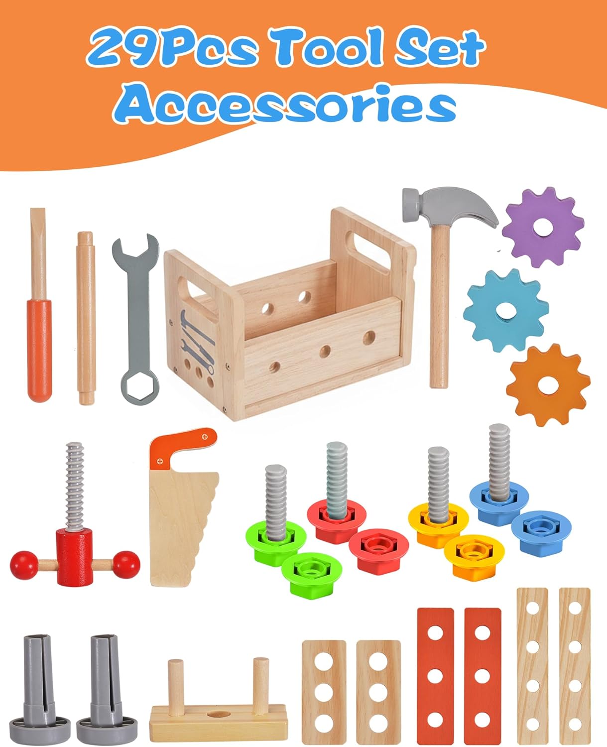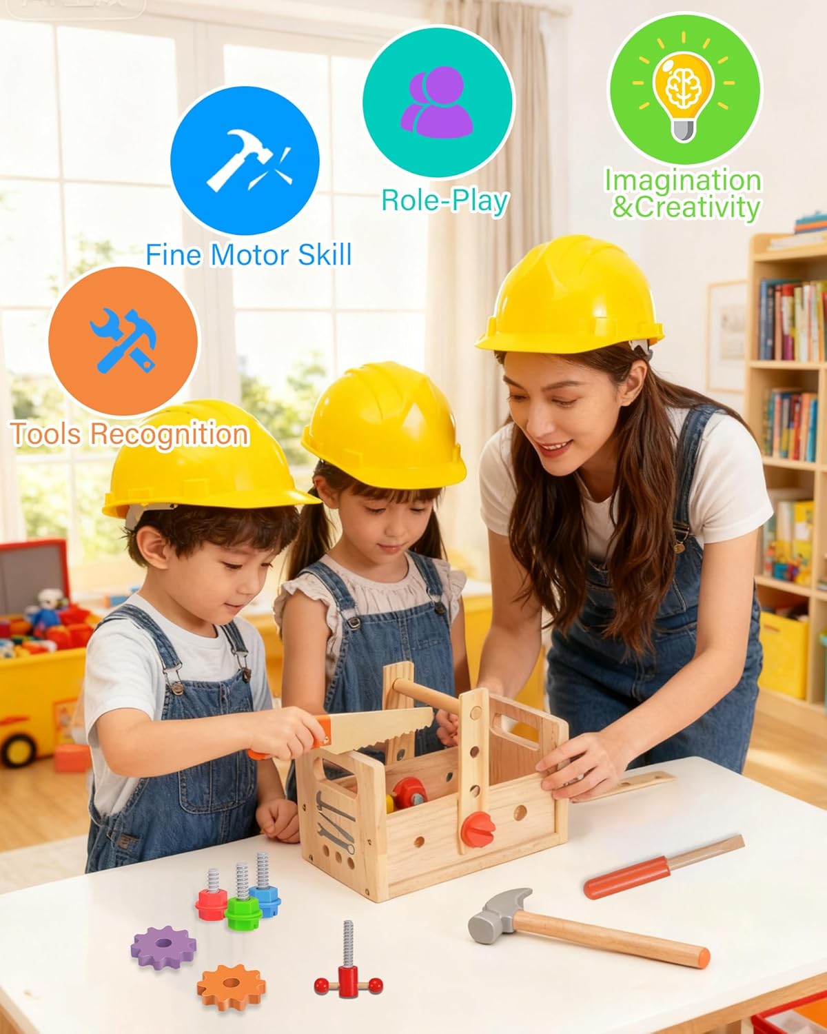 Set di Attrezzi Montessori da 29 Pezzi: I genitori cercano giocattoli che coinvolgano i bambini a casa o all’asilo, poiché i blocchi tradizionali diventano presto noiosi. Il nostro set di attrezzi Montessori da 29 pezzi include una cassetta, un martello, una chiave, un cacciavite, una sega, ingranaggi, viti e dadi, permettendo ai piccoli costruttori di creare mulini a vento, automobili o aeroplani, stimolando l’immaginazione e la motricità fine. Sviluppa Abilità Manuali e Creatività: Gli educatori e i genitori spesso si preoccupano che i giocattoli non favoriscano la coordinazione o la creatività. Questo giocattolo educativo STEM riproduce realisticamente veri strumenti – martellare, avvitare, segare o collegare ingranaggi – aiutando i bambini a migliorare destrezza, pazienza e immaginazione, oltre a insegnare la risoluzione pratica dei problemi. Ideale per i Bambini che Amano gli Attrezzi: Le famiglie con bambini a casa, in viaggio o dai nonni spesso hanno difficoltà con giocattoli ingombranti o difficili da riporre. Questo laboratorio in legno offre tre modalità: una valigetta da viaggio, un banco da lavoro e una cassetta porta attrezzi, incoraggiando il gioco di ruolo e insegnando ordine e autonomia fin dalla prima infanzia. Alta Qualità e Materiali Sicuri: I genitori temono i giocattoli in plastica con bordi taglienti che possono ferire le piccole mani. Il nostro set è realizzato in legno massiccio non tossico con bordi arrotondati e superfici lisce, perfettamente adatti alle mani dei bambini. Sicuro, resistente e progettato per anni di gioco creativo, dona serenità ai genitori e infinite possibilità ai piccoli costruttori. Regalo Perfetto per Bambini Curiosi: Genitori e nonni, nella scelta di un regalo per compleanni, Natale o altre occasioni, desiderano qualcosa di educativo e durevole. Questo set di attrezzi ecologico in legno soddisfa la curiosità e incoraggia l’imitazione sicura degli adulti, diventando un regalo educativo ideale per bambini e bambine in ogni momento speciale.