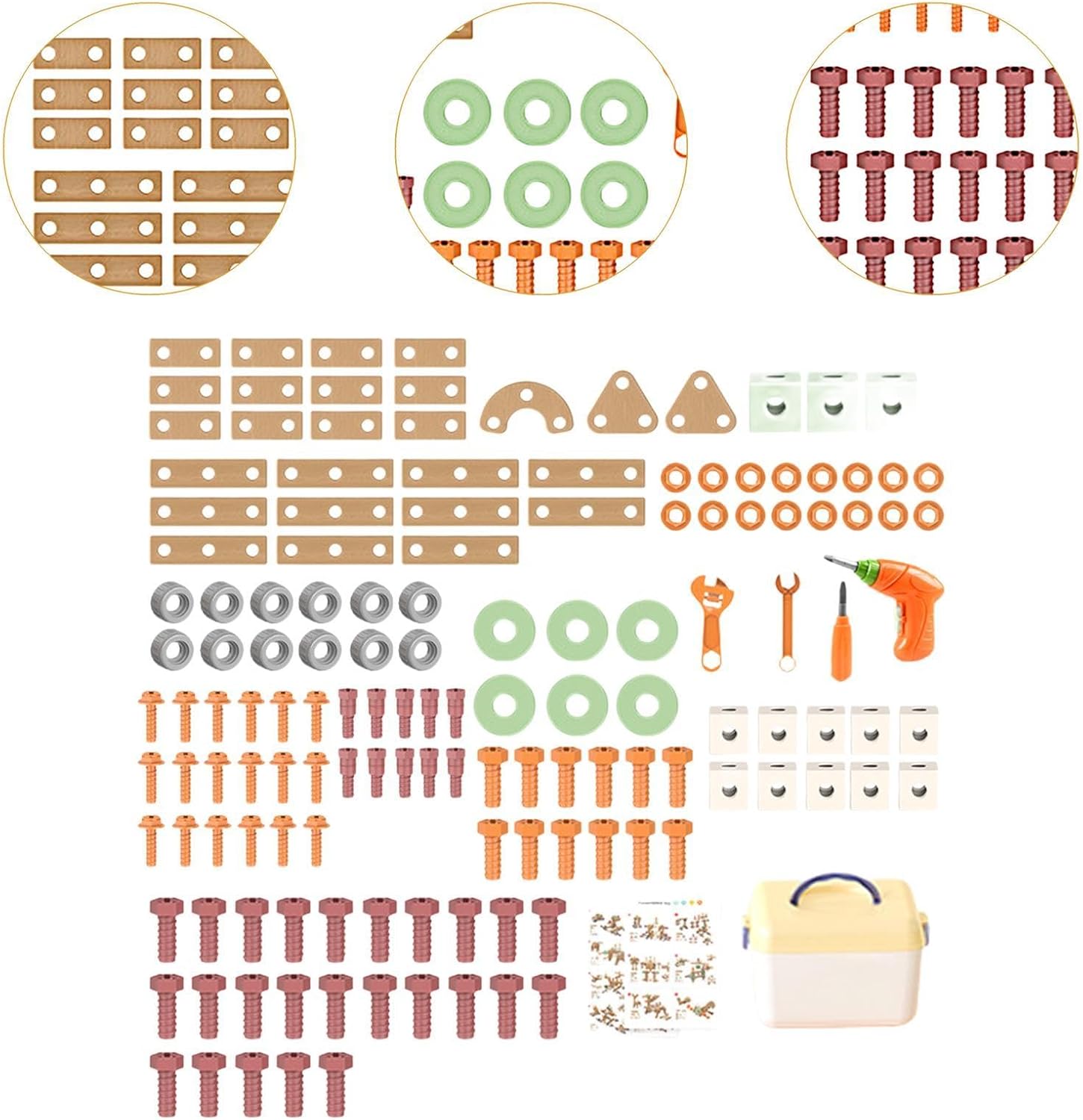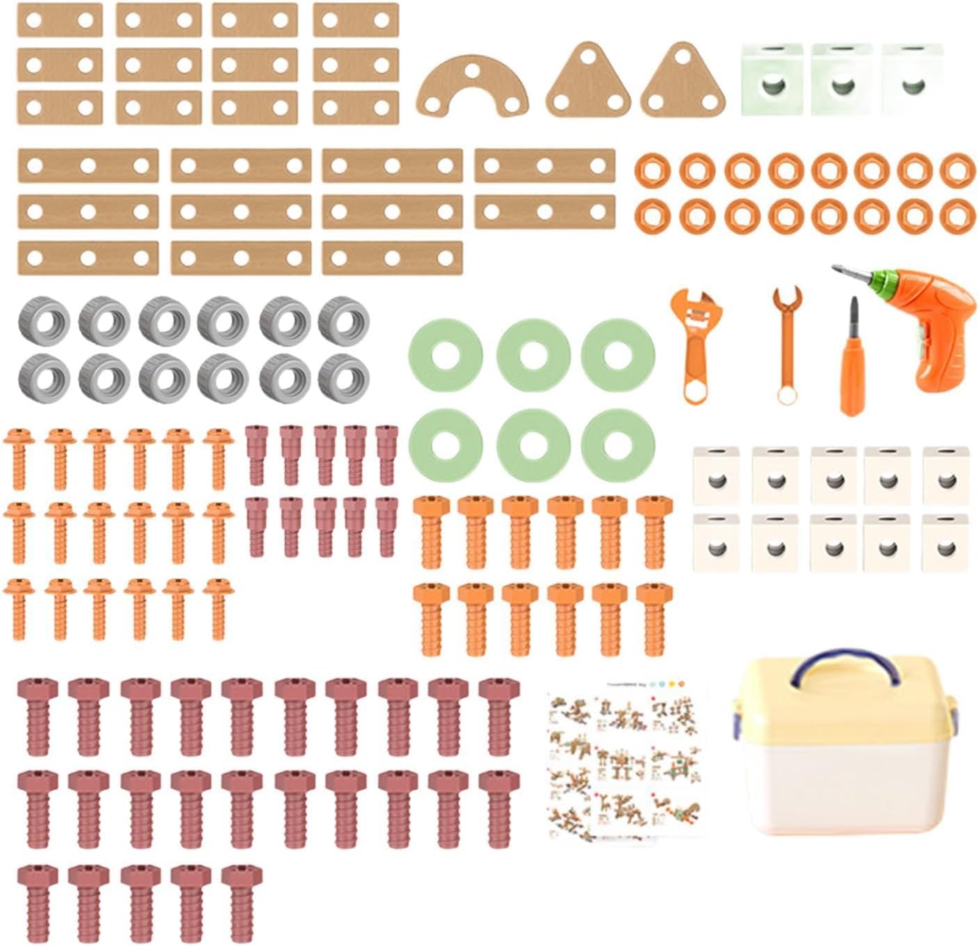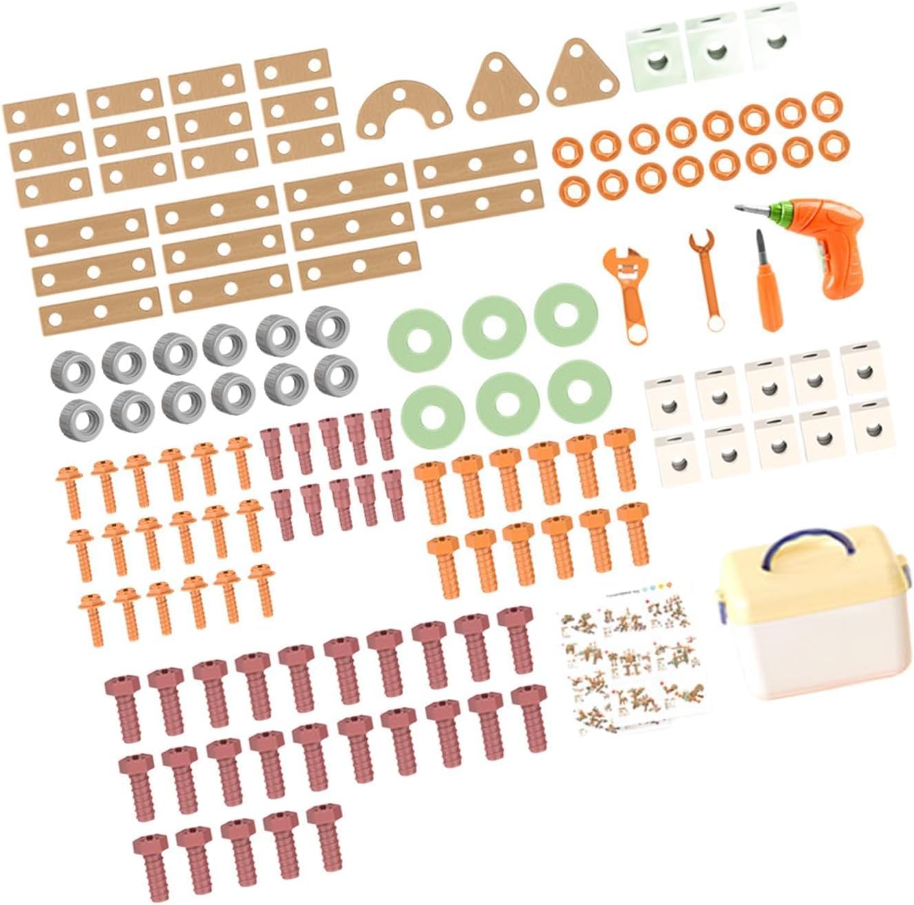 【Set di gioco educativo e realistico】: questo set di strumenti per bambini è progettato per ispirare la creatività e migliorare le capacità cognitive attraverso il gioco di ruolo come tuttofare, consentendo ai bambini di impegnarsi in giochi fantasiosi mentre imparano le abilità di riparazione di base 【Materiale】: Realizzato in PP di qualità, questo set di attrezzi giocattolo per bambini è sicuro per i bambini e costruito per resistere a giochi difficili. I materiali sono leggeri, garantendo che i più piccoli possano maneggiare attrezzi comodamente. 【Dimensioni compatte per mani piccole】: con dimensioni dei giocattoli da costruzione che vanno da 1,5 cm cm / da 0,59 pollici a 6,30 pollici, ogni pezzo del set ha le dimensioni perfette per le mani piccole 【Set completo】: il pacchetto include un trapano elettrico, offrendo una vasta gamma di strumenti e accessori che offrono infinite possibilità per progetti di costruzione creativi. I bambini possono divertirsi per ore assemblando diverse strutture o riparando oggetti immaginari in casa. 【Regalo per bambini】: Questo giocattolo da costruzione con trapano elettrico è un regalo ideale sia per bambini che per bambine. È un regalo delizioso che unisce divertimento e apprendimento.