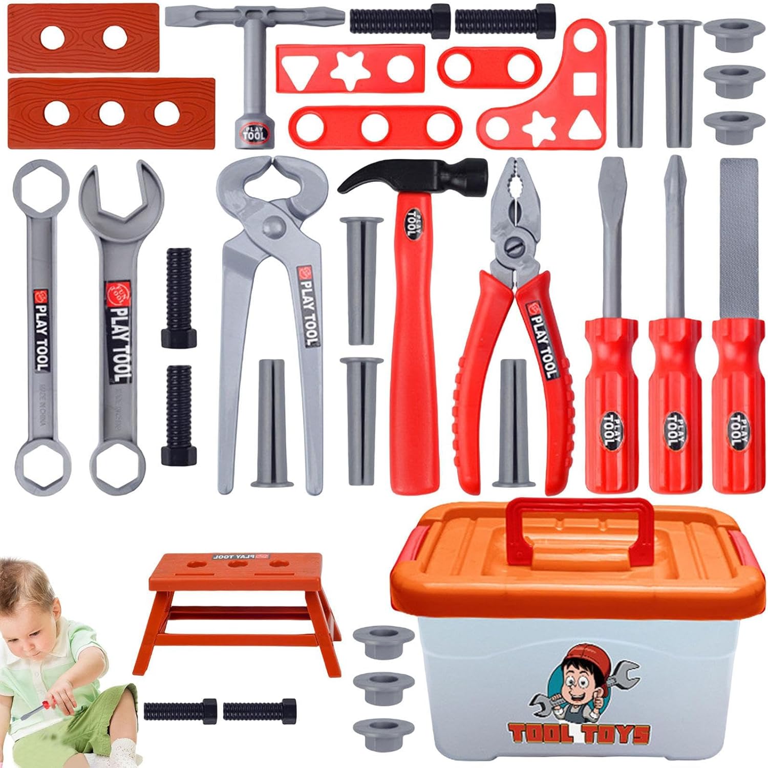 Strumenti Giocattolo Realistici: Con pinza, martello, cacciaviti e 39 accessori funzionali, questo set per bambini simula attrezzi veri stimolando il gioco creativo in sicurezza. Materiali robusti e design ergonomico per piccole mani. Divertimento Creativo: Progettato per bambini 3-7 anni questo set di 39 pezzi supporta giochi di imitazione aiutare gli adulti accendendo la fantasia e offrendo ore di intrattenimento pratico con esperienze ludiche coinvolgenti Gioco di finzione: Questo kit strumenti per bambini favorisce il gioco simbolico creativo, incoraggia il pensiero critico e l'apprendimento pratico, promuovendo lo sviluppo precoce di abilità e il miglioramento della coordinazione fisica durante sessioni ludiche istruttive e stimolanti Resistenza Provata: Elementi strutturali rinforzati e materiali robusti garantiscono prestazioni costanti e divertimento prolungato, anche dopo frequenti sessioni di gioco creativo con utensili Gioco creativo narrativo: Migliora le capacità manuali favorendo attività immaginative e racconti creativi con questo versatile kit di attrezzi, progettato per arricchire le interazioni familiari in diversi ambienti senza sforzo