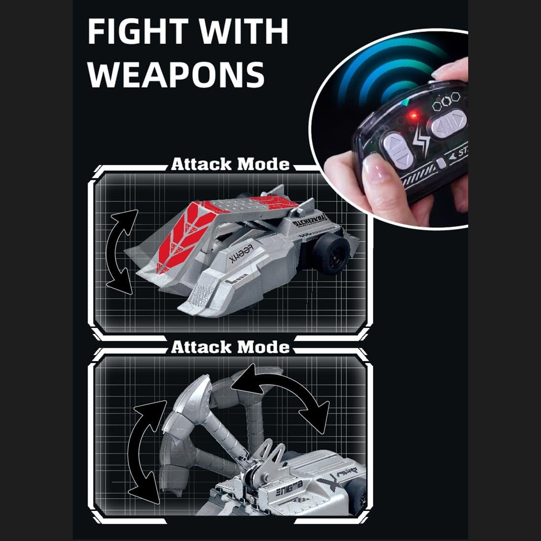 Intenso combattimento per 2 giocatori: questo set di carri armati RC presenta due veicoli corazzati con modalità di attacco uniche: una dotata di una pala anteriore per speronare, l'altro con un martello meccanico per schiacciare gli scioperi, offrendo emozionanti battaglie testa a testa Armatura distruttibile realistica: le piastre di armatura attaccate magnetiche possono essere rimosse durante il combattimento, aggiungendo eccitazione esplosiva consentendo al contempo un rapido rimontaggio per un'azione non-stop Controllo anti-interferenza a 2,4 GHz: i doppi telecomandi da 2,4 GHz garantiscono una trasmissione stabile del segnale, consentendo battaglie multiplayer senza ritardi o interferenze incrociate Struttura in lega di alta qualità: metallo resistente e materiali ABS ad alta resistenza forniscono una resistenza agli urti superiore, garantendo prestazioni di lunga durata in battaglie intense Intrattenimento dinamico per feste: a casa, eventi all'aperto o riunioni di gioco, questo set da combattimento RC scatena una competizione adrenalinica tra amici e hobbisti