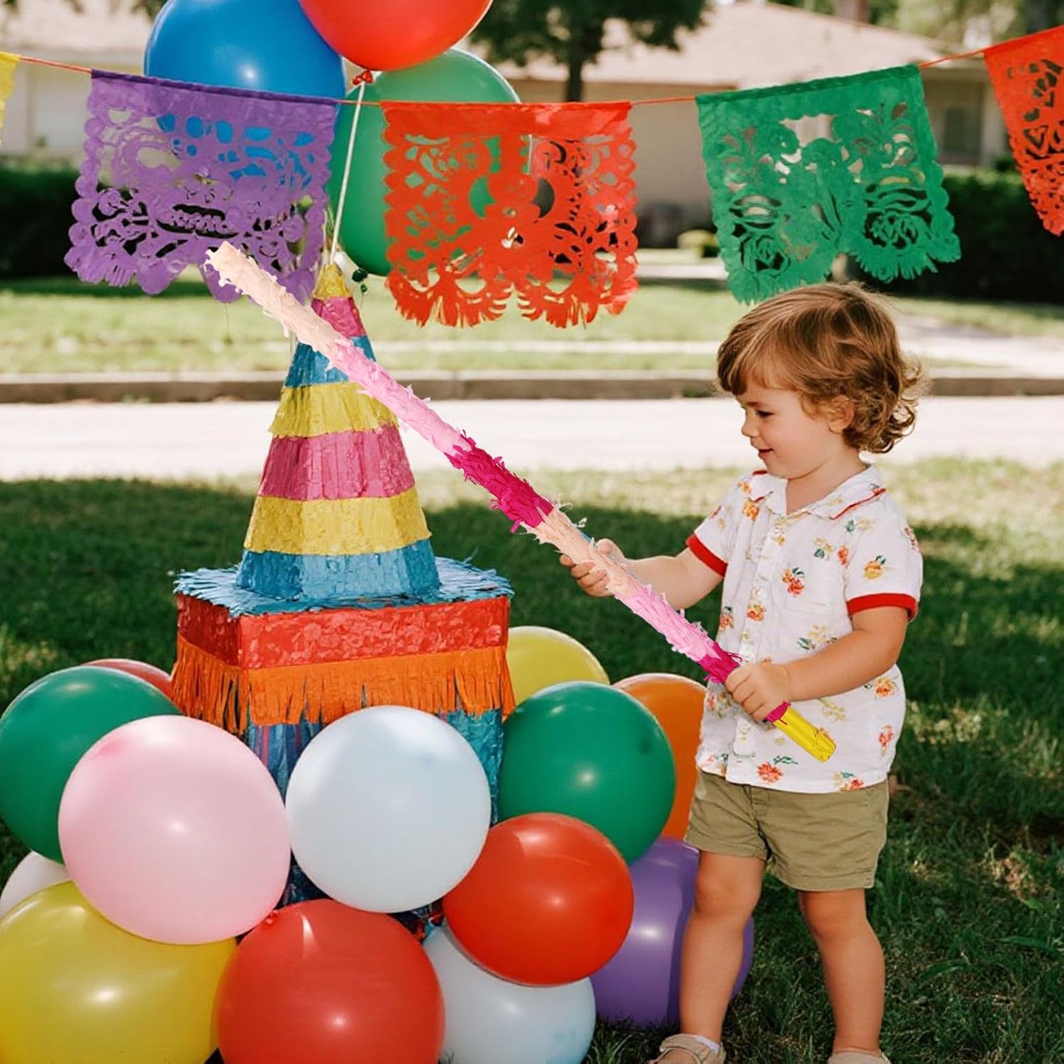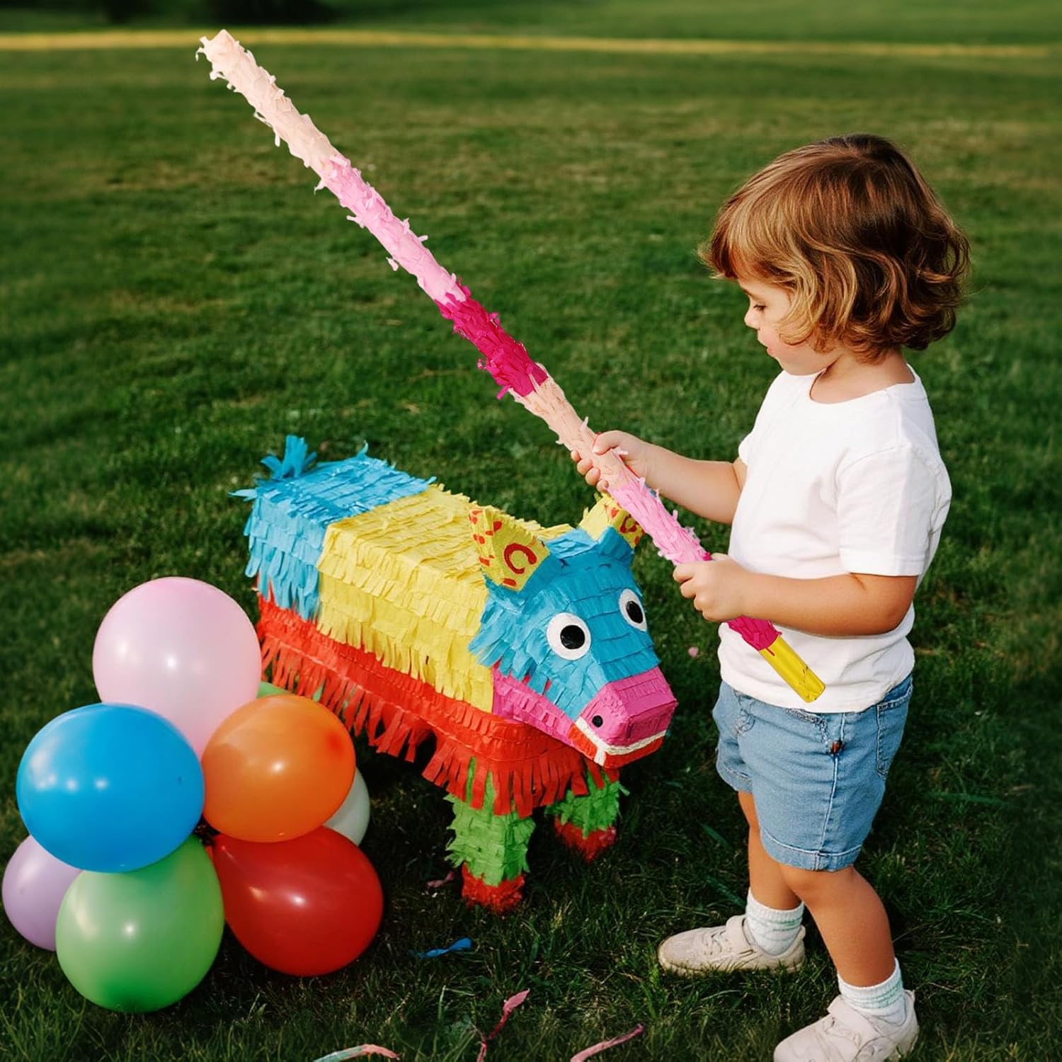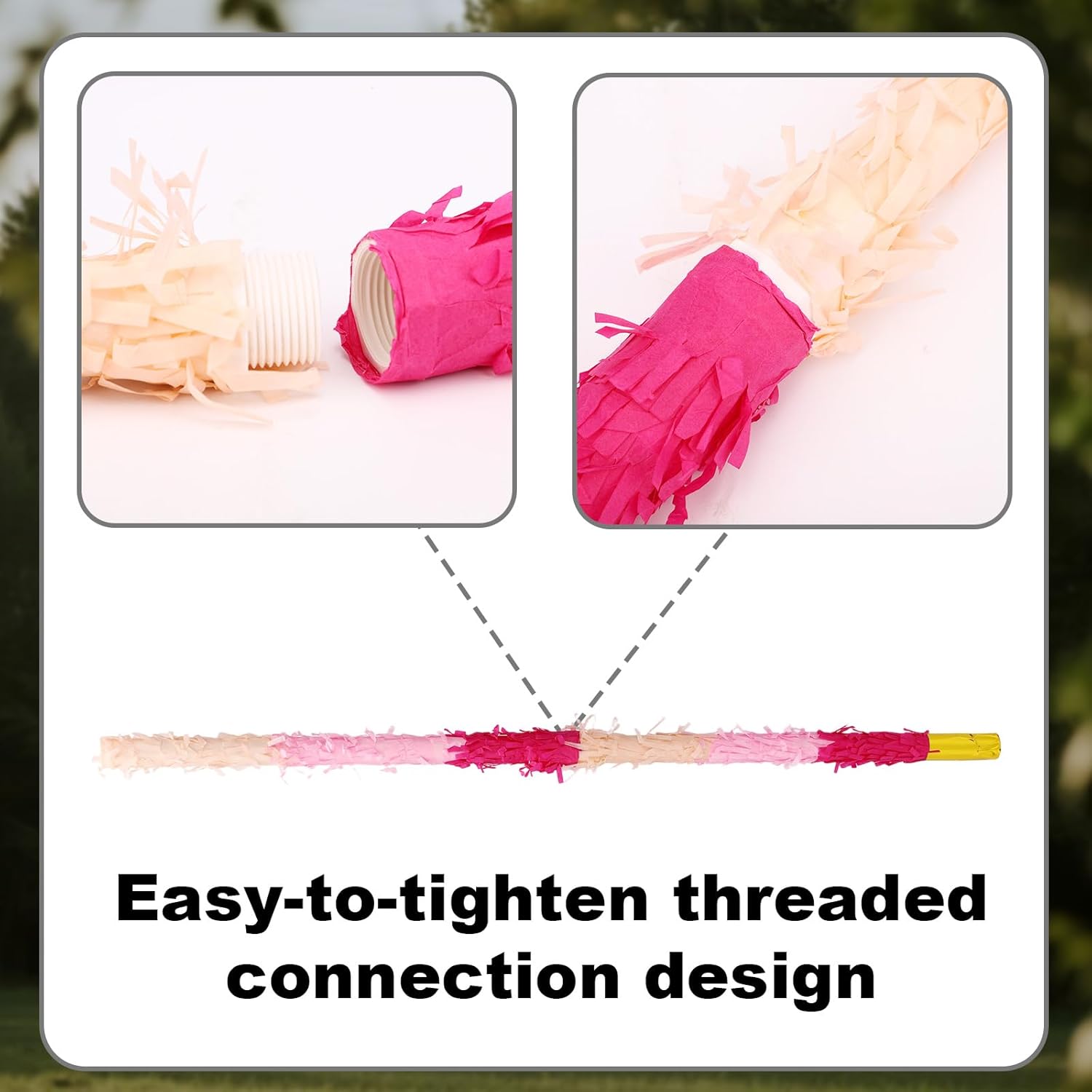 La confezione include: La confezione contiene 1 bastoncino di pinata, 1 benda, 1 sacchetto di coriandoli e 1 corda, tutto il necessario per organizzare una fantastica festa di pinata. Materiale eccellente: i bastoncini di pinata sono realizzati in plastica di buona qualità, affidabili, resistenti e possono resistere a centinaia di impatti senza rompersi, rendendoli perfetti per giochi da tavolo intensi. Ampia applicazione: i bastoncini durevoli di pinata sono adatti a varie feste festive, come feste di compleanno, feste Cinco de Mayo, festival messicani, eventi di Halloween e celebrazioni festive. DIMENSIONE IDEALE: La dimensione del bastoncino della pinata è di circa 76 cm e la dimensione della fascia per la testa è di circa 19x8 cm, una dimensione adatta sia per bambini che per adulti. Facile da usare: con un design avvitato filettato, il nostro stick per pinata può essere installato in modo rapido e sicuro senza fastidiosi passaggi, permettendoti di concentrarti sul divertimento del gioco.
