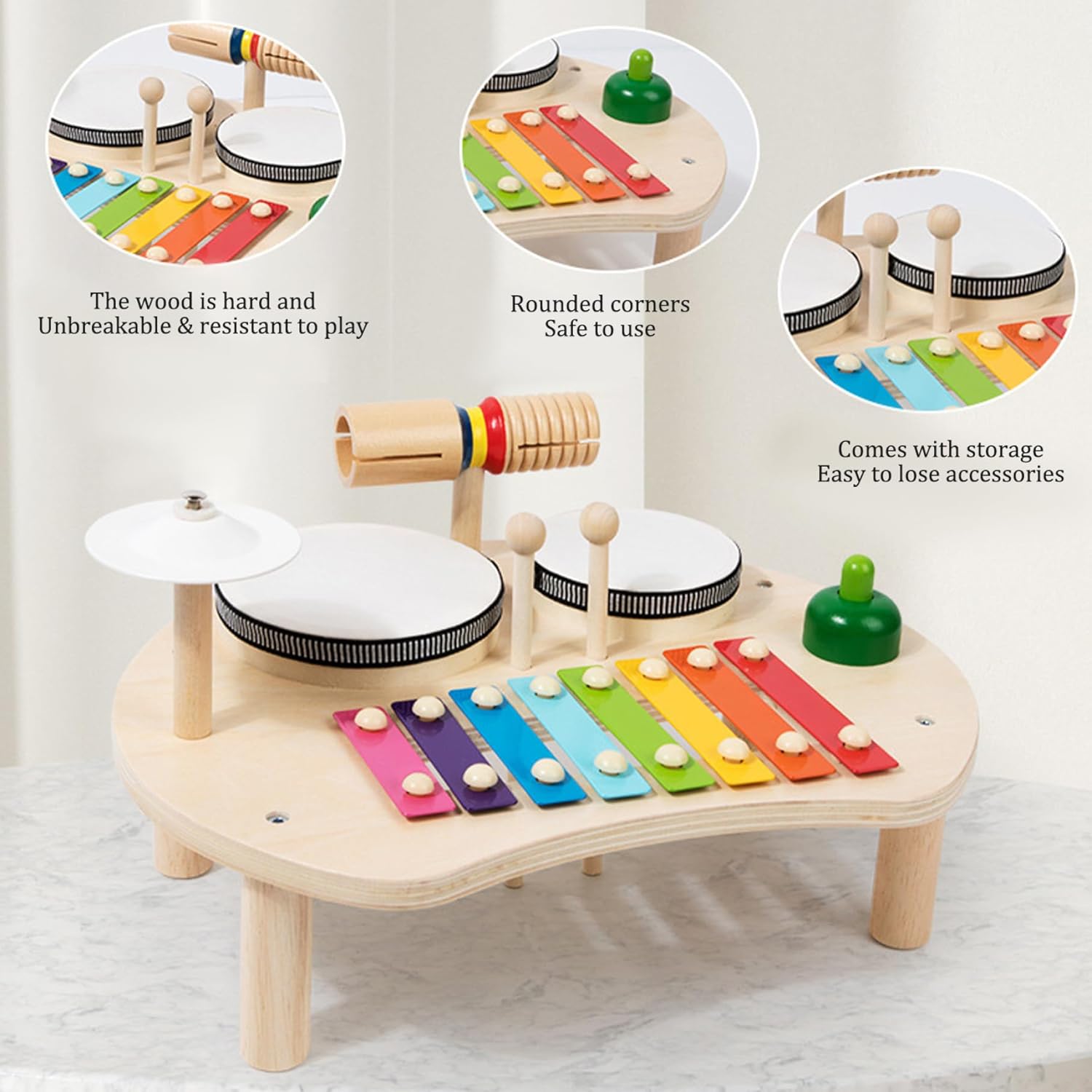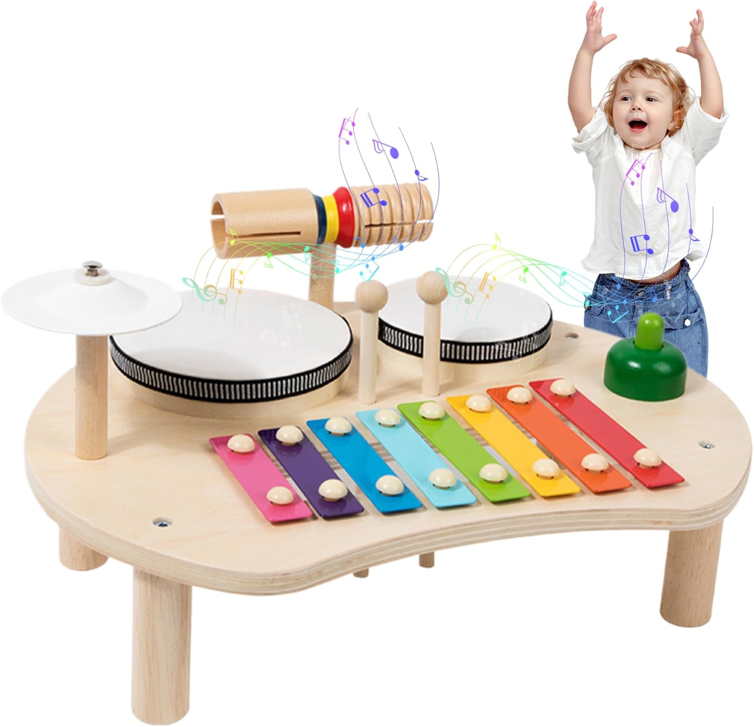 Materiale e dimensioni: il set di batteria per bambini è realizzato in legno e metallo, garantendo durata e robustezza per un gioco duraturo..Progettata con dimensioni perfette per la presa dei bambini, questa batteria è pensata per sessioni di gioco estese e gioiose, rendendola ideale per i giovani musicisti. Facile riporre gli accessori: il set di batteria per bambini include slot per riporre le bacchette, evitando che gli accessori perdano..Il design semplice di questo set di batteria e le chiare istruzioni di montaggio mantengono tutte le parti organizzate e accessibili. Sviluppo sensoriale: combinando cinque strumenti a percussione in un unico set, il set di tamburi per bambini emette una varietà di suoni quando viene colpito, migliorando i sensi musicali dei bambini e promuovendo l'interesse per la musica..Suonare la batteria può migliorare la coordinazione occhio-mano e sviluppare capacità motorie. Design con bordi arrotondati: caratterizzato da una finitura lucida, il set di batteria per bambini vanta una superficie liscia con bordi arrotondati per proteggere la pelle delicata dei bambini..Il design accurato garantisce un'esperienza di gioco sicura e confortevole, consentendo ai bambini di esplorare i propri talenti musicali senza preoccupazioni. Speciale: un giocattolo divertente ed educativo, il set di batteria per bambini è un delizioso giocattolo sensoriale musicale adatto a bambini di tutte le età e generi..Perfetto per compleanni, feste, celebrazioni, vacanze, Natale e Halloween.