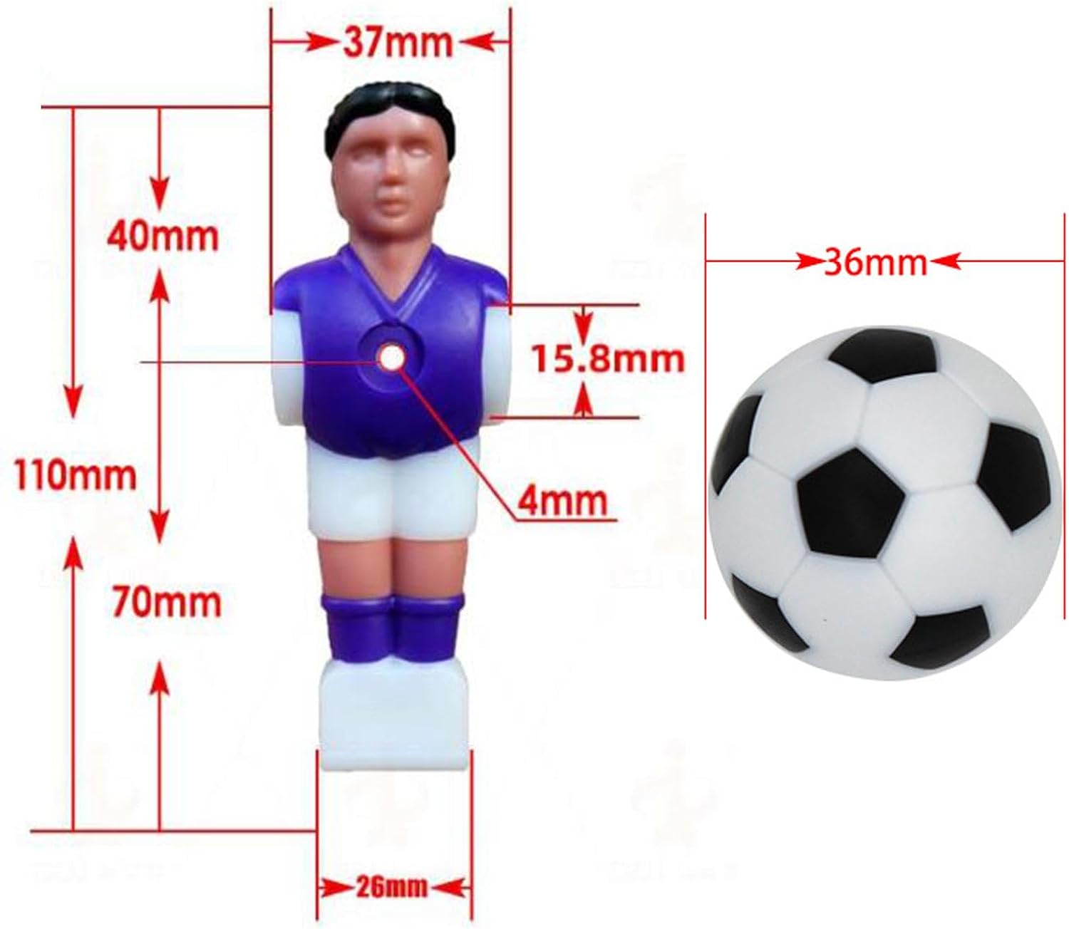 【Contenuto della confezione】: 11 calciatori da tavolo blu, 11 calciatori da tavolo gialli e 1 calcio balilla bianco e nero, regalo for giocatori di calcio o amanti del calcio. 【Dimensioni】: Calcio balilla di ricambio, diametro del foro: 1,58 cm, persona: A x L: 11 cm x 3,7 cm, palla: 3,6 cm, piccolo giocatore di calcio balilla, portatile e leggero, facile da usare. 【Materiale】: il tavolo da calcio balilla è realizzato in resina, pratico e di lunga durata. Non esitate a contattarci. 【Adatto per】: Il biliardino è compatibile con i biliardini con aste standard. Ottimi accessori for il calcio balilla. 【Giochi da calcio】: Giocatori da calcio balilla di ricambio, con squisita fattura e un design vivido. Questi giocatori da calcio balilla sono ottimi come pezzi di ricambio for i tornei di calcio.