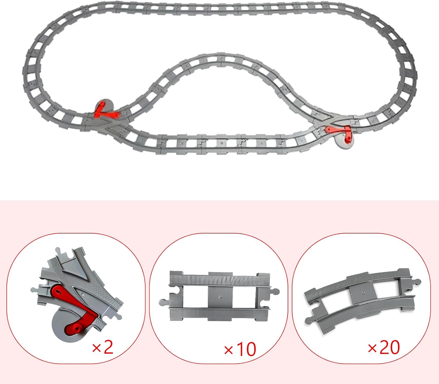 Set di binari: contiene 10 binari dritti, 20 curve e 2 morbide. Può essere combinato in un tratto ovale completo e ha la funzione di cambio di binario. Divertimento fai da te: i giocattoli per treno ti offrono la possibilità di espandere i tuoi kit esistenti, creare percorsi e scene sempre più complessi e divertirti ancora di più durante il montaggio e il gioco. Compatibile: City Rails compatibili con marchi popolari sul mercato, possono essere giocati con altri giocattoli da costruzione, i bambini possono migliorare le loro abilità pratiche e capacità di pensiero durante il funzionamento Idea regalo: i giocattoli per treni della città sono facili da montare e adatti per bambini dai 2 anni in su. I binari ferroviari sono il regalo ideale per bambini e appassionati di ferrovia in occasioni come compleanni, riunioni di famiglia, Natale, festa dei bambini e molto altro ancora. Materiale sicuro: queste guide sono tutte realizzate in materiale ABS di alta qualità, sicure e atossiche, resistenti e possono offrire ai bambini un divertimento senza fine.