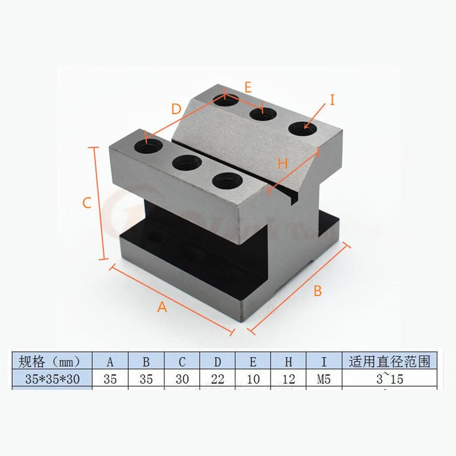 Caratteristiche: 1. Dimensioni: 35x35x30mm.Dimensione di serraggio del gambo: 3-15 mm. 2. Utilizzare acciaio completamente indurito e a terra. HRC52-58. 3. I blocchi V sono paralleli, quadrati e centrati entro 0,0002 ". 4. Imballato in caso di legno.