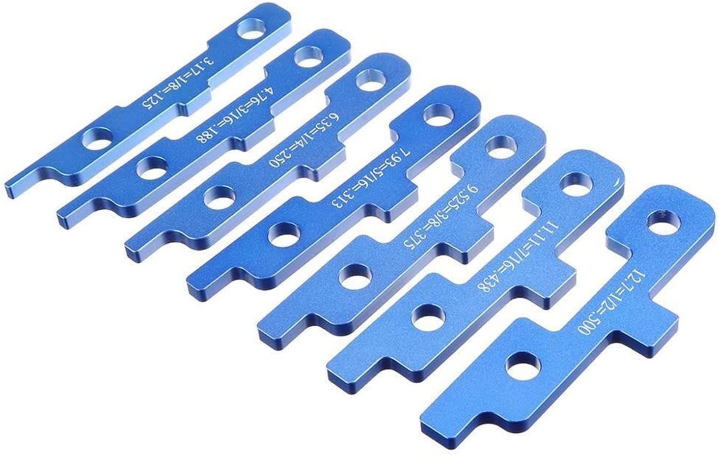 Il gradino sul bordo superiore di ciascuna barra funge da indicatore per testare la profondità dei tagli completati. Le barre sono realizzate in un morbido alluminio progettato per evitare danni alla punta del router o alla lama della sega in caso di contatto durante l'installazione. Il design unico si trova a cavallo della fresa o della lama della sega per consentire una regolazione dell'altezza più precisa. Un gradino sul bordo superiore di ciascuna barra di installazione funge da indicatore per testare la profondità dei tagli completati. Un gradino all'estremità di ciascuna barra di installazione utilizzata per testare la profondità della guida di una lama da banco o di una fresa. Realizzato in un morbido alluminio progettato per evitare danni alla punta del router o alla lama della sega in caso di contatto durante l'installazione.