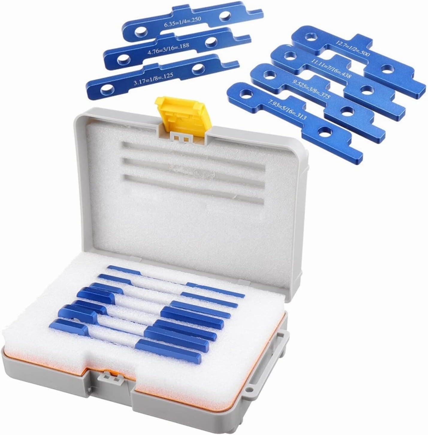 Il gradino sul bordo superiore di ciascuna barra funge da indicatore per testare la profondità dei tagli completati. Le barre sono realizzate in un alluminio morbido progettato per evitare danni alla punta del router o alla lama della sega in caso di contatto durante l'installazione. Il design unico si trova a cavallo della fresa o della lama della sega per consentire una regolazione dell'altezza più precisa. Il gradino sul bordo superiore di ciascuna barra di installazione funge da indicatore per testare la profondità dei tagli completati. Passare all'estremità di ciascuna barra di installazione utilizzata per testare la profondità della recinzione di una lama per sega da banco o di una fresa. Realizzato in un morbido alluminio progettato per evitare danni alla punta del router o alla lama della sega in caso di contatto durante l'installazione.