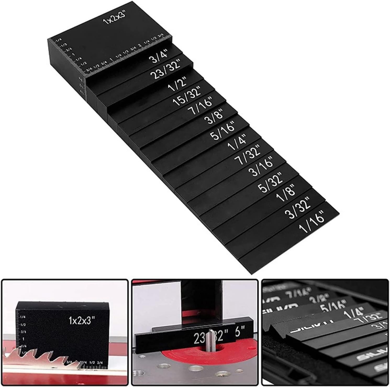 Numero di modello: blocchi di installazione Installazione rapida e semplice accurata di punte e recinzioni per lame 15 blocchi di costruzione in alluminio solido anodizzato nero per evitare danni a frese e seghe Etichette incise di facile lettura su ogni blocco. Per mantenere tutto il tuo blocco di installazione sicuro e organizzato, vengono imballati in una custodia protettiva, si spera che nessuno sparisca mai.