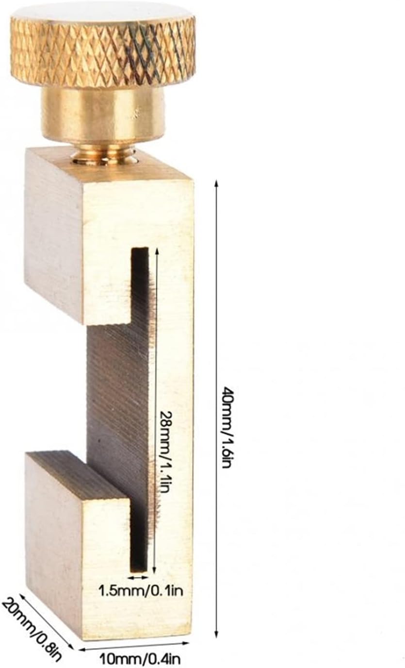 Forte capacità di bloccaggio, non cadrà facilmente. Adatto per righello in acciaio con larghezza di 26 mm e spessore inferiore a 1,1 mm. Può essere utilizzato con righello in acciaio lungo 200/300 mm. Realizzato in materiale di ottone, elevata durezza e non facile da danneggiare. La manopola può essere regolata rapidamente e può essere misurata dopo aver bloccato il bordo del righello in qualsiasi punto del cavo.