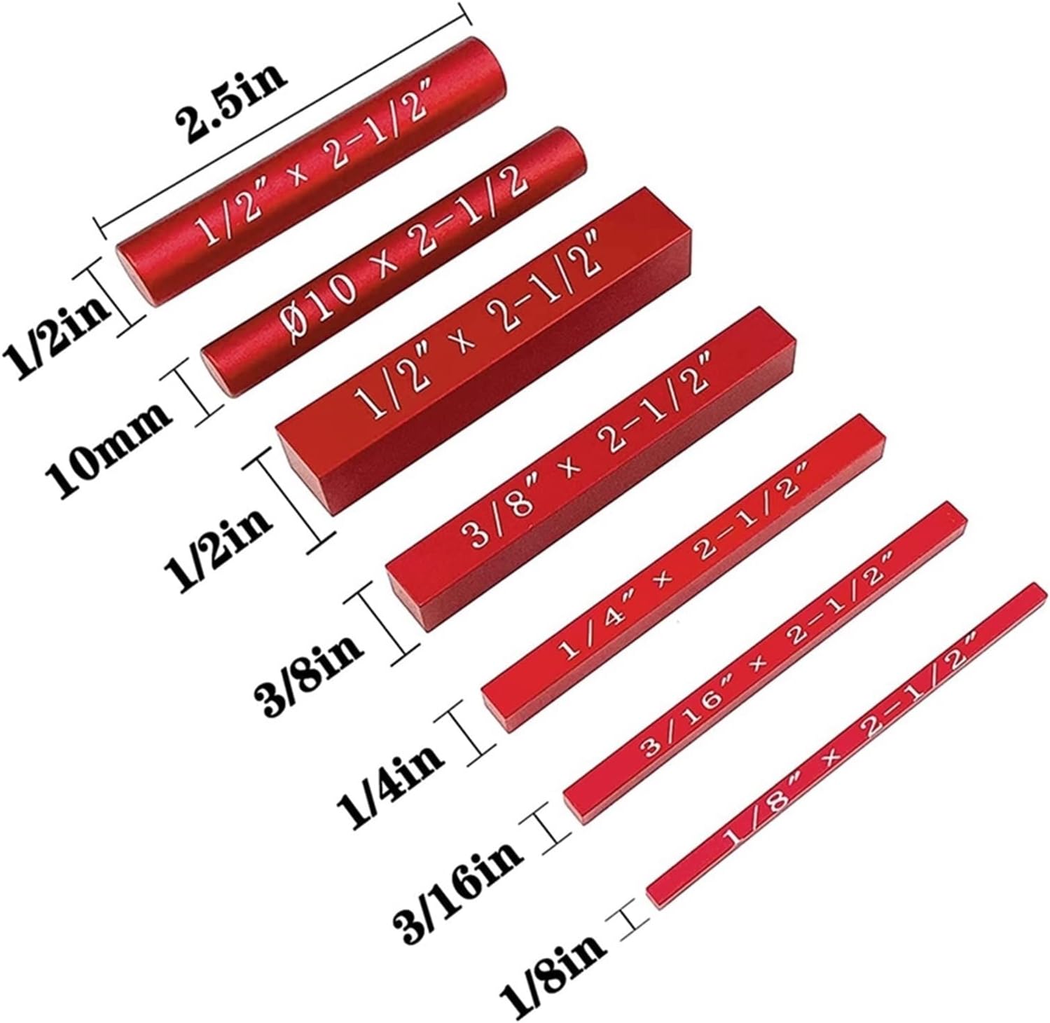 Materiale: lega di alluminio Set di indicatori di altezza per blocchi di installazione in alluminio, 7 barre di installazione di precisione in alluminio per accessori per router e seghe da tavolo MISURAZIONE RAPIDA E CONVENIENTE: etichette incise di facile lettura su ogni blocco. PRATICI STRUMENTI PER LA LAVORAZIONE DEL LEGNO: dispositivi di misurazione dell'altezza a 5 pezzi di diverse dimensioni e calibri a 2 pezzi, possono facilmente impostare l'altezza della recinzione, delle punte delle lame e di altre frese in base alle esigenze, il che è più veloce e preciso rispetto all'utilizzo di un righello combinato.Impila le barre di configurazione per un'ampia variazione o dimensioni, o usale da sole, lavora e misura rapidamente. DUREVOLE: 7 pezzi di blocchi in alluminio massiccio anodizzato per proteggere meglio le frese e le seghe.