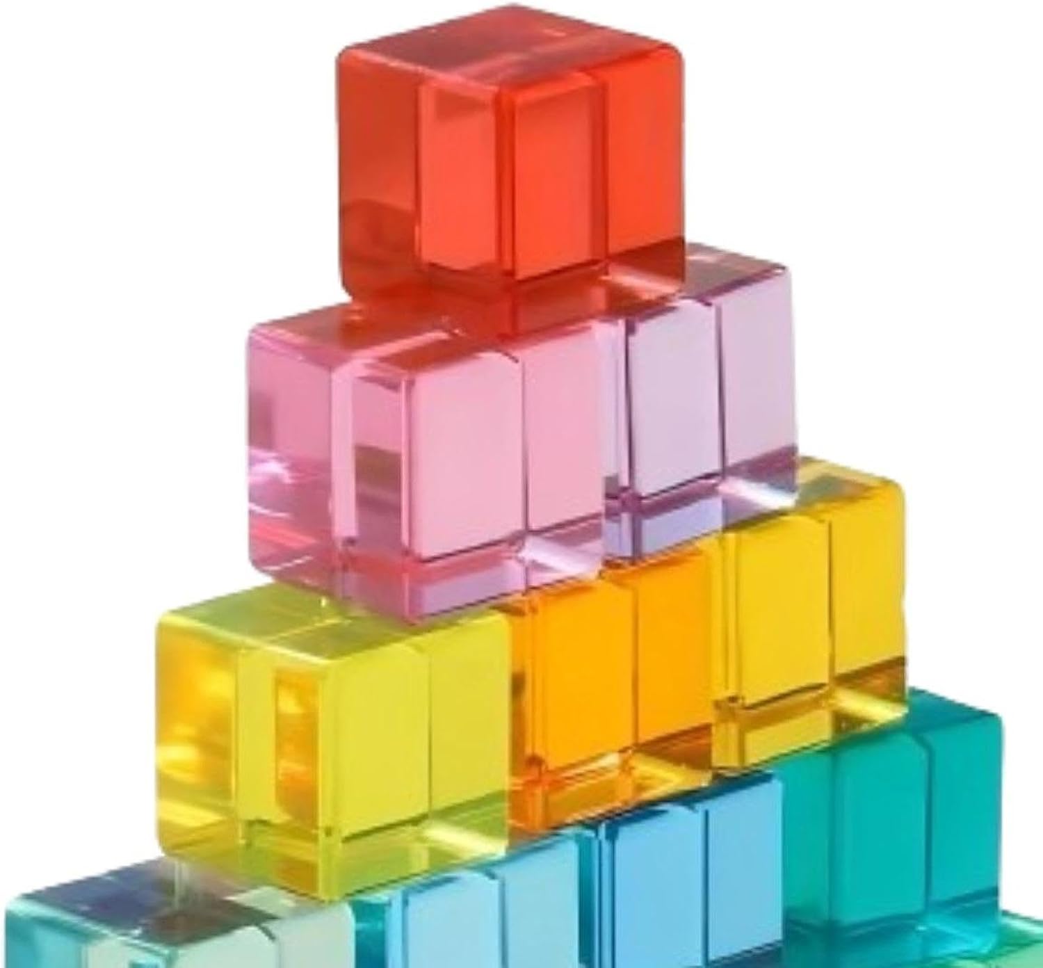 【GIOCO EDUCATIVO COINVOLGENTE】: Più che un semplice giocattolo, questi mattoncini sono un potente strumento per lo sviluppo precoce. Aiutano i bambini a imparare a riconoscere i colori, a migliorare la coordinazione occhio-mano e a sviluppare il ragionamento spaziale e le capacità motorie fini mentre impilano, costruiscono e ordinano. 【DIMENSIONI PERFETTE E PORTATILE】: Ogni blocco acrilico arcobaleno misura 2,5 cm x 2,5 cm x 2,5 cm / 0,98 pollici x 0,98 pollici x 0,98 pollici, rendendolo facile da afferrare e manipolare per i bambini piccoli e in età prescolare 【COSTRUZIONE PREMIUM】: Realizzati in acrilico di qualità, questi blocchi da costruzione arcobaleno sono costruiti per resistere a ore di gioco entusiasmante. Ogni cubo presenta bordi perfettamente lisci e lucidati per garantire un'esperienza tattile confortevole per le manine dei più piccoli. 【ARCOBALENO DI COLORI】: splendidi blocchi acrilici traslucidi, ognuno in un colore unico e brillante. Quando esposti alla luce, questi cubi acrilici creano bellissime ombre e motivi colorati, offrendo un'esperienza visiva accattivante che stimola l'immaginazione e la creatività del tuo bambino. 【IL REGALO IDEALE PER CURIOSE】: Dal design accattivante e ricco di benefici per lo sviluppo, questo set di blocchi arcobaleno è il regalo ideale per compleanni, feste o qualsiasi occasione speciale. Il set include una comoda borsa in tessuto per riporlo, che facilita la pulizia e consente di trasportarlo facilmente per giocare o .