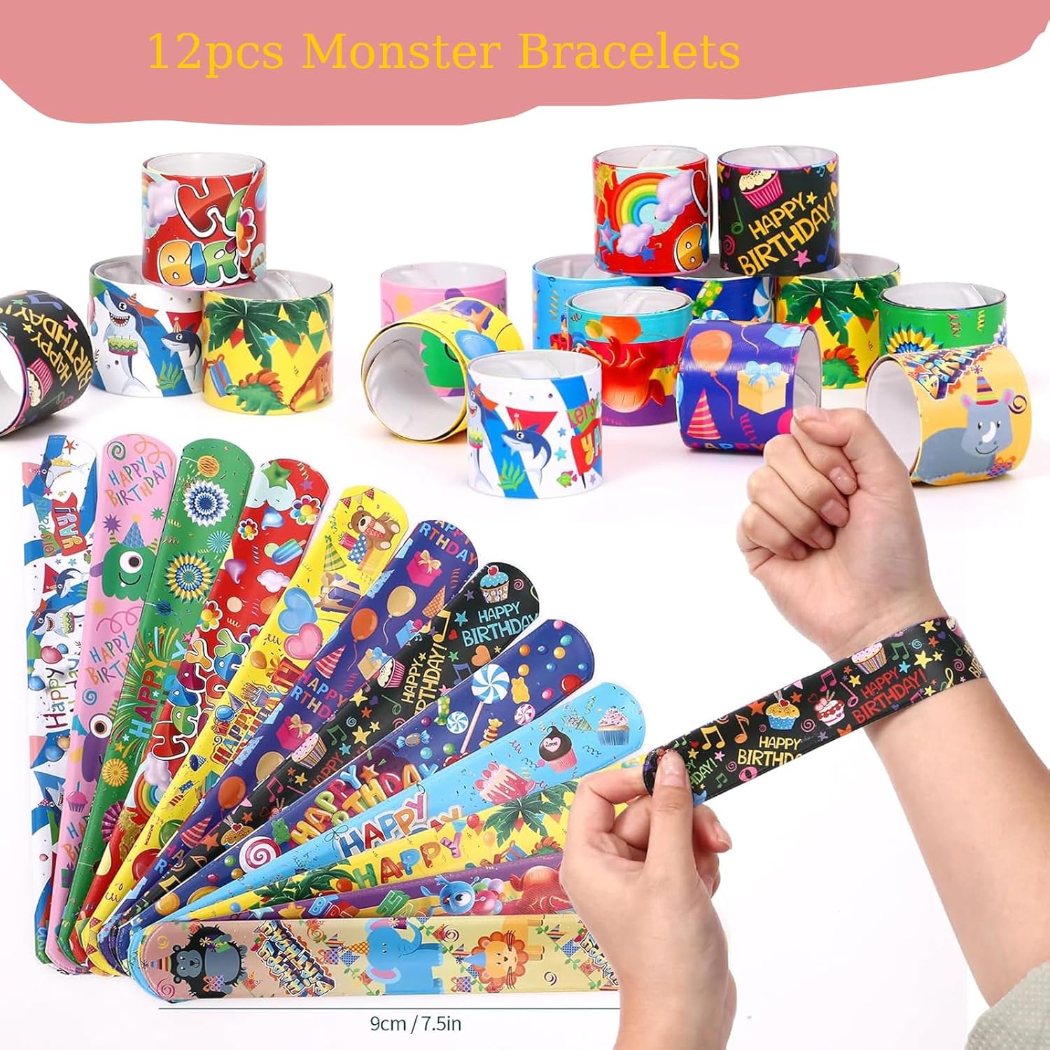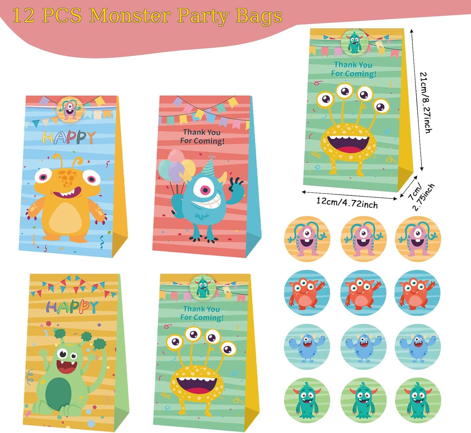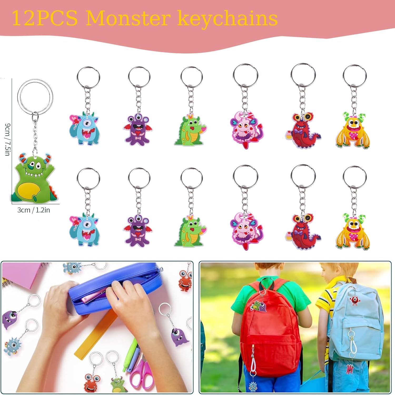 【Set di Compleanno per Bambini Monster Party】86 pezzi regali per feste di mostri Include 12 sacchetti regalo, 12 braccialetti a scatto, 12 portachiavi in silicone, 50 adesivi creano un'atmosfera divertente e divertente per le decorazioni per feste per bambini. 【Materiale di alta qualità】Tutte le parti delle bomboniere di mostri sono realizzate con materiali sicuri ed ecologici. I portachiavi Monster sono realizzati in PVC e lega, delicati e carini. I sacchetti regalo e gli adesivi sono realizzati in carta spessa, robusta e durevole, leggera e facile da trasportare, perfetta per le feste dei bambini. che rende il tuo evento indimenticabile e offre qualcosa di speciale ai bambini 【Ampio utilizzo】 La nostra bomboniera a tema mostri adatta per feste a tema camion, feste di compleanno per bambini, baby shower, riempitivi per sacchetti regalo, premi per le aule scolastiche, riempitivi di pinata, omaggi di carnevale e così via 【Bomboniere per feste di compleanno per bambini con mostri】 Questi giocattoli per feste promuovono l'immaginazione dei bambini, la percezione del colore e le capacità motorie, i bambini possono usare la loro condivisione con gli amici, aumentare la concentrazione dei bambini, migliorare la creatività. che rende il vostro evento indimenticabile e regala ai bambini qualcosa di speciale