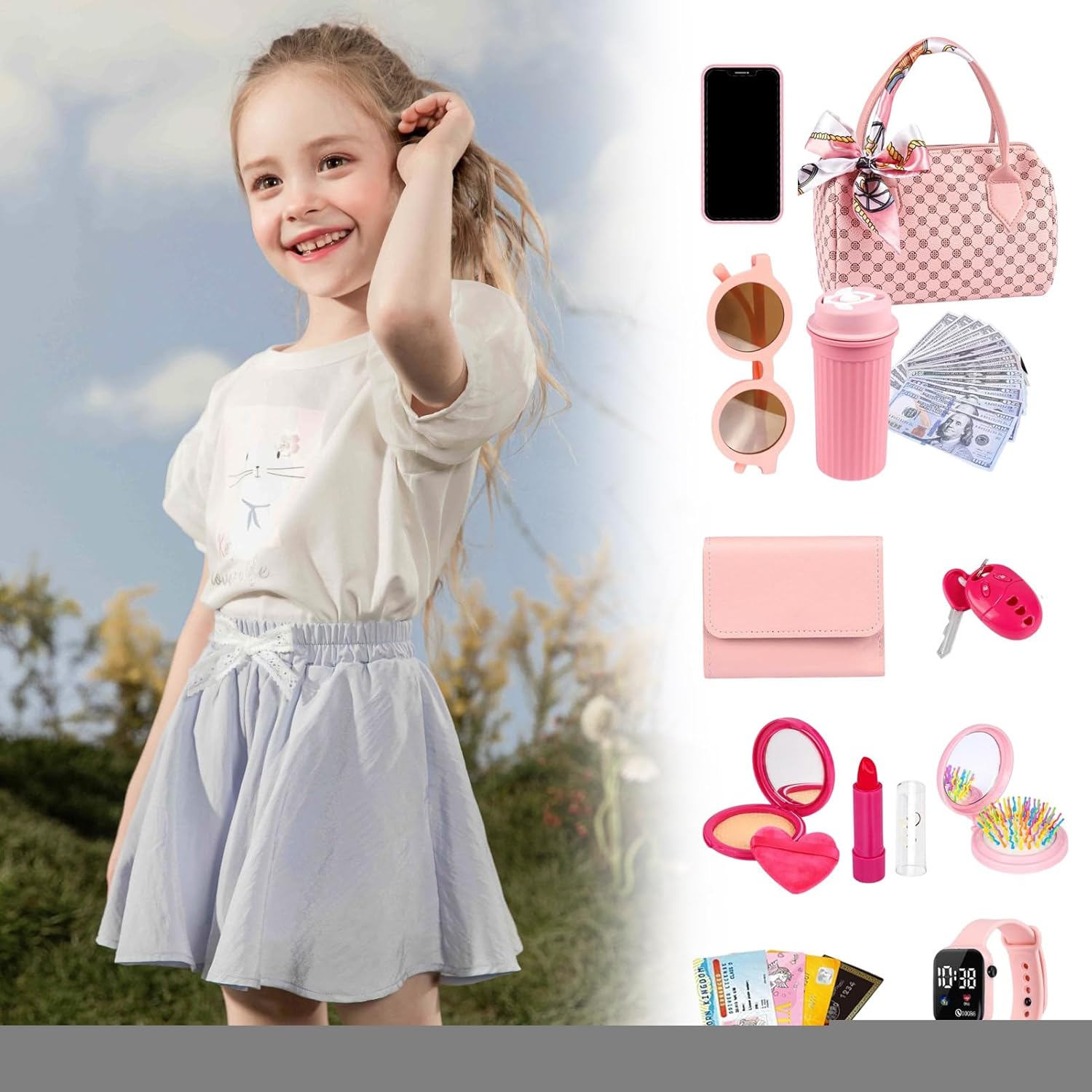 Mondi di gioco coinvolgenti: stimola applicazioni creative con numerosi accessori per giochi di ruolo, inclusa borsa da gioco, telefono cellulare e orologio per ragazze Regalo creativo: appositamente progettato per gli amanti delle principesse, questa borsa da gioco aumenta la fiducia sociale, arricchisce la convivenza tra genitori e bambini e diventa un regalo indimenticabile per compleanni, feste per bambini o occasioni festive grazie ai dettagli giocabili. Estrema durata: la miscela di gomma e schiuma resistente garantisce una sensazione morbida al tatto, rimane come nuova a lungo e garantisce sicurezza durante i giochi di ruolo fantasiosi Design adatto ai bambini: la cerniera liscia garantisce un facile utilizzo con ampio spazio per tutti gli accessori, stimola naturalmente lo sviluppo artistico Promuovere le competenze chiave: repliche realistiche dei giochi di società allenano giocosamente la capacità di dialogo e il processo decisionale. Multiuso in asilo e famiglia.
