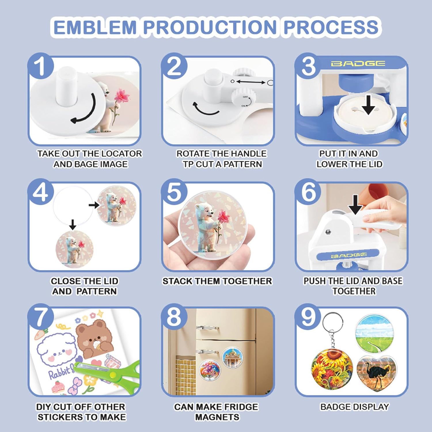 Crea fino a 48 distintivi unici senza sforzo con questo set Button Maker Machine, con struttura in ABS e bordi arrotondati sicuri per i bambini per il fai da te. Il meccanismo di stampa integrato con taglierina circolare da 55 mm garantisce il taglio del modello e il montaggio sicuro del badge utilizzando modelli di design e componenti riutilizzabili. Ideale per bambini e appassionati di artigianato, questo strumento educativo migliora la creatività sviluppando abilità motorie attraverso le personalizzazioni pratiche del distintivo. Per progetti scolastici, regali di festa come ornamenti di Natale, forniture per feste di compleanno o personalizzare con foto, disegni e adesivi decorativi. La confezione regalo portatile include tutti gli accessori Badge Maker per bambini, consentendo un'espressione artistica immediata senza configurazioni o strumenti complessi.