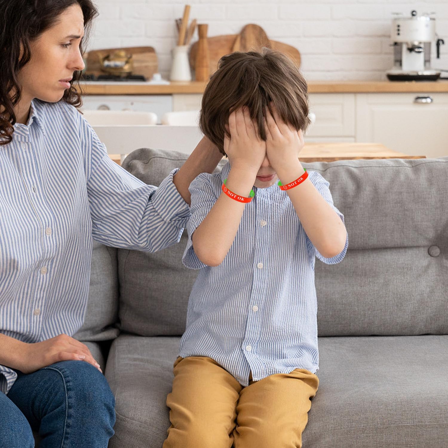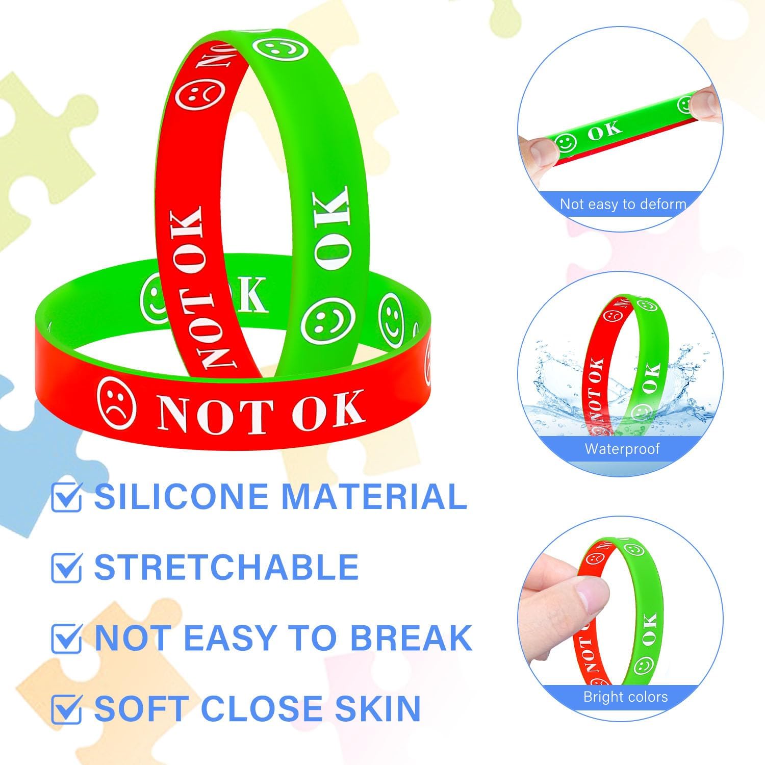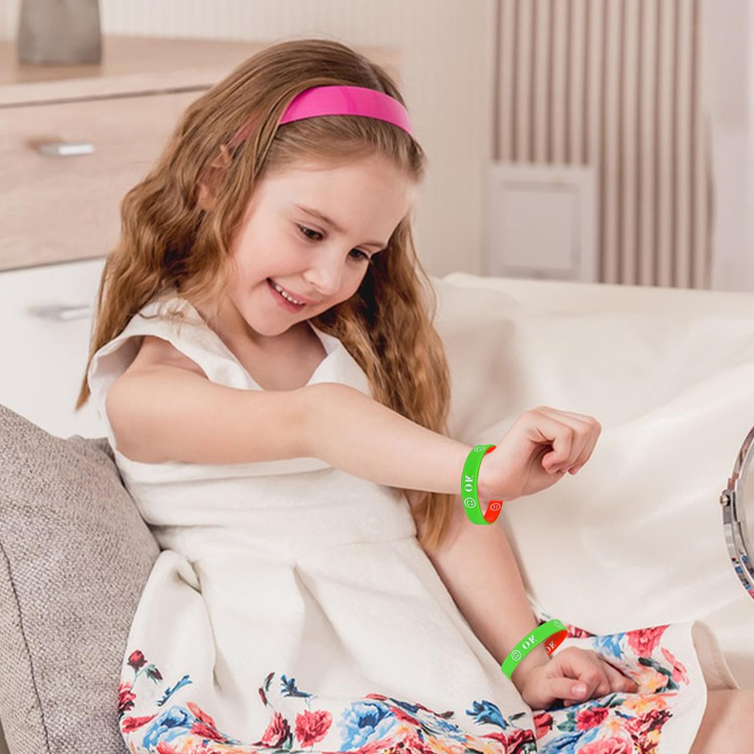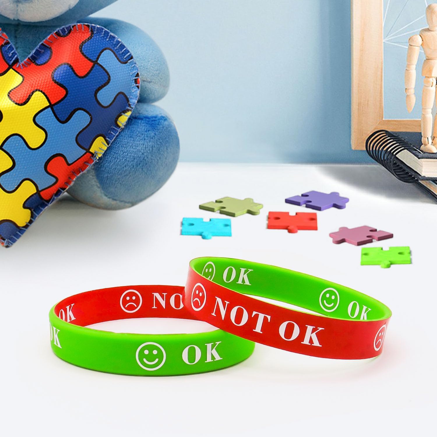Excellent idea for children who find expressing their emotions difficult. I bought these for my nephew, who is autistic. His excitement, upset, frustration and tiredness can all present the same. With these, he is able to indicate if he needs help dealing with an emotion, especially when he is in school. The colours are bright and the writing is well written on. These are great value for money however I would say the size of these bands are a little too large for children unfortunately