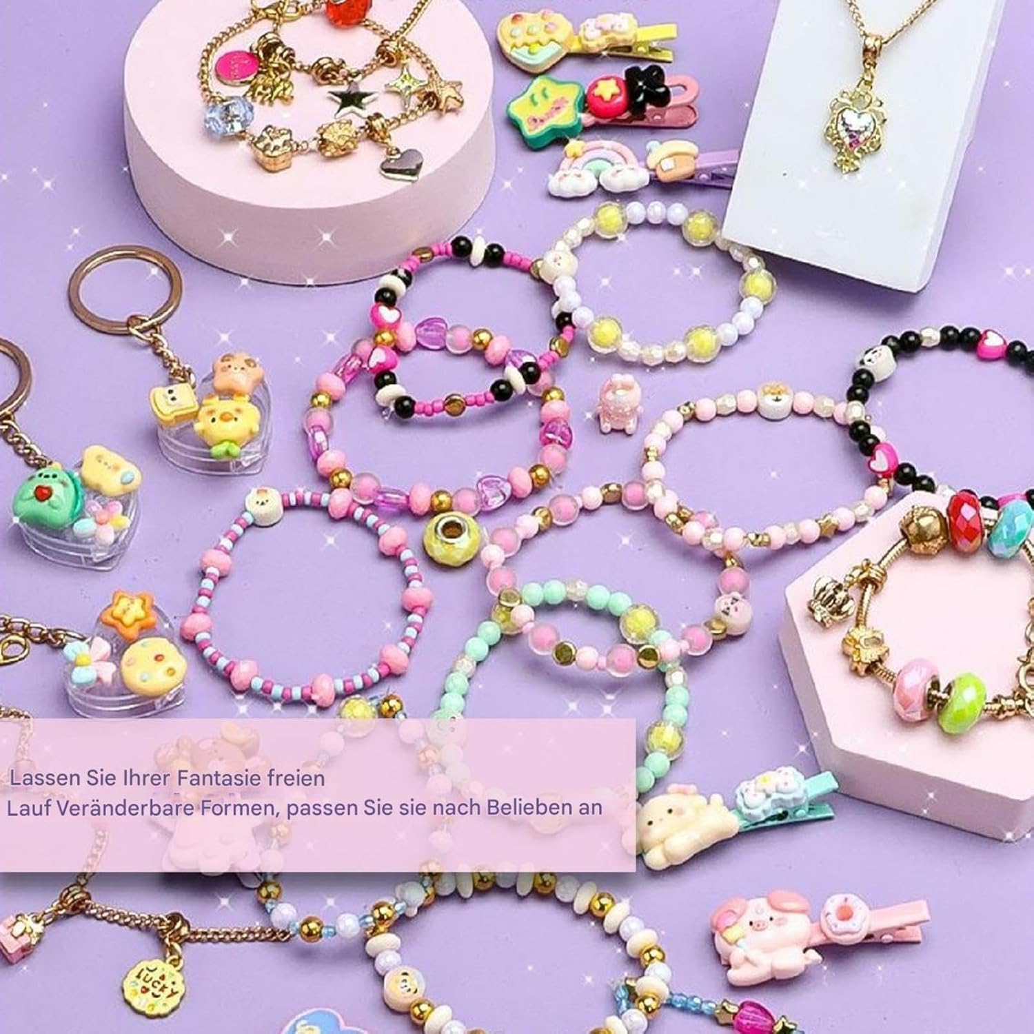 Viene fornito con un kit: il kit viene fornito con un portagioie incluso e numerosi accessori ricchi che aggiungono divertimento ancora più creativo. Questo set completo di bracciali permetterà al bambino di scoprire il suo potenziale artistico e di dare libero sfogo alla sua creatività Lascia correre l'immaginazione: incoraggia il tuo bambino a sviluppare il suo artista interiore con il nostro set di braccialetti con charm. Ti piacerà sperimentare colori, forme e motivi per creare un braccialetto unico perfetto per ogni occasione Bel regalo: questo set offre un'esperienza di rilegatura soddisfacente ed è adatto per feste, attività artigianali e altre occasioni, rendendolo un'ottima scelta regalo per trascorrere belle ore con la famiglia e gli amici Rafforza le abilità motorie fini: il nostro set di braccialetti con charm è uno strumento perfetto per aiutare a sviluppare le abilità e l'immaginazione della mano del bambino. Migliora la coordinazione dei colori e la creazione di modelli e consente ai bambini di intraprendere un viaggio educativo pieno di divertimento e apprendimento Giocattolo divertente: questo set di braccialetti con charm è ideale per stimolare l'immaginazione. Non solo promuove la creazione creativa di gioielli, ma include anche set e accessori per capelli, nonché un organizer con 6 cassetti per tutti i tuoi giocattoli giocosi