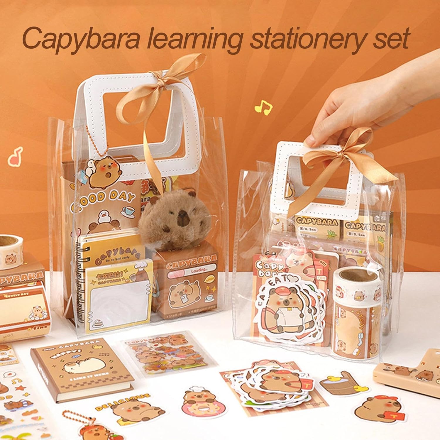 Cancelleria divertente: aggiungi divertimento alle tue forniture scolastiche quotidiane con il nostro set di cancelleria Capybara. Caratterizzato da un adorabile design capybara, aggiunge un tocco giocoso alla tua routine di studio. Vivi la creatività come prima Ispirate creatività e apprendimento: pieno di componenti versatili per educare e intrattenere, questo set di cancelleria Capybara ispira l'interesse per l'apprendimento, rendendo ogni sessione di prendere appunti o registrazione un percorso di infinite possibilità creative. Durabilità assicurata: realizzato solo con i migliori materiali, il set di cancelleria Capybara garantisce durata e funzionalità. La sua garanzia di qualità garantisce un uso a lungo termine, rendendolo uno strumento ideale per migliorare le capacità di scrittura. Perfetto per qualsiasi studente o professionista Regalo perfetto: questo set di cancelleria Capybara è un regalo premuroso, perfetto per ogni occasione. Il set combina perfettamente funzionalità e fascino estetico, rendendolo un ottimo regalo per studenti, bambini o chiunque apprezzi l'arte della scrittura. Ampia gamma di utilizzi: grazie alla sua adattabilità senza sforzo, questo set di cancelleria Capybara è perfetto per l'uso in aule, dormitori e case, rendendolo una scelta pratica per una vasta gamma di scenari. Che tu abbia bisogno di materiale scolastico o studio, questo set è qui per te