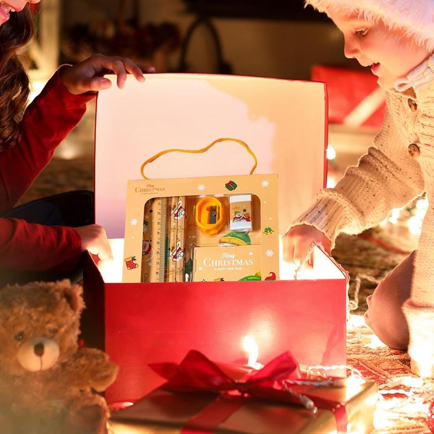 Creatività ispirata al Natale: libera la tua creatività in questa stagione delle feste con il nostro set di articoli di cancelleria scolastica. Caratterizzato da elementi natalizi e una forte atmosfera festosa, aggiunge un tocco di feste a qualsiasi attività, rendendolo perfetto per studenti o amici. Uso versatile: con le sue caratteristiche funzionali e festive, questo set di cancelleria scolastica di Natale è perfetto per una vasta gamma di occasioni: scuola, famiglia o lavoro. Gli studenti lo troveranno conveniente per le loro esigenze di scrittura durante il periodo natalizio, infondendo un tocco di atmosfera festiva al loro lavoro. Regalo creativo: dai un tocco unico e personale al tuo regalo di Natale con il nostro set di cancelleria scolastica. Sia pratico che decorativo, è una scelta intima e speciale da regalare a , colleghi o amici. Sicuro da usare: il nostro set di cancelleria per la scuola di Natale è realizzato con materiali di alta qualità e sicuri, che lo rendono ideale per gli adulti durante le festività. Garantisci attività al coperto sicure e piacevoli a scuola o a casa con questo ottimo prodotto Facilità di trasporto: sia in una borsa che in una borsa, le dimensioni compatte del set di cancelleria scolastica di Natale assicurano che possa essere facilmente trasportato ovunque e utilizzato in qualsiasi momento. Un must per coloro che apprezzano la comodità nella loro vita quotidiana