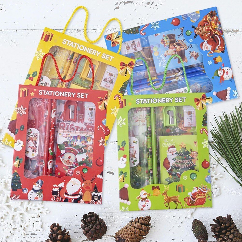 Educativo e divertente: stimola creatività, scrittura e l'apprendimento attraverso articoli di cancelleria colorati e a tema. Design festivo per le feste: il set di cancelleria a tema natalizio aggiunge divertimento ed entusiasmo alle attività scolastiche e alle feste. Perfetto per i bambini: ideale per le aule scolastiche dei bambini, come bomboniere e per lo scambio di regali durante le feste. Durevole e pratico: i materiali di alta qualità garantiscono un utilizzo duraturo a scuola, alle feste o a casa. Set completo 4 pezzi: include matita, temperino, gomma, righello e mini quaderno per tutte le esigenze di scrittura di base.