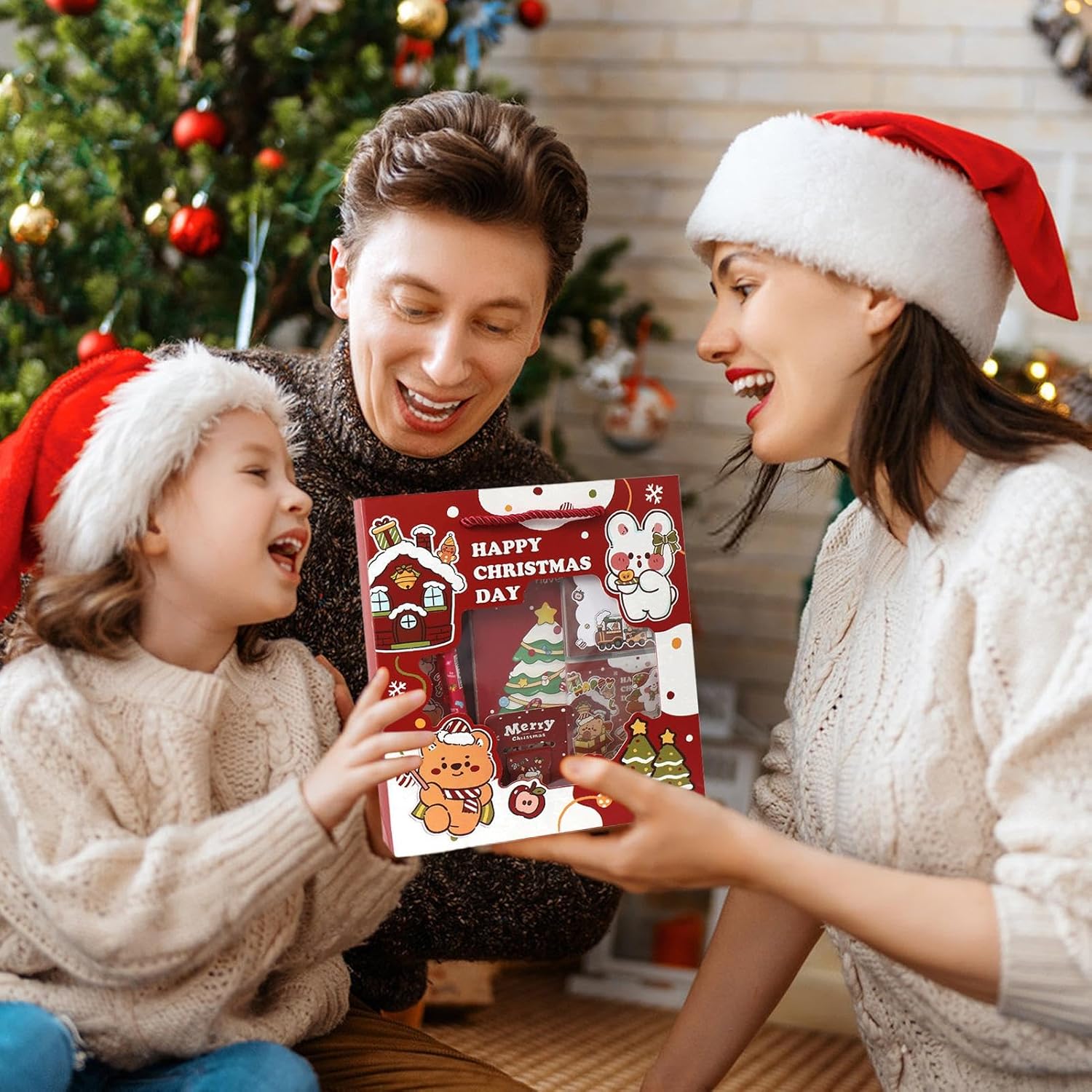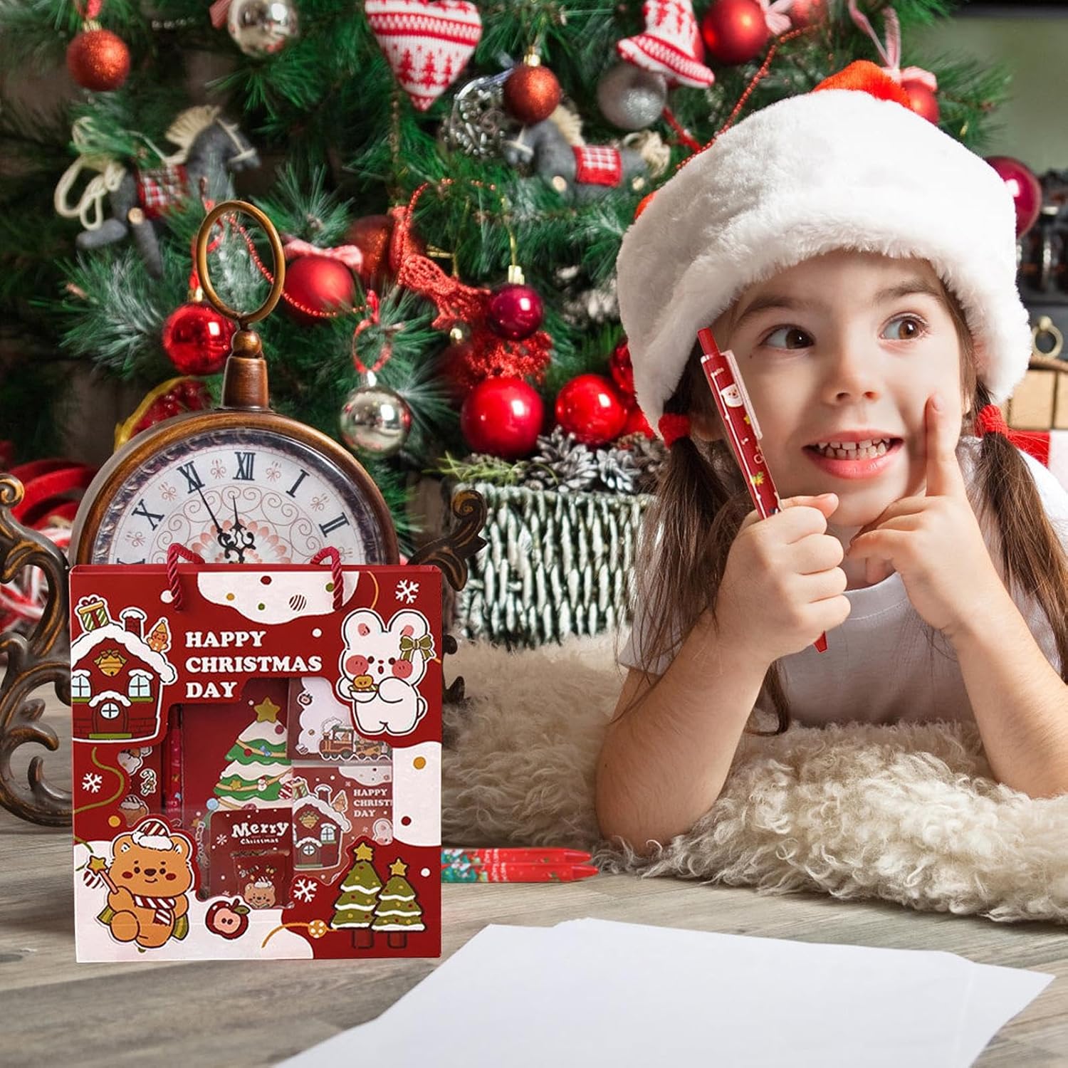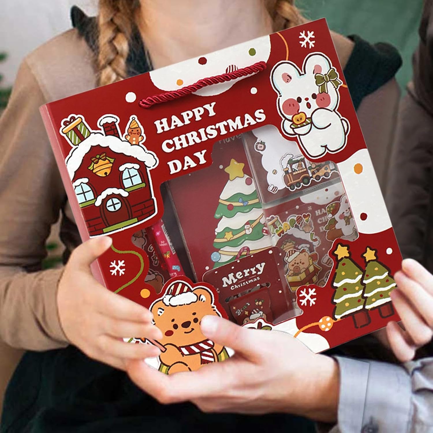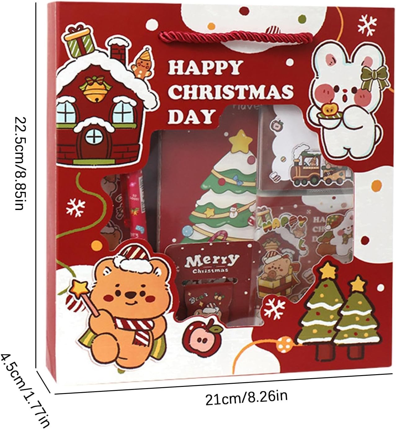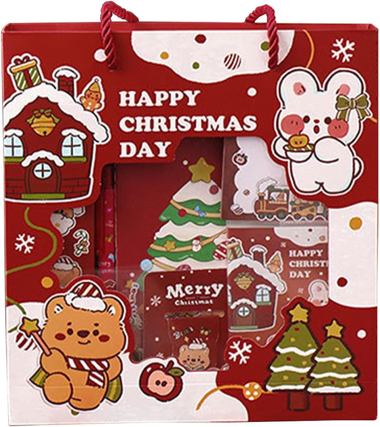 Diversi accessori: libera la tua creatività con un kit scolastico completo, tra cui 1 spilla, 1 taccuino e 1 segnalibro magnetico, accompagnato da una borsa regalo e 1 penna gel per tutte le tue esigenze Attraente stile cartone animato: disegni a cartoni animati tra cui, alberi con Babbo Natale, renne e altri modelli, creano un'atmosfera divertente e festosa per gli studenti durante il periodo natalizio Ampio utilizzo: migliora lo spirito delle vacanze con il nostro set di cancelleria per la scuola di Natale, un must per qualsiasi riunione. Da utilizzare come ricompense scolastiche o premi di carnevale, o diffondere gioia presentando come calza di Natale stuffers Design affidabile: garantisce sicurezza e longevità per le forniture scolastiche dei tuoi bambini con questo set di cancelleria per la scuola di Natale. Realizzato con materiali affidabili che resistono a danni e deformazioni, questo set è costruito per durare nel tempo Set di cancelleria attraente: progettato per catturare l'attenzione, il set di cancelleria per la scuola di Natale presenta oggetti festivi carini e colorati. Il suo aspetto attraente lo rende una scelta ideale per gli studenti che vogliono rimanere organizzati e attirare l'attenzione durante le attività a tema natalizio