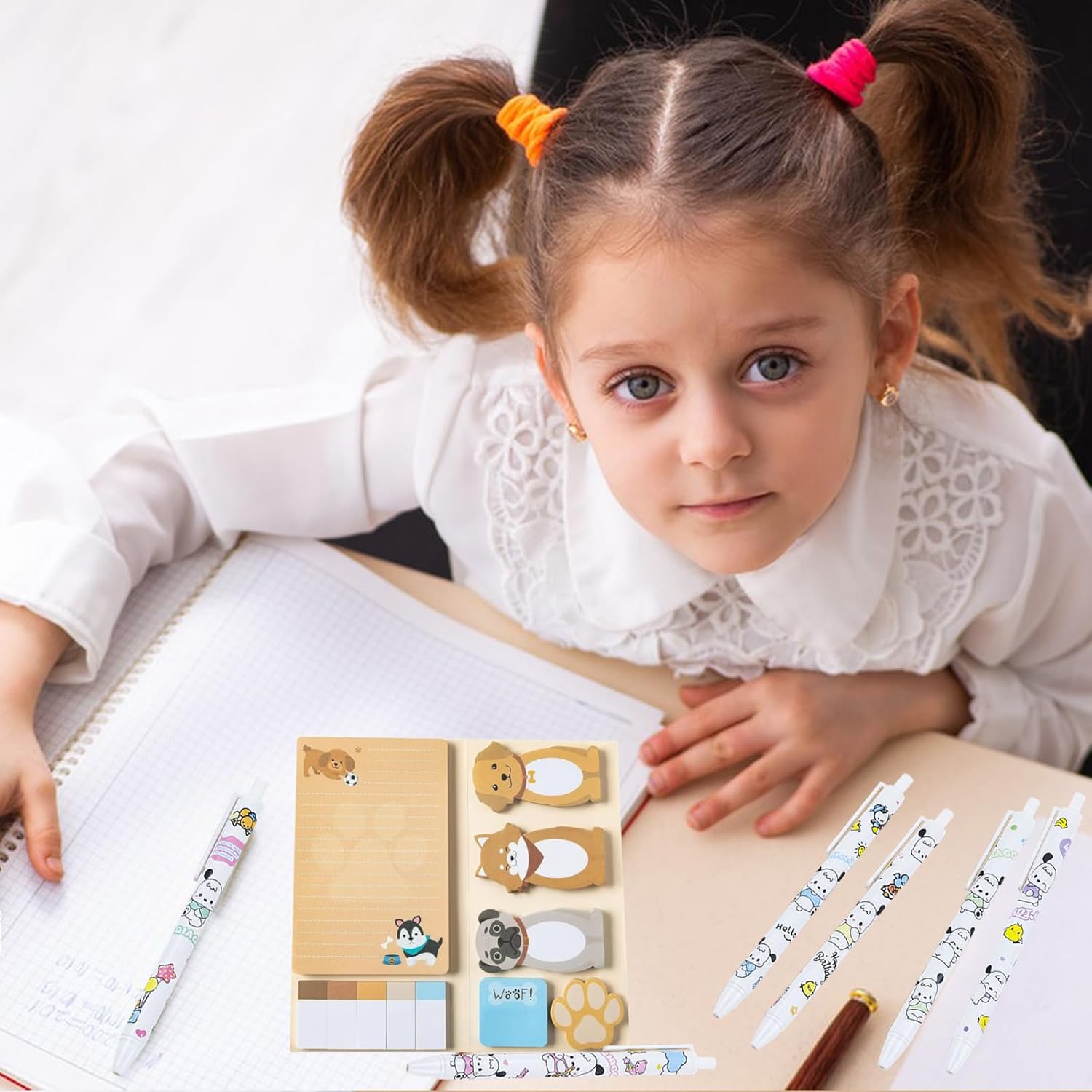 Set di cancelleria a tema cane: questo set di cancelleria a tema cane include 440 fogli di foglietti adesivi e 6 penne a tema cane (0,5 mm). Unisce funzionalità e piacere. Non solo fornisce pratici strumenti di scrittura, un'esperienza d'uso piacevole e soddisfa anche le tue esigenze di decorazione. Materiali di alta qualità: Realizzata con carta di alta qualità e con adesivo di alta qualità, la penna a inchiostro gel Dog Sticky Note è fissata saldamente e non lascia segni di colla quando viene rimossa, offrendo un'esperienza di scrittura fluida. Penna a inchiostro gel Dog Sticky Note da 0,5 mm con flusso di inchiostro stabile e uniforme, scrittura fluida, resistente a perdite e sbavature. Design unico: il nostro adorabile set di cancelleria a tema cane crea un'atmosfera fresca e vibrante. I foglietti adesivi con animali sono disponibili in 11 forme, ciascuna contenente 40 fogli. La penna a inchiostro Dog Sticky Note è dotata di un sistema di pressione per proteggere la punta. Il suo stile da cartone animato a forma di cane attirerà tutti gli sguardi. Usi multipli: questa scatola per appunti con design a forma di cane è ideale per molti usi, aiutandoti a rimanere organizzato e ad annotare le tue note importanti. Disponibile in diversi colori e dimensioni, è facile annotare, pianificare e ricordare i tuoi compiti importanti. Che si tratti di materiale scolastico, strumenti per ufficio, diari personali o semplicemente per disegnare e prendere appunti, questa scatola ha tutto ciò di cui hai bisogno per il lavoro e la creatività. Regalo ideale: questo set di cancelleria è un'ottima idea regalo per gli studenti, soprattutto per l'inizio dell'anno scolastico. Aggiunge un tocco di fantasia e creatività alla collezione di cancelleria di tutti ed è un regalo ideale per insegnanti, studenti, bambini o amici. Che si tratti di un compleanno, una festa, una laurea o un Natale, questa scatola è una scelta premurosa e pratica.
