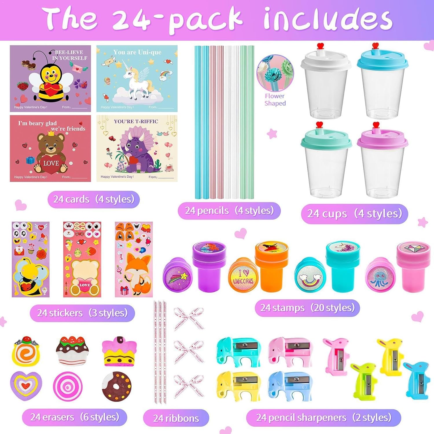 Regalo ideale per San Valentino: fai sorridere le persone che ami con il nostro sacchetto regalo per biglietti di San Valentino, con 24 "Happy Valentine's Day", 24 timbri, 24 biglietti di auguri, 24 adesivi, 24 tazze, 24 temperamatite, 24 gomme e 24 matite. Mostra quanto ti interessa e diffondilo in questo San Valentino. Fascino delle feste: porta il giorno di San Valentino con il nostro sacchetto regalo con 20 motivi stampati, matite per fiori macaron, gomme a forma di cuore e adesivi. Preparati ad aggiungere un tocco festivo e divertente Garantisce sicurezza e durata: l'uso del sacchetto regalo sicuro e riutilizzabile fornito con questi biglietti di San Valentino non solo garantisce la sicurezza e la durata di, ma favorisce anche il rispetto dell'ambiente. Ampia applicazione: perfetto per scambi di regali, regali di San Valentino per aule, feste di San Valentino e persino regali di Natale. Regalo eccezionale: ideale per San Valentino, Natale, compleanno e anno, questa borsa è ideale per bambini, ragazzi e ragazze, rendendo l'offerta di regali facile e piacevole