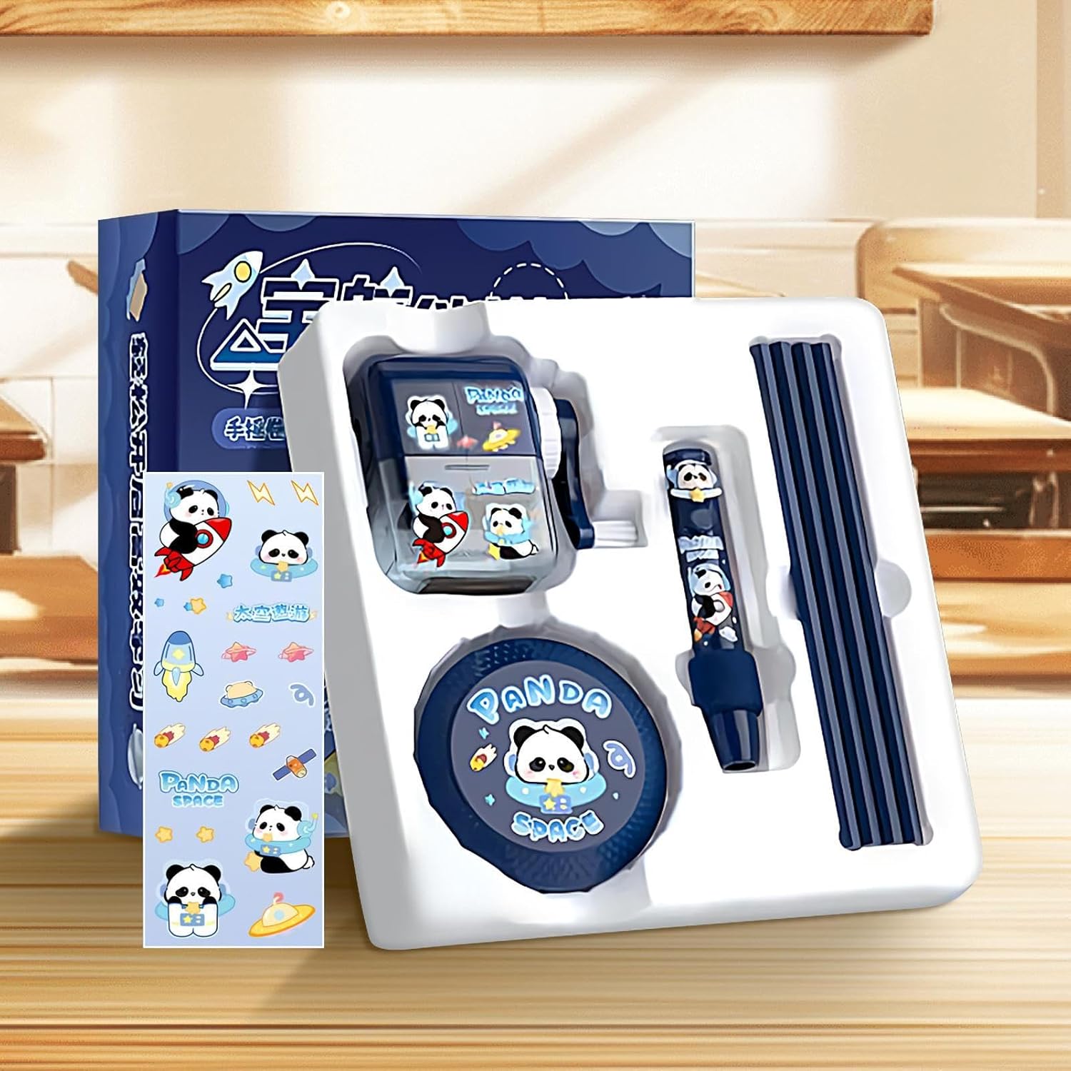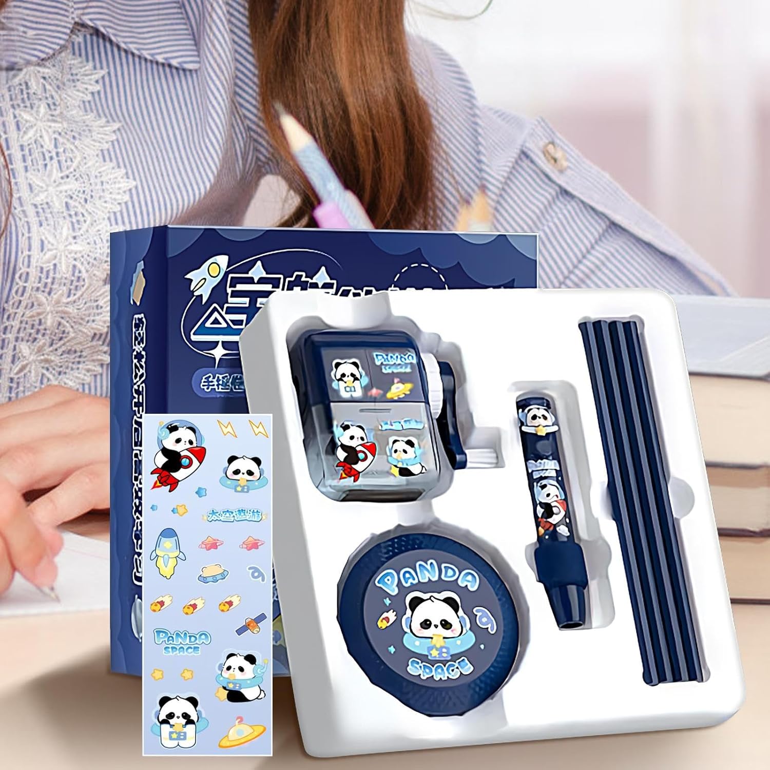 Kit Completo per Scrivania: Aspirabriciole elettrico per tenere pulito lo spazio di lavoro durante la scrittura e temperare matite, completo di gomme morbide e temperamatite a manovella per un uso pratico quotidiano Massima Igiene: L'aspiratore elettrico elimina efficacemente i frammenti di da cancellare, favorendo un ambiente di studio piacevole che incrementa l'efficienza e si adatta praticamente a tutti i tipi di matite Sicurezza Garantita: Costruzione robusta in PP resiste all'uso frequente mantenendo la qualità nel , affidabilità costante per serenità duratura nell'impiego quotidiano Dettagli Preziosi: Kit cancelleria pensato per bambini e ragazzi, trasmette affetto durante compleanni, feste e Natale grazie a design delizioso e presentazione ricercata che porta gioia Design Personaggi : La combinazione di adesivi con capibara e panda crea un'atmosfera coinvolgente che aumenta l'interesse per l'apprendimento nei bambini