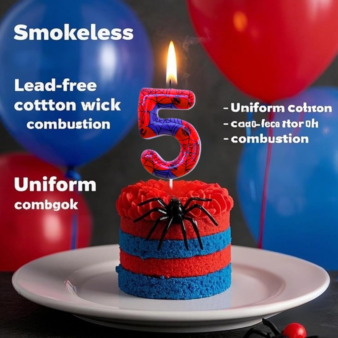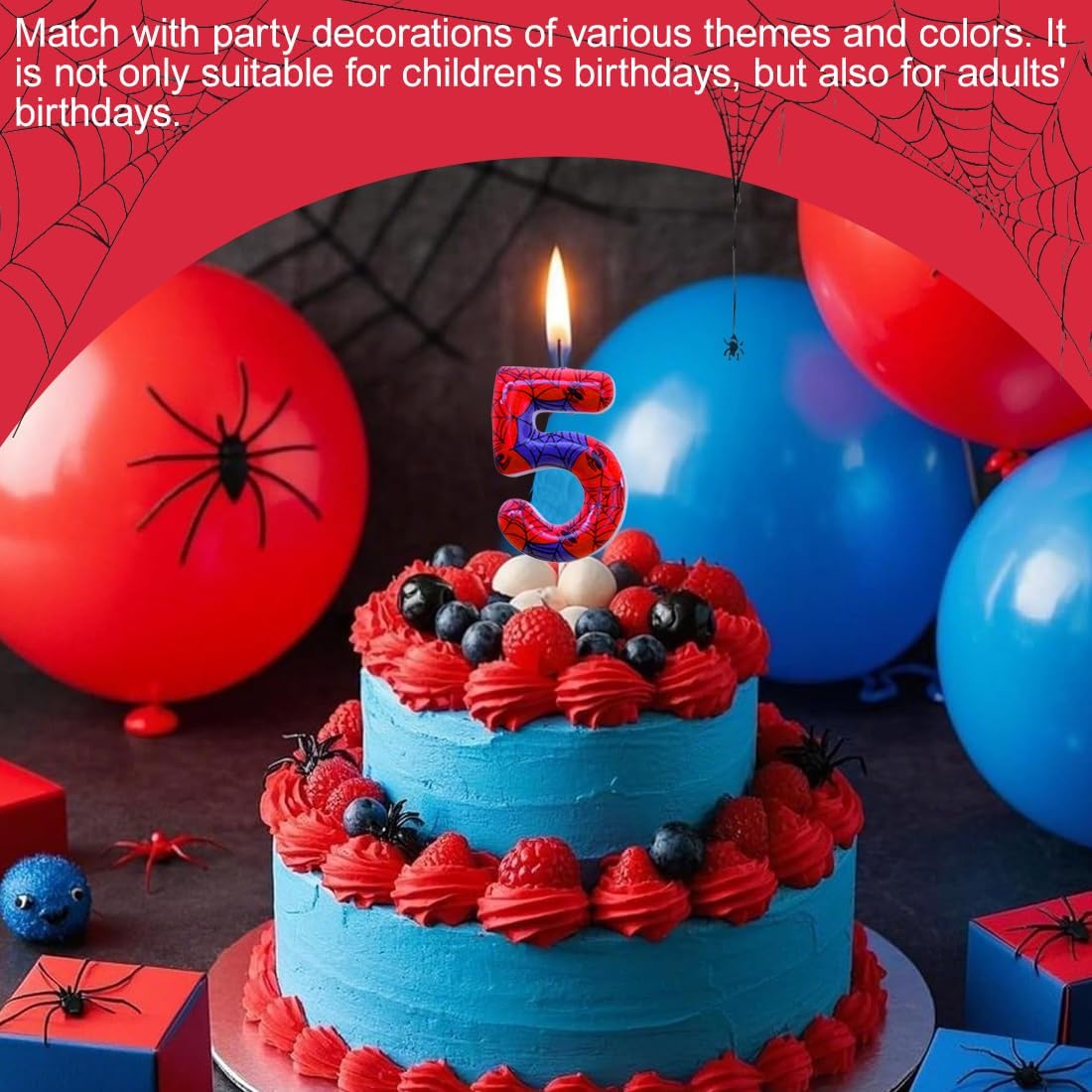 Set di candeline di compleanno a forma di ragno per informazioni sulla torta: riceverai 1 candela con numeri 5 con 12 candele rosse a ragnatela. Si tratta di un set di candele di grandi dimensioni, l'altezza della candela è di circa 9.5 cm/4,33 pollici (il corpo della candela è di circa 6 cm/2,36 pollici), le candele a ragnatela rossa sono di circa 9 cm/3,54 pollici. Candele di buon compleanno Ampia applicazione : Incredibili decorazioni per torte con candele, la prima cosa che attira l'attenzione è una nuova combinazione di rosso e blu, che dà alle persone un senso visivo molto forte. Candele di compleanno dal design unico con rete, dimensioni adeguate come decorazione per torte per la maggior parte delle torte di compleanno a tema Spider. Candele con numeri rosso blu con candele a ragnatela Materiale: queste candeline per torta di compleanno sono realizzate con cera alimentare di alta qualità, atossica e insapore. Le candeline per torta sono sicure da usare e facili da accendere, riutilizzabili. Sono senza fumo e non gocciolano. Puoi riposarti e metterli sulla tua torta di compleanno. Set di decorazioni per torta con candele per il 1° compleanno Diversi usi: set di decorazioni per torta con candele numero 5, stavano benissimo sulla tua torta. Le candeline numerate e le candeline rosse a rete per torta possono essere utilizzate insieme o separatamente. Dopo aver utilizzato la candela di compleanno, devi solo tagliare la parte superiore della candela. possono essere facilmente conservati e riutilizzati per il prossimo utilizzo, economici e raffinati Regalo per il 5° compleanno: il set di toppers per torta personalizzato è l'intero set di candele abbinato a una combinazione di colori rosso e blu, accompagnato da uno stile carino e divertente a ragnatela, ideale non solo per decorare torte e cupcake, ma anche giocattoli per bambini o decorazioni per la casa. È anche il regalo per una festa o un regalo di compleanno per feste a tema ragno.