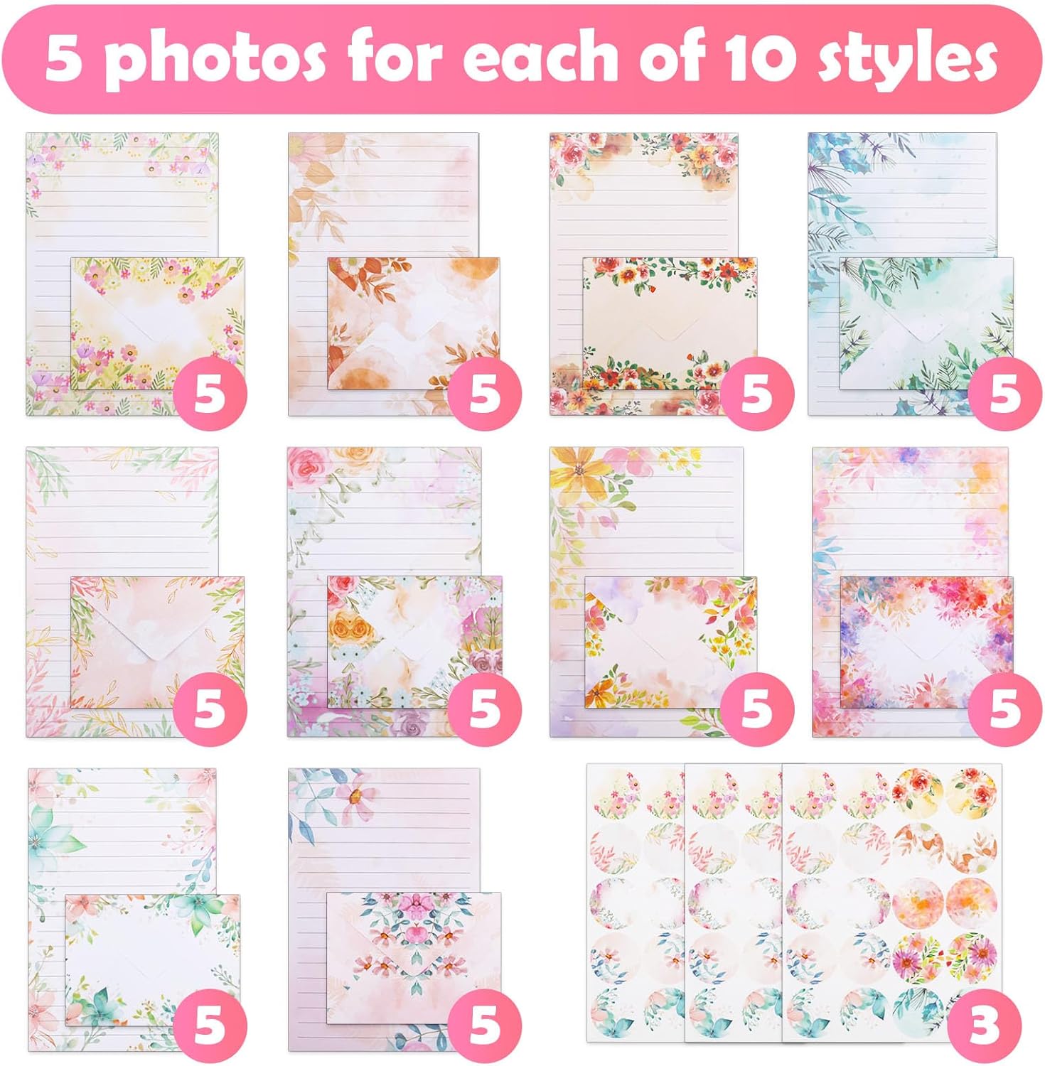 Set variegato: Include 10 set di carta da lettera con diversi stili di buste, ciascuno composto da 5 fogli di carta e 5 buste coordinate – ideale per ogni occasione! Materiale di alta qualità: Realizzato in carta ecologica e non tossica, durevole e piacevole da scrivere. Goditi un'esperienza di scrittura fluida con ogni nota. Regalo ideale: Perfetto per buoni regalo, inviti e biglietti di auguri! Sorprendi amici e familiari in occasioni di compleanni o festività con questo elegante set di carta da lettera. Regalo ideale: Perfetto per buoni regalo, inviti e biglietti di auguri! Sorprendi amici e familiari in occasioni di compleanni o festività con questo elegante set di carta da lettera. Tocco personale: Esprimi i tuoi sentimenti con la nostra carta da lettera rigata. Ideale per lettere di ringraziamento, lettere d'amore o poesie – aggiungi una profondità emotiva ai tuoi messaggi!