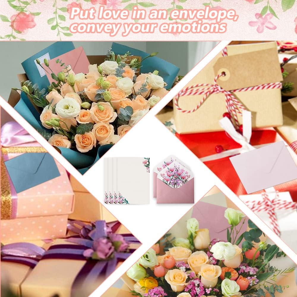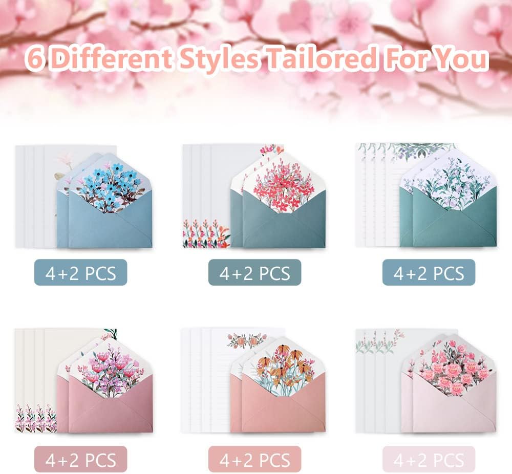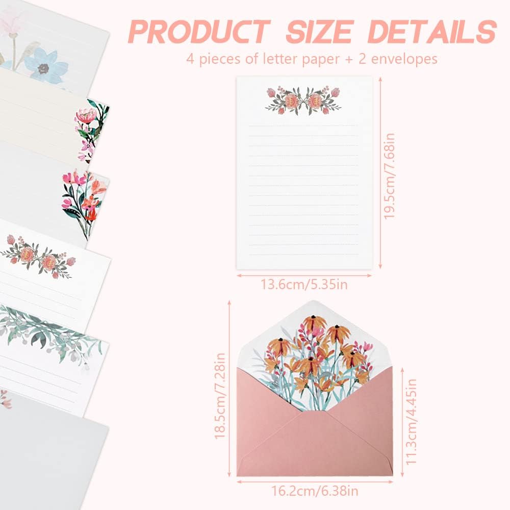 💌Carta da lettere di alta qualità: la carta da lettere è realizzata in pasta di legno naturale, non tossica e rispettosa dell'ambiente. La carta è liscia e piacevole al tatto. I bordi presentano alcune decorazioni e il supporto leggermente colorato della carta da lettere consente una calligrafia o una scrittura chiara ed elegante di grande effetto. 💌Compatibile con le stampanti a getto d'inchiostro: con la nostra carta intestata potete scrivere a mano per esprimere le vostre emozioni o utilizzare la vostra stampante per stampare il testo che verrà stampato sulla carta intestata, la nostra carta intestata è compatibile con le stampanti a getto d'inchiostro. 💌6 diversi bellissimi motivi: i nostri set di buste intestate sono disponibili in 6 diversi temi floreali, ognuno dei quali mostra la bellezza naturale di un fiore diverso, con disegni floreali unici per rendere la vostra carta intestata ancora più attraente. 💌Set di buste: riceverete un totale di 6 diversi temi floreali, ciascuno con 4 buste e 2 carte intestate. I due elementi vengono utilizzati insieme per conferire alle lettere un aspetto sofisticato. Le buste hanno dimensioni di 16,2 x 11,3 cm e la quantità e il formato sono sufficienti per le vostre esigenze quotidiane. 💌Trasmettete i vostri sentimenti e desideri: il nostro set di carta intestata può essere utilizzato per la corrispondenza, ecc. e la carta intestata può essere stampata con una stampante a getto d'inchiostro. Adatto per lettere, manoscritti, decorazioni orientali, inviti d'affari, inviti a feste, lettere di auguri, ecc. Un ottimo modo per trasmettere i propri sentimenti e desideri alla famiglia o agli amici.