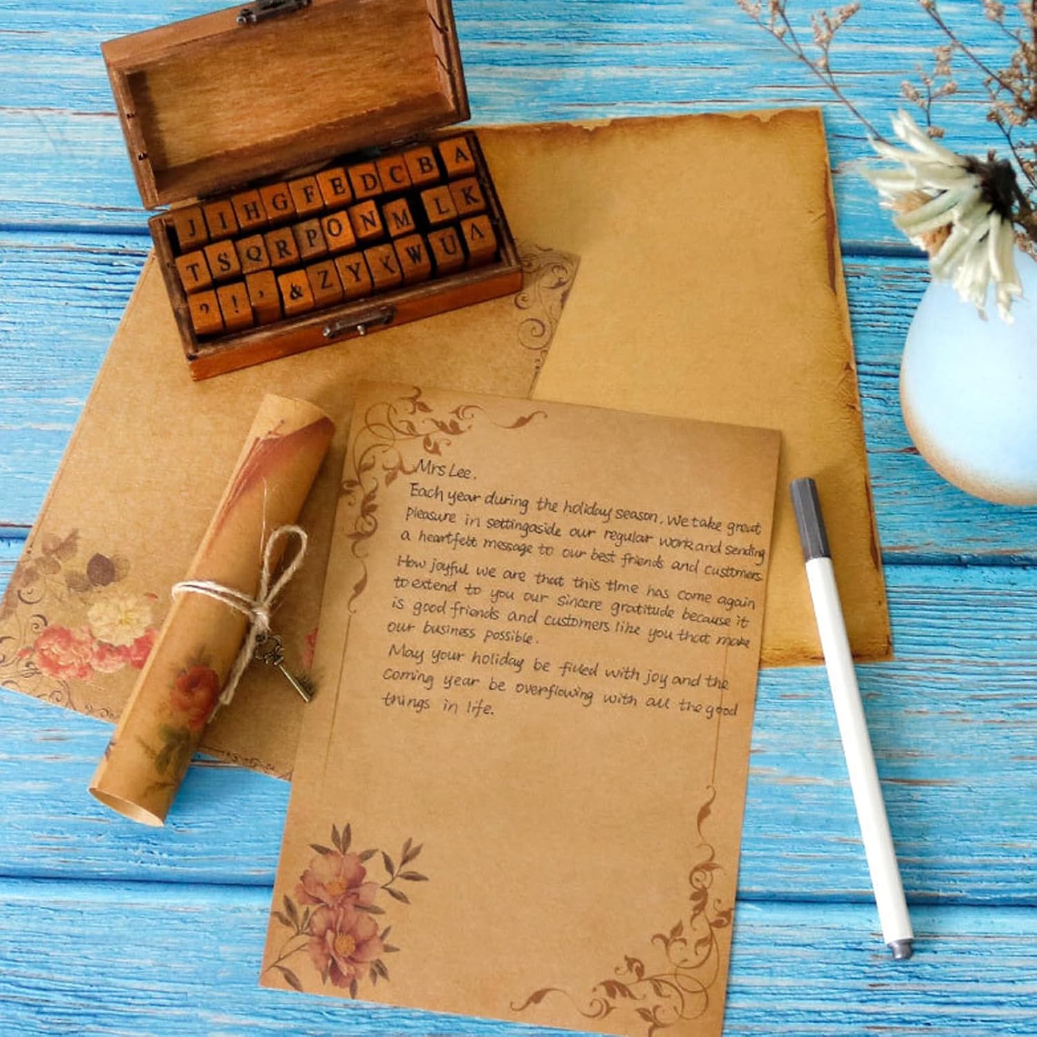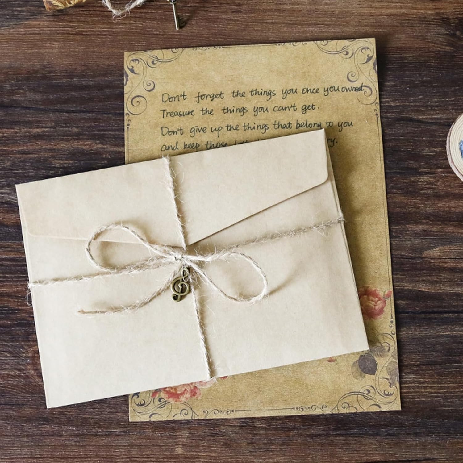 Set di lusso tutto in uno: contiene 16 fogli di lettere rosa + 8 buste testurizzate + 8 chiavi in ottone antico + 8 corde di canapa naturali + 8 adesivi adesivi sigillati in cera - non è necessario alcun acquisto aggiuntivo per dare libero sfogo alla creatività Autentica estetica vintage: carta pergamena e buste con motivi floreali del 15° secolo, 8 adesivi con sigillo intrecciati garantiscono un'eleganza eccezionale Alta qualità ed ecologica: la carta riciclata certificata FSC è resistente al sanguinamento dell'inchiostro; le buste sono realizzate in carta kraft rinforzata con stampe resistenti allo sbiadimento, ideali per conservare ricordi scritti a mano per decenni Un maestro multi-scenario: perfetto per inviti a matrimoni/feste, romantiche lettere d'amore, scrapbooking, regali per la festa della mamma/San Valentino e note riservate sigillate con adesivi in cera Crea emozioni senza sforzo: basta scrivere, piegare, legare con una corda/portachiavi e chiudere con adesivi di cera, così si crea una corrispondenza di qualità museale in 3 passaggi. Pronta da regalo in scatola in lamina