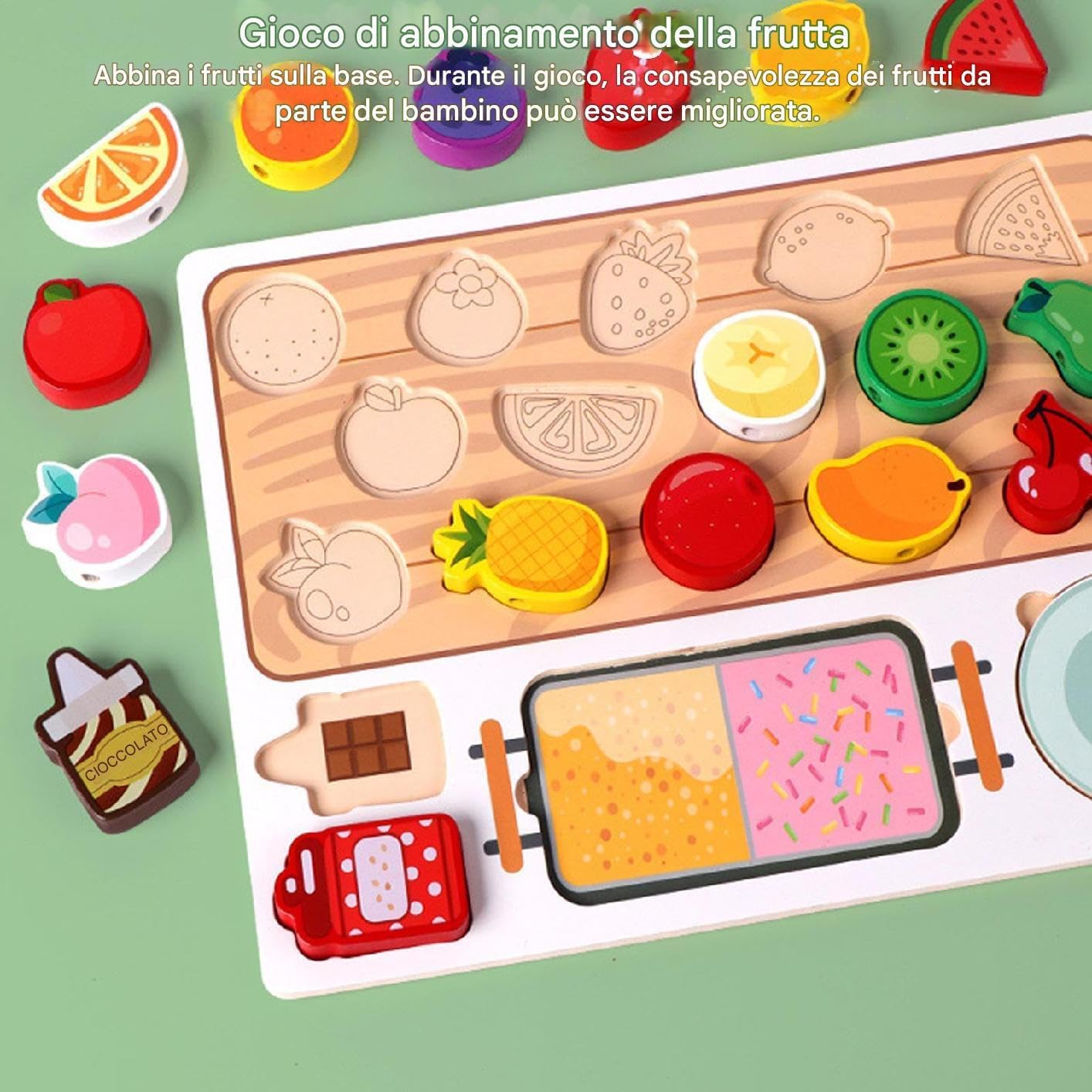 Materiale di alta qualità: realizzato con materiale di legno sicuro di alta qualità, il nostro giocattolo di frutta in legno è progettato per essere rispettoso 'ambiente, garantendo sicurezza e durata per un uso duraturo Miglioramento delle abilità pratiche: con attività che esercitano le capacità motorie e migliorano la coordinazione occhio-mano, questo giocattolo educativo è un ottimo modo per migliorare lo sviluppo cognitivo e le abilità pratiche Design divertente: questo giocattolo di frutta in legno ha un design creativo unico con frutti canditi simulati che migliorano l'attrattiva del giocattolo, dando ai bambini l'opportunità di esplorare diversi scenari Divertente gioco prescolare: rafforza il attraverso il gioco interattivo con il nostro giocattolo di frutta in legno. Divertiti con giochi didattici semplici e divertenti che ricordi duraturi e aumentano l'interazione genitore-figlio Regalo straordinario: migliora l'eccitazione delle occasioni speciali con il nostro giocattolo in legno con frutta, fornendo una miscela unica di educazione e intrattenimento perfetta per le presentazioni e che diventerà sicuramente dei preferiti