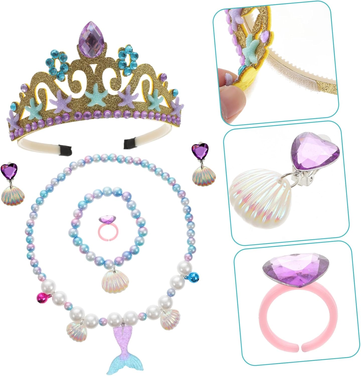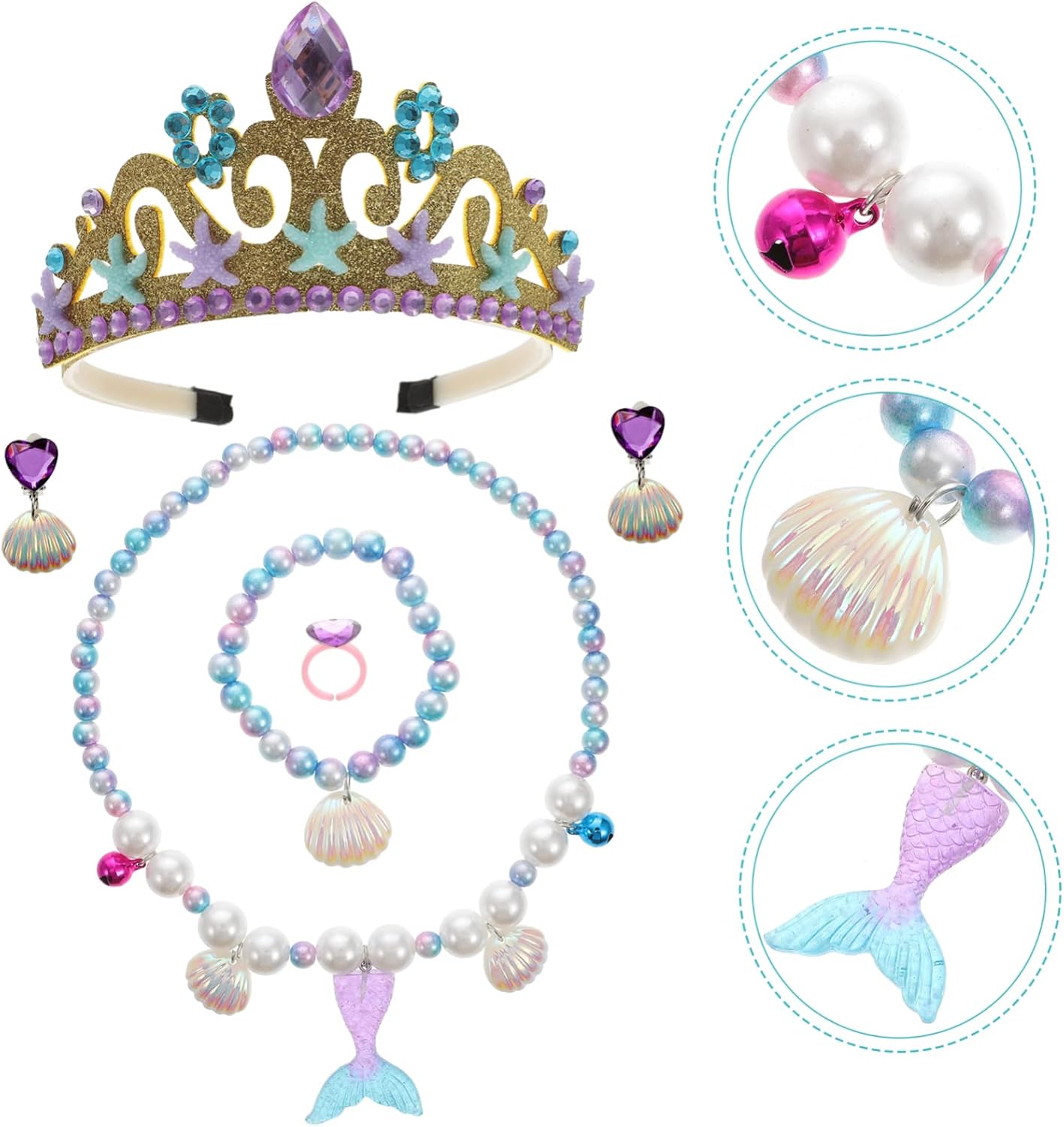 lista dei pacchetti 1 x tiara 1 x braccialetto 1 x collana 1 x anello 1 x paio di orecchini caratteristiche - materiale: accessorio decorativo per costume da ragazza in conchiglia - è ora di crearne tuo per la festa in , che lascerà a te e alla tua bambina un indimenticabile della festa, interessante oggetto di scena per cosplay. - gli oggetti di scena sono realizzati principalmente in materiale decorativo per copricapi, durevole e duraturo. - design modellante per sirene per gli oggetti di scena, aggiungerà un'atmosfera più tuo costume da sirena per ragazza. - selezionato bene e, gli oggetti di scena non sono facili da strappare o rompere. - questi accessori per costumi sono adatti per feste in costume, feste di carnevale e alcuni festival per uso decorativo di costumi cosplay da sirena. informazioni sulla merce costume da sirena per ragazza hanno un design delicato, per festival e carnevale. Gli accessori per costumi da sirena rendono l'atmosfera della festa. Decorazioni per il copricapo vuoi comprare degli accessori per costumi per il tuo ? alcuni oggetti di scena creativi e unici a tema sirena per te. Accessorio per costume da sirena per ragazza, tuo figlio sarà speciale e accattivante. Accessorio per cosplay da sirena per ragazza di cui sono fatti questi oggetti di scena, che possono resistere all'usura duratura