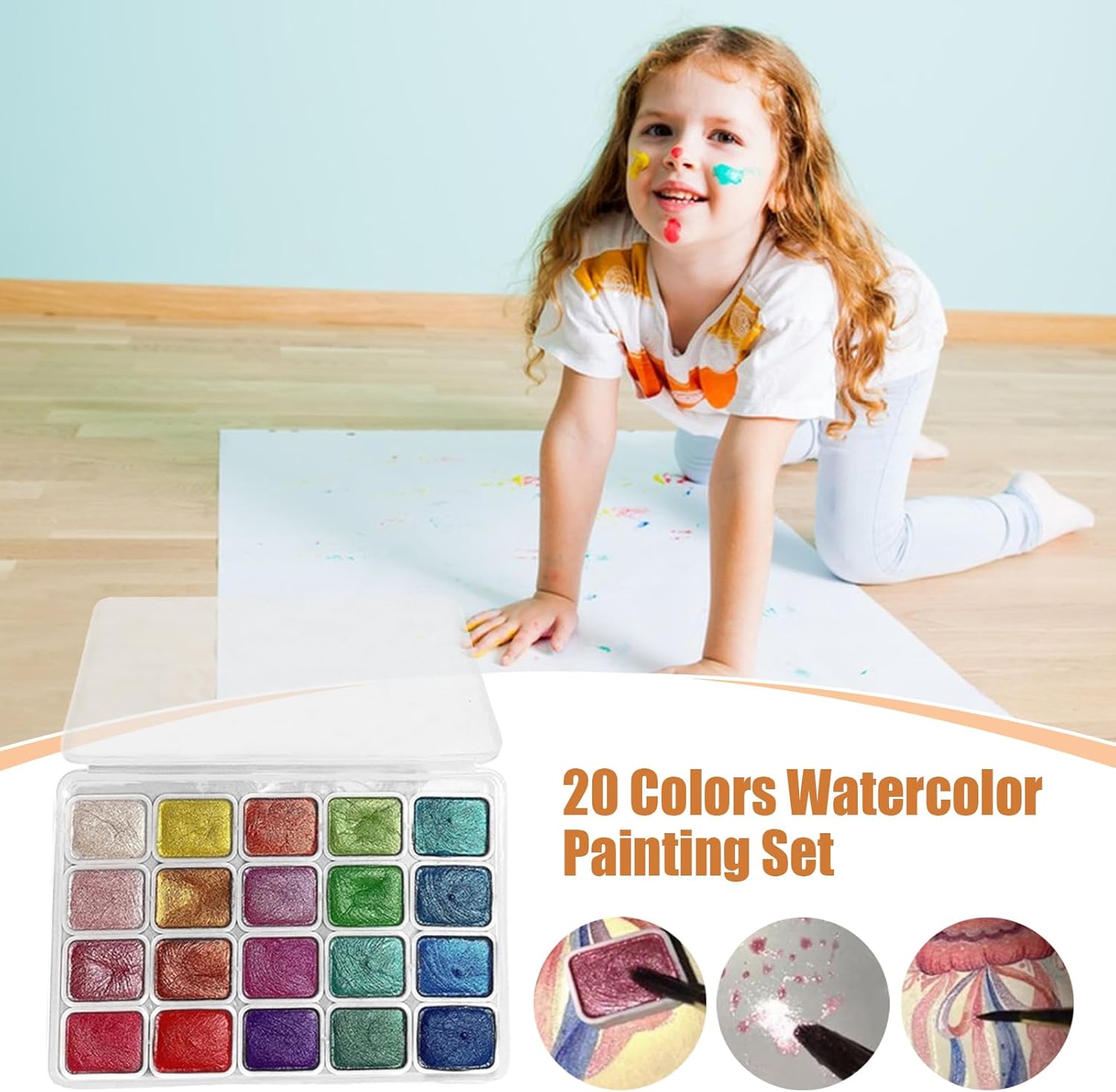 Tavolozza Illustrativa: 20 colori accuratamente selezionati per supportare progetti creativi in illustrazione, decorazione e tutte le forme d'arte con adattabilità unica Espressione Cromatica Viva: Esplora una tavolozza vibrante con effetti glitter che valorizzano l'arte visiva, offrendo eccellente resa cromatica e abilità nella creazione di design multilivello per migliorare con facilità le tue opere creative. Scelta Condivisa Creativa: La confezione completa di accessori facilita attività artistiche di gruppo, consentendo a più persone di creare progetti pittorici senza difficoltà Partner artistico: Set acquarelli leggero progettato per uso esterno, con compartimenti resistenti e struttura antiperdite, facilitando trasporto e ripostiglio durante la pittura all'aria aperta Compagno Creativo: Facilita journaling e creazione di biglietti con applicazione a secco o umido, offre compatibilità ottimizzata con carta e stoffa rendendolo strumento essenziale per ogni
