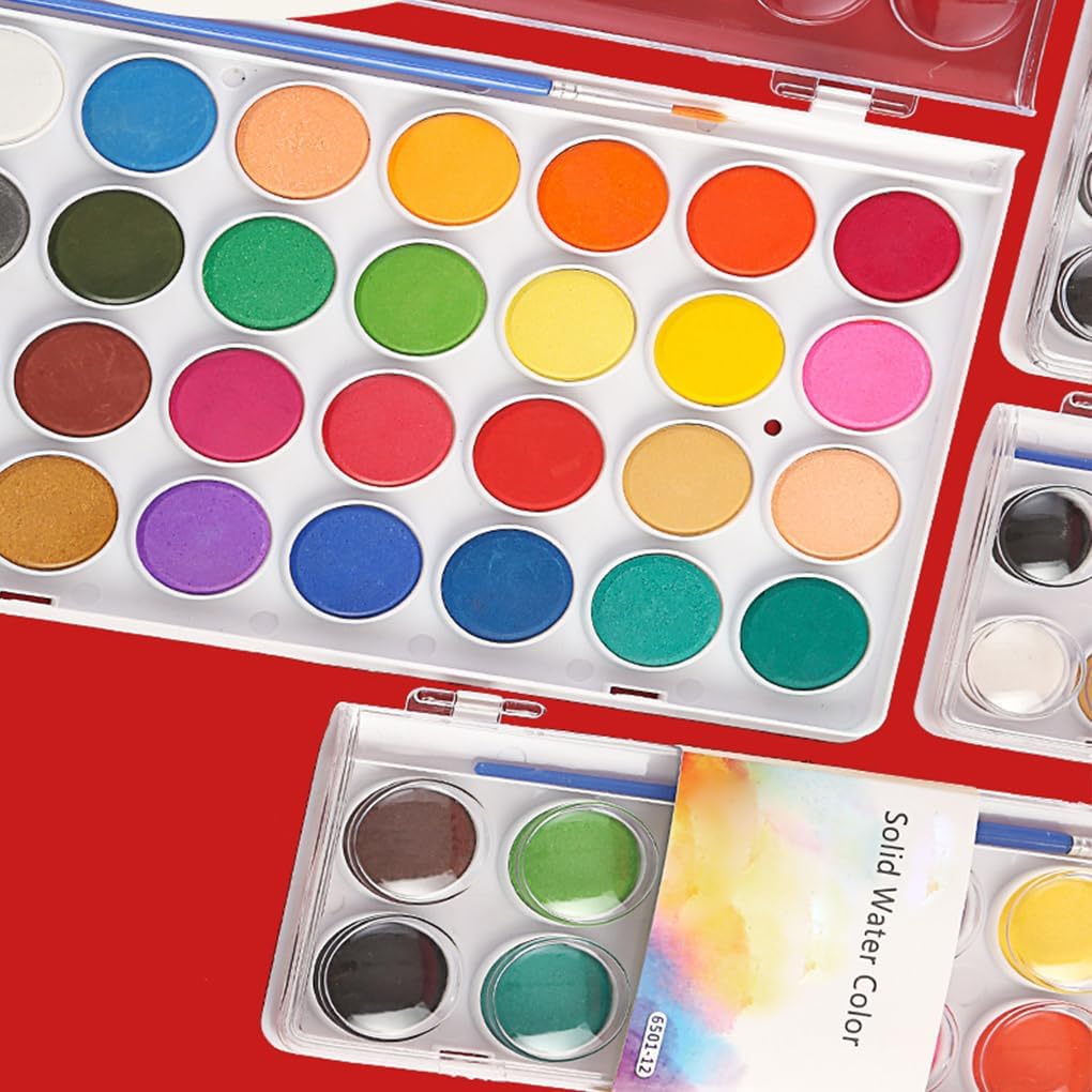 Set di acquerelli colorati: contiene colori ricchi e vivaci, pennelli e tavolozze di qualità, che ispirano la creatività dei bambini Funzionamento conveniente: gli acquerelli sono facili da prendere, i colori sono uniformi e facili da mescolare, il design lavabile semplifica il processo creativo, il design portatile è facile da trasportare durante il viaggio Materiale sicuro: realizzato con materiali di qualità, puoi creare in tutta tranquillità Ampiamente applicabile: adatto a lezioni d'arte, riunioni, scuole e famiglie, adatto sia ad adulti che a bambini, esplorando il fascino degli acquerelli Regalo creativo: la pittura aiuta a sviluppare il cervello e l'immaginazione dei bambini, il set di acquerelli è il regalo perfetto per ispirare la creatività dei bambini