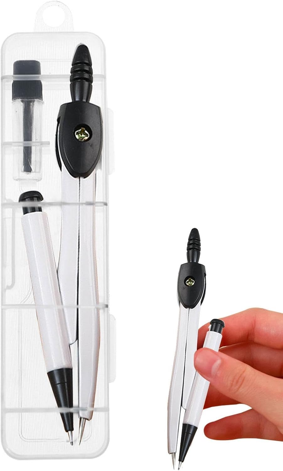 Uso antiscivolo: dotato di un manico antiscivolo per un uso facile e più comodo, questo set da disegno garantisce precisione. Il suo design antiscivolo impedisce lo scivolamento per misurazioni precise. Design multiuso: eleva il tuo gioco di disegno con questo versatile set di bussole da disegno. Con molteplici funzioni, è perfetto per lezioni di geometria, progettazione architettonica, redazione, costruzione e altro ancora. Adatto a tutti i livelli, dai principianti ai professionisti. Lunga durata: questo set di bussole da disegno è realizzato in polipropilene di alta qualità che dura a lungo e impermeabilizza efficacemente le bussole. Puoi riutilizzarli per vari progetti senza preoccuparti di ruggine o danni. Facile da trasportare: questo set di bussole da disegno è facile da trasportare e trasportare, poiché viene utilizzato in una scatola rigida trasparente che protegge gli strumenti da danni e consente di vedere chiaramente il contenuto. La scatola è compatta e leggera, quindi puoi inserirla nello zaino. Semplice da usare: migliora la tua esperienza di disegno con facilità utilizzando questo set di compasso. Con la sua funzione semplice da usare, sostituisci la penna come preferisci con un nucleo di piombo da 0,7 mm e un nucleo di ricambio incluso nella confezione.