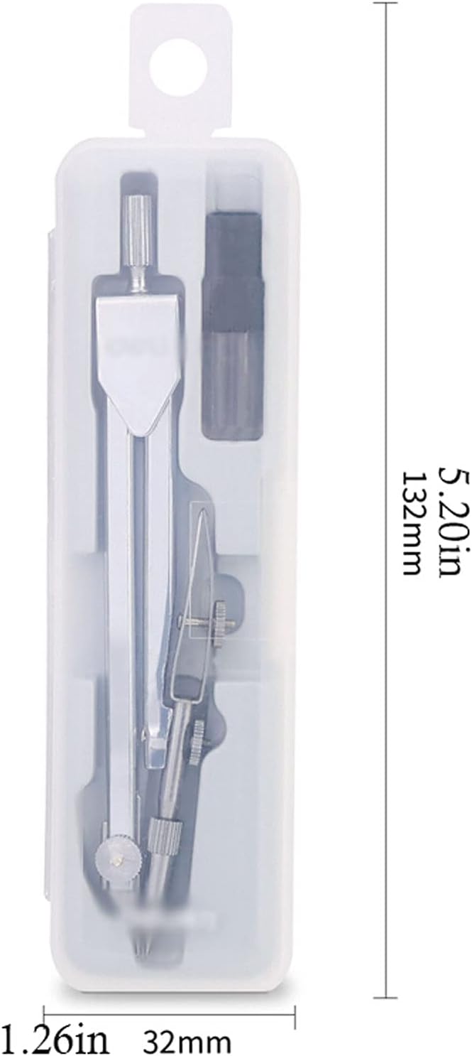 Un set di bussole in metallo, scatola di plastica, facile da trasportare. Esistono sei stili di compassi matematici, le dimensioni sono 6,89*2,76 pollici, 5,03*1,02*0,31 pollici, 1,26*5,20 pollici, 1,77*6,85 pollici, 1,77*6,30 pollici. Il kit geometrico contiene nucleo della penna, disegno liscio, alto contenuto di carbonio e non facile da rompere. Il design dall'aspetto metallico, alla moda e bello, soddisfa la tua visione esigente. Il materiale metallico ha un'elevata resistenza, una buona tenacità e una sensazione di mano confortevole.