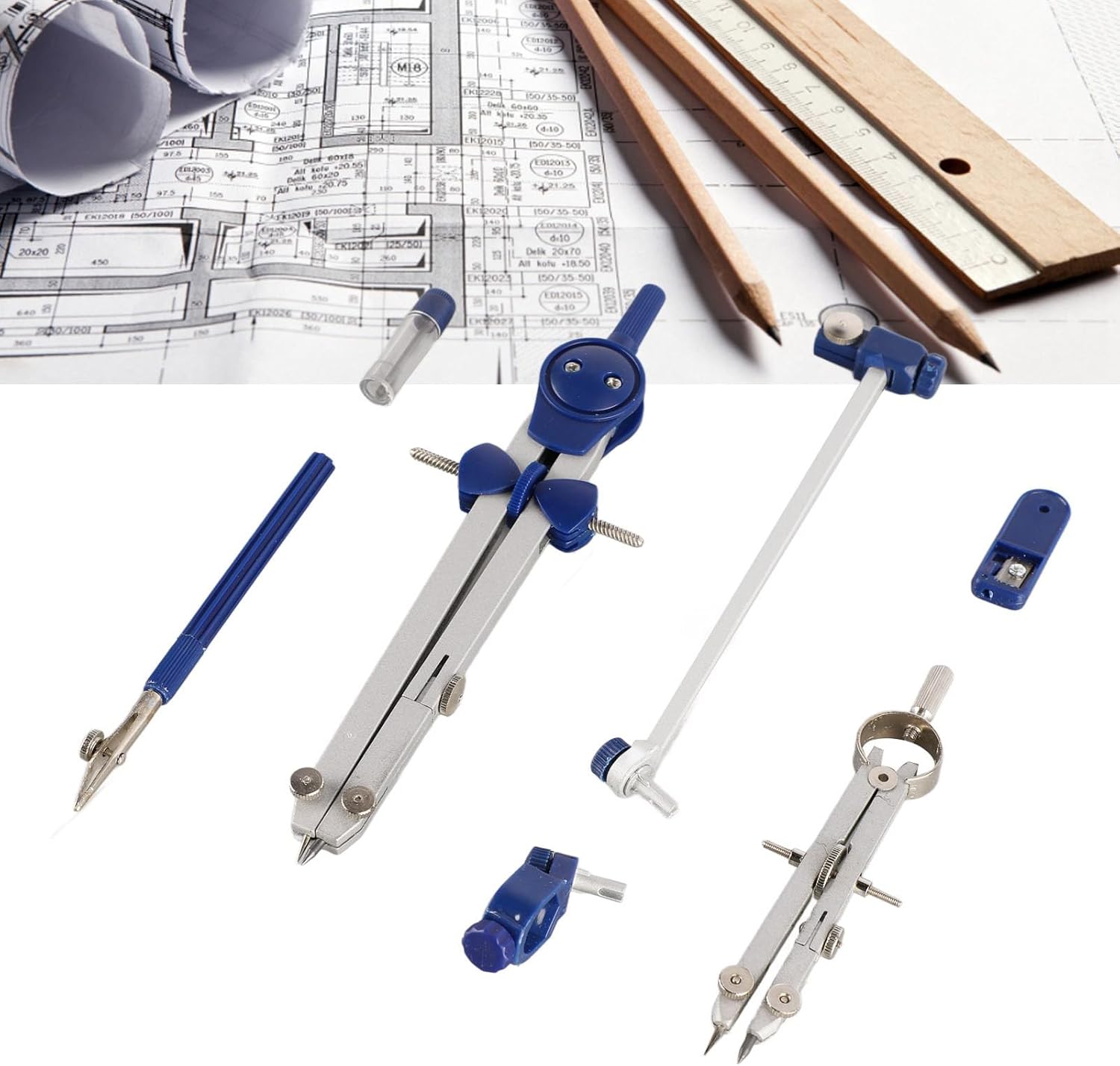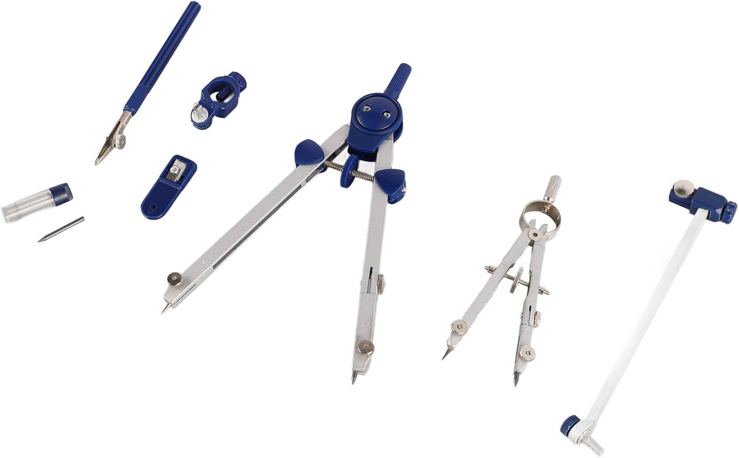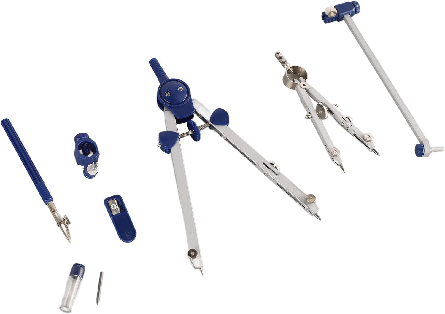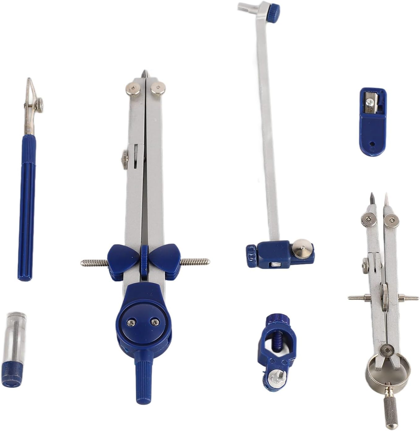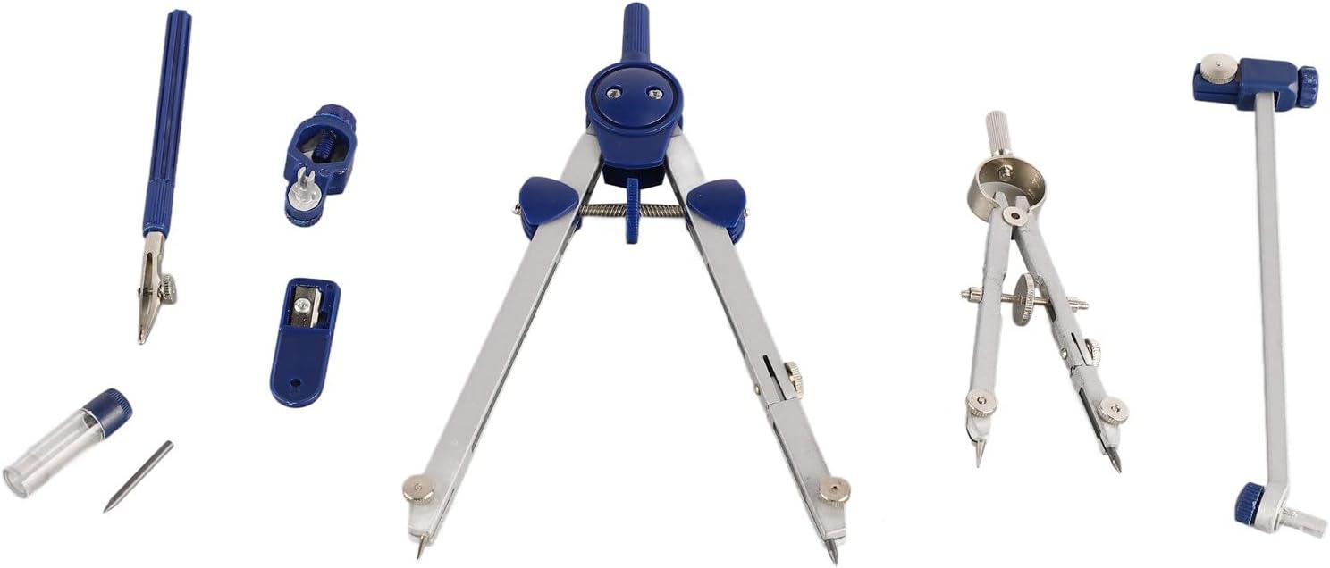 [Uso versatile] Adatto per varie applicazioni come disegni architettonici, progetti ingegneristici, progettazione meccanica e costruzione. Materiale: realizzato in resistente lega di zinco, questo set di geometria matematica è adatto a tutti i livelli di utenti. [Fascio di estensione] Il set di bussole matematiche viene fornito con una trave di estensione per sfide più grandi e più difficili nella classe di geometria e nel disegno. [Bussole] Questo set di bussole include 2 bussole professionali di diverse dimensioni, per esigenze di apprendimento matematico e disegno. [Conservazione infrangibile] Il set di bussole da disegno è ben confezionato in una scatola infrangibile per un facile trasporto e organizzazione.