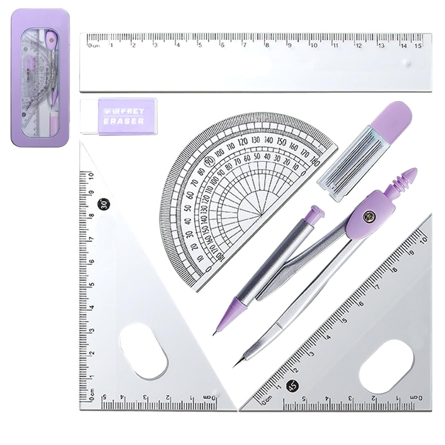 Precisione migliorata: il nostro set di geometria progettato per la precisione e la creatività e include strumenti di alta qualità adatti a diverse esigenze di disegno. Ideale per gli studenti che vogliono migliorare le proprie abilità di disegno Multifunzione: dotato di una serie di strumenti multifunzionali e altri strumenti di disegno essenziali, questo set offre un'esperienza di disegno semplice ed efficiente per vari scopi Materiale resistente: questo set di geometria realizzato con materiali di alta qualità garantisce un uso a lungo termine, non facile da danneggiare, stabile e credibile e presenta materiali resistenti per prestazioni affidabili Portatile da usare: il set di geometria offre una soluzione pratica per studenti e professionisti, fornendo una conservazione organizzata e pratica. Evita di perdere i tuoi strumenti e trasportali comodamente con questo kit indispensabile Necessario per l'inizio della scuola: il nostro set di geometria è un must per i matematici in erba, la scelta ideale per padroneggiare i concetti di geometria. Inizia la scuola con questa necessità