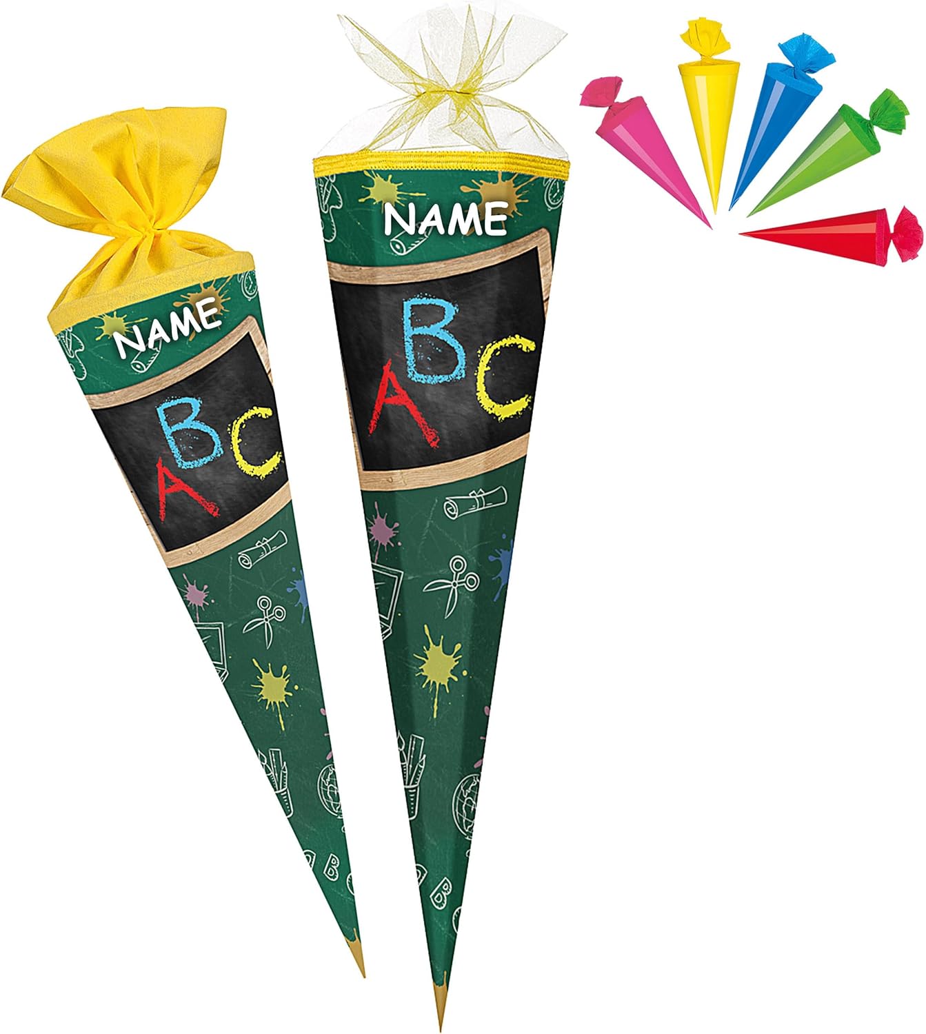 fantastico set _____ con bellissimo effetto 3D - stampa GLITTER e mica!! ____ stabile e di alta qualità - cono scolastico - lungo 35 cm (misurato solo il cartone) ___ il bordo superiore ha una finitura in tulle ___ Forma: ROTONDO ___ Motivo: "Lavagna scolastica / lavagna - lettere ABC" + 5 coni scolastici extra in un colorato mix di colori da appendere o decorare .... (ciascuno alto 12 cm - misurato solo il cartone) l'OCCHIO: ______ incl. colore abbinato grande effetto 3D _ fiocco - questo rende il tuo cono scolastico un'attrazione ancora più bella ______ i bellissimi modelli di fiocchi vengono consegnati misti (puoi vedere esempi nelle immagini) made in Germany! __ Materiale: cartone rivestito e di alta qualità - SUPER stabile! - idrorepellente! __ fantastici colori di stampa!_____ OPZIONALE è disponibile una punta in plastica abbinata, trasparente e solida da applicare (questo rende la punta del cono scolastico molto stabile e stabile) ---- (questo articolo deve essere ordinato EXTRA al cono scolastico) e come extra: IL cono scolastico individuale con il vostro NOME DESIDERATO - aggiungete semplicemente l'articolo "nome desiderato" come extra nel carrello, il nome verrà quindi abbinato. Un'altra idea: un fiocco personalizzato con il vostro NOME DESIDERATO - aggiungete semplicemente l'articolo "Fiocco con il nome desiderato" come extra nel vostro carrello, il nome verrà quindi abbinato al fiocco