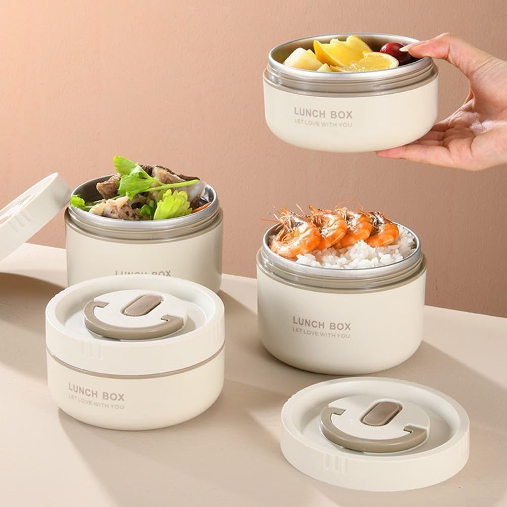 Materiale: realizzato in plastica PP per uso alimentare e acciaio inossidabile 304, questo portapranzo impilabile offre uno stile fresco ed elegante, rendendolo perfetto per uomini, donne e bambini, sia a casa che a casa. Isolamento termico superiore: con isolamento sottovuoto e una borsa isolata, goditi fino a 3-4 ore di ritenzione del calore, permettendoti di assaporare cibi fatti in casa senza fare affidamento sul microonde. Colori e dimensioni versatili: disponibile in beige e marrone, il portapranzo è disponibile in una dimensione di 800 ml (11,5 × 11 cm), abbinato a una borsa termica per un facile trasporto, adatto per scuola, lavoro o gite. Design pratico e a prova di perdite: ogni portapranzo è dotato di una doppia guarnizione in silicone per mantenere la freschezza e prevenire perdite. valvola di scarico a conchiglia e maniglia superiore lo rendono facile da usare per il trasporto e l'apertura. Pronto per il controllo delle porzioni: perfetto come premuroso quando avvolto con nastri, incoraggia uno stile alimentare più sano con prelibatezze fatte in casa.