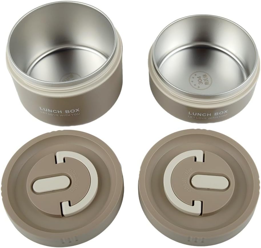Tecnologia sottovuoto a doppia parete: sperimenta una ritenzione termica superiore con il nostro avanzato sistema di isolamento sottovuoto che mantiene la temperatura degli alimenti per 3-4 ore, quasi il doppio rispetto ai contenitori standard, eliminando la necessità di microonde e assicurando che i tuoi pasti fatti in casa rimangano perfettamente caldi per tutto il giorno Set completo di due contenitori: include contenitori piccoli (420 ml, 11,5 x 6,5 cm) e grandi (620 ml, 11,5 x 9 cm) in acciaio inox con borsa per il trasporto isolata, fornendo opzioni versatili per zuppe, pasta, insalate, frutta e vari cibi caldi o freddi per soddisfare diverse esigenze di appetito Materiali di sicurezza per uso alimentare: realizzato con interno in acciaio inossidabile 304 di alta qualità e esterno in plastica PP senza BPA, questo sistema impilabile per il pranzo offre una conservazione degli alimenti senza sostanze chimiche senza ritenzione di odori, rendendolo sicuro per l'uso quotidiano da parte di adulti, studenti e professionisti Design ingegneristico a prova di perdite: presenta doppi anelli di tenuta in silicone e un'innovativa valvola di scarico a conchiglia che impedisce fuoriuscite consentendo una facile apertura dopo il riscaldamento, oltre a una maniglia superiore ergonomica per un comodo trasporto e doppi strati di isolamento termico che mantengono l'esterno fresco al tatto Pratiche soluzioni portatili: il design leggero con borsa termica inclusa rende questo set di contenitori per il pranzo perfetto per impiegati, studenti e appassionati di attività all'aperto che vogliono gustare pasti nutrienti fatti in casa ovunque mantenendo un corretto controllo delle porzioni per abitudini alimentari più sane