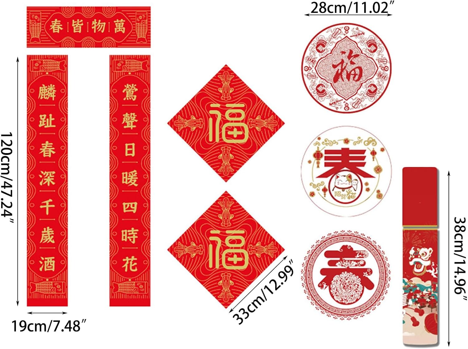 lo spirito del Dragon Year Spring Festival con il nostro squisito set di distici, portando un tocco di tradizione e celebrazione al tuo arredamento festivo Decorazioni per feste e vacanze per coloro che apprezzano la cultura cinese e vogliono partecipare alle loro celebrazioni festive con un tocco di tradizione durante il Festival di Primavera Realizzati in carta, questi distici vantano colori vivaci e decorazioni visivamente accattivanti Versatili e adatti per vari ambienti come case, uffici o negozi, questi distici possono essere facilmente visualizzati sulle porte, aggiungendo atmosfere festive a qualsiasi spazio
