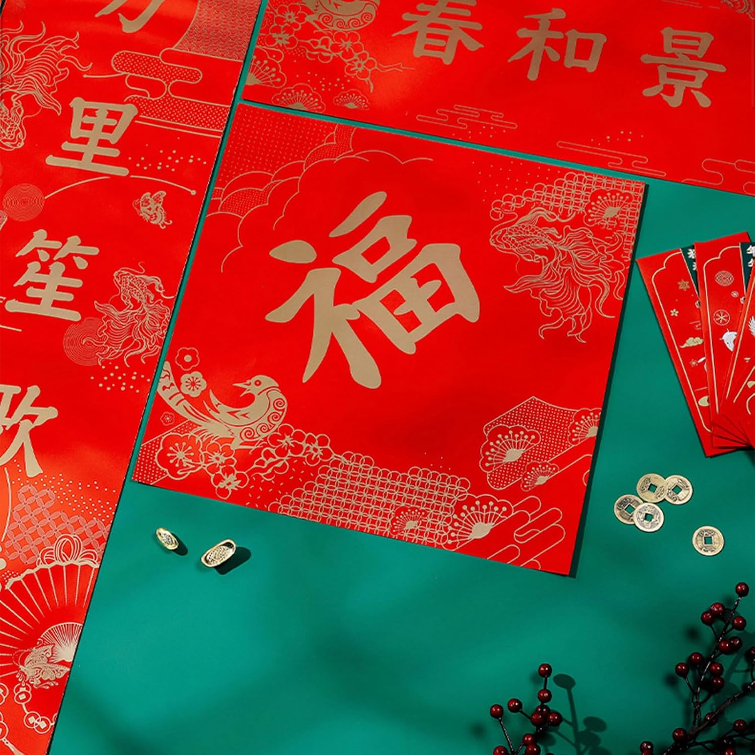 lo spirito del Dragon Year Spring Festival con il nostro squisito set di distici, portando un tocco di tradizione e celebrazione al tuo arredamento festivo Decorazioni per feste e vacanze per coloro che apprezzano la cultura cinese e vogliono partecipare alle loro celebrazioni festive con un tocco di tradizione durante il Festival di Primavera Realizzati in carta, questi distici vantano colori vivaci e decorazioni visivamente accattivanti Versatili e adatti per vari ambienti come case, uffici o negozi, questi distici possono essere facilmente visualizzati sulle porte, aggiungendo atmosfere festive a qualsiasi spazio